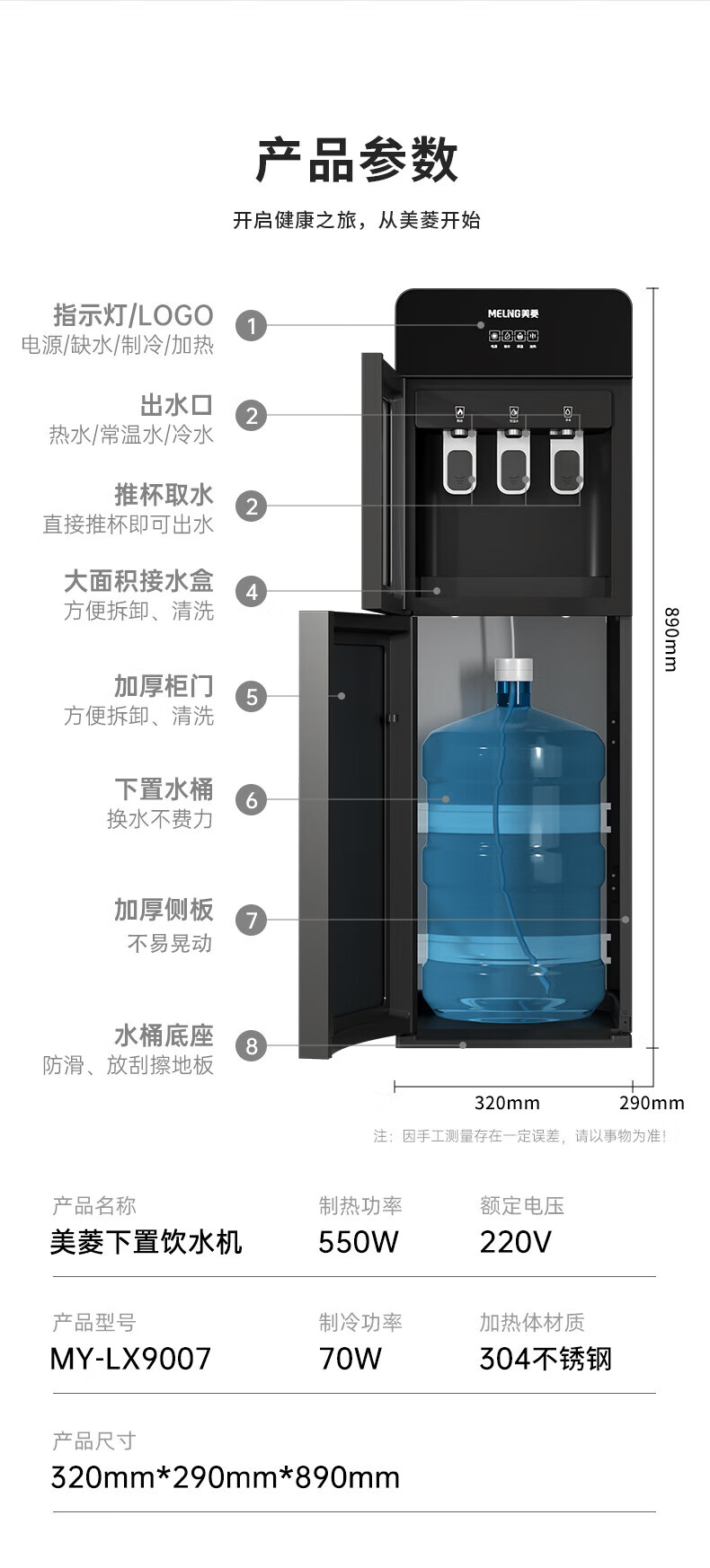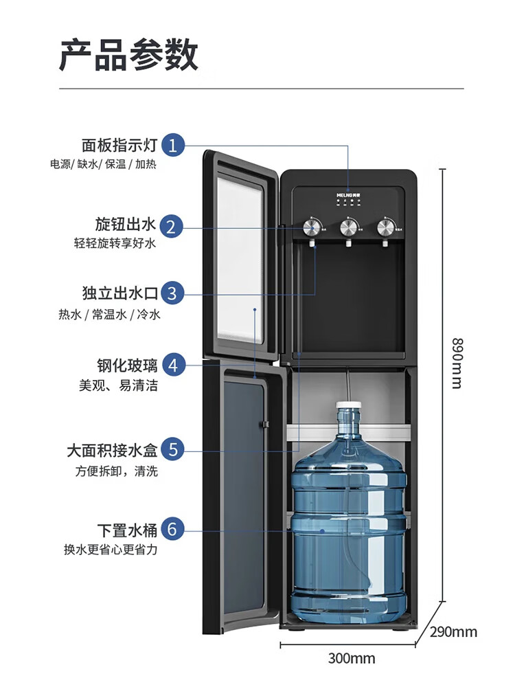 美菱(MeiLing) 饮水机下置式家用立式温热型/冷热型快速加热下置式水桶饮水器 强力推荐【升级推杯出水】 制热型