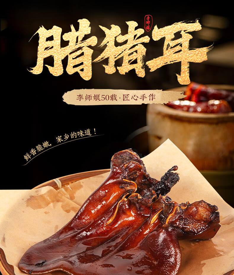 李师娘四川特产腊肉腊猪耳朵500g熏肉耳尖猪脆骨熟食腊味成都美食下酒菜 川味腊猪耳朵500g