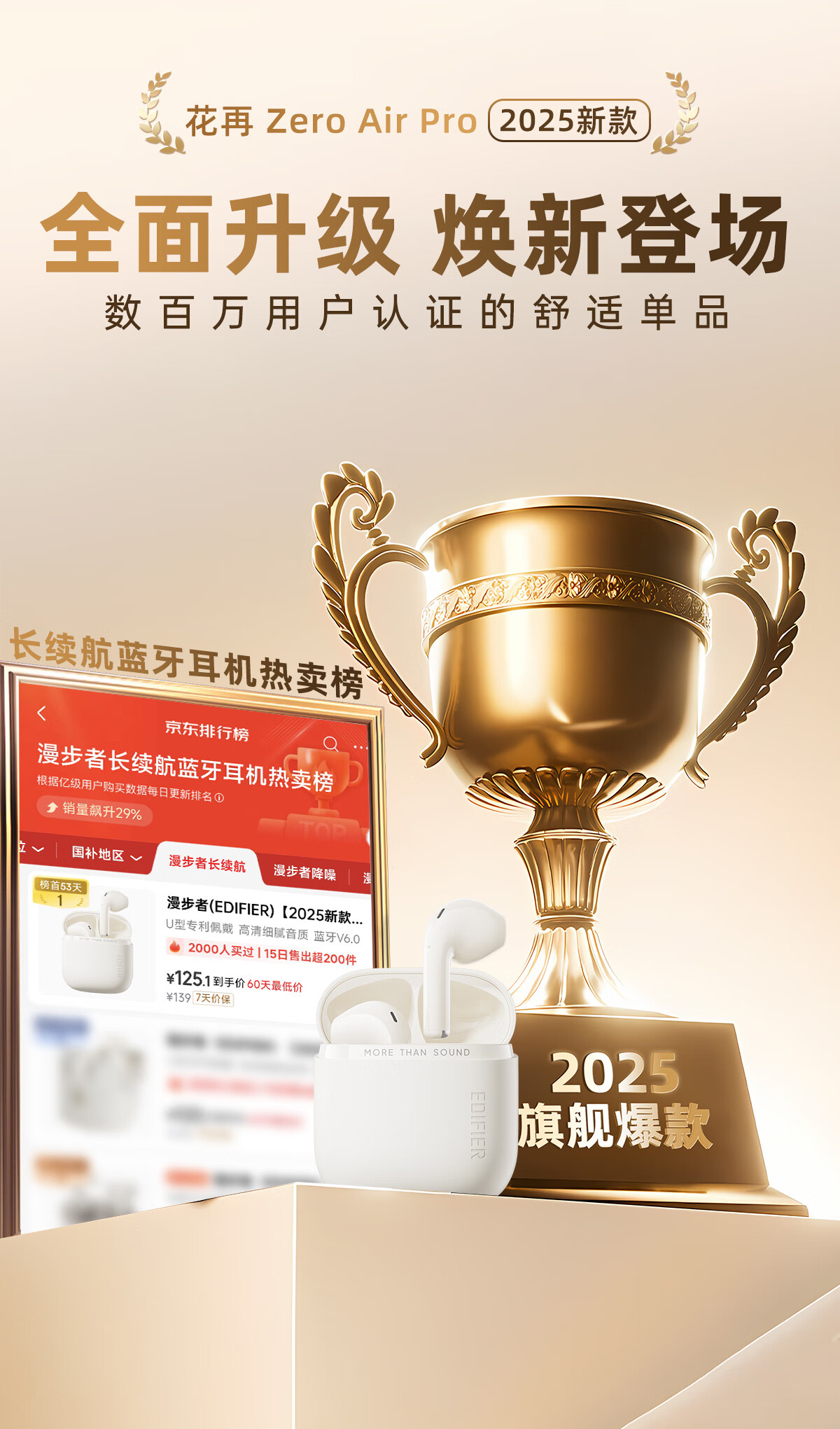 漫步者(EDIFIER)【2025新款】花再Zero Air Pro蓝牙耳机真无线半入耳式降噪运动音乐电竞游戏耳麦耐用超长续航花在 椰奶白+柯基狗耳机套+晒单10元