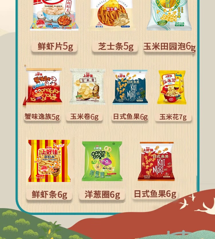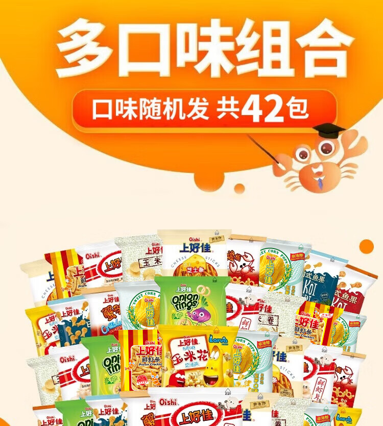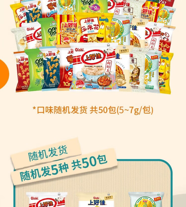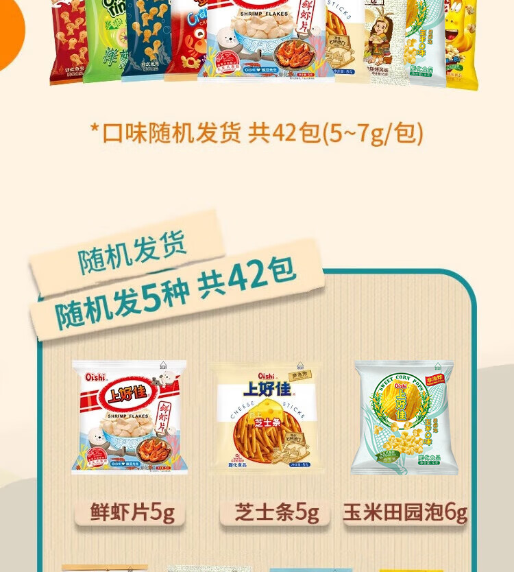 上好佳膨化小零食虾片虾条5-6g装42包(口味随机) 42包(口味随机)