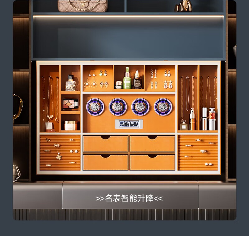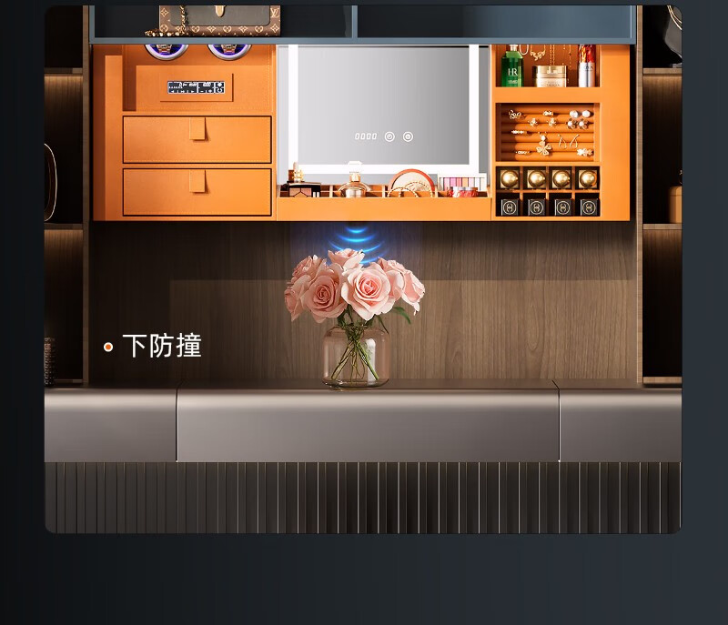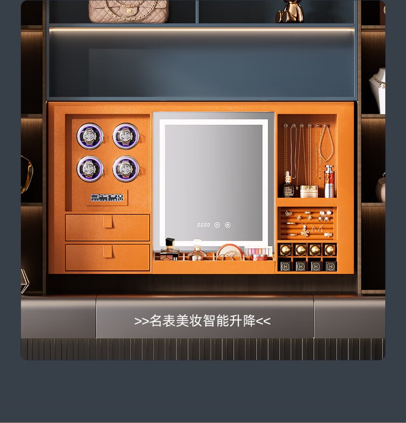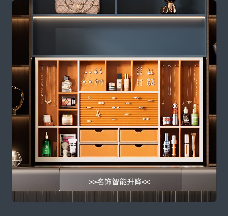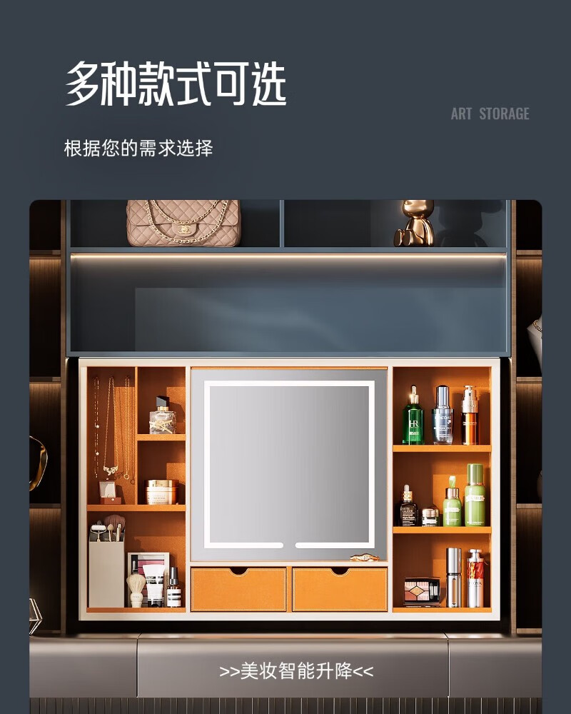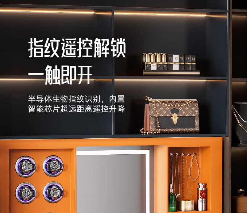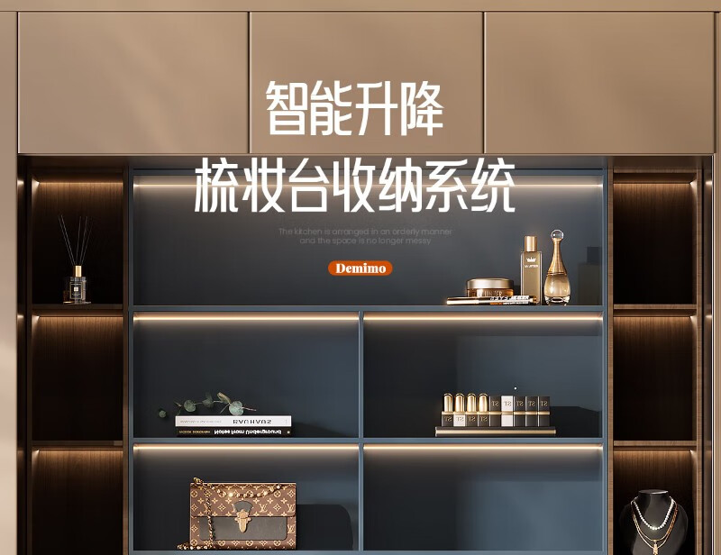 德米莫衣帽间智能电动收纳升降梳妆台化妆镜子隐形摇腕表器高端皮革 流光镜界1300柜-指纹遥控+涂鸦智能【15天发