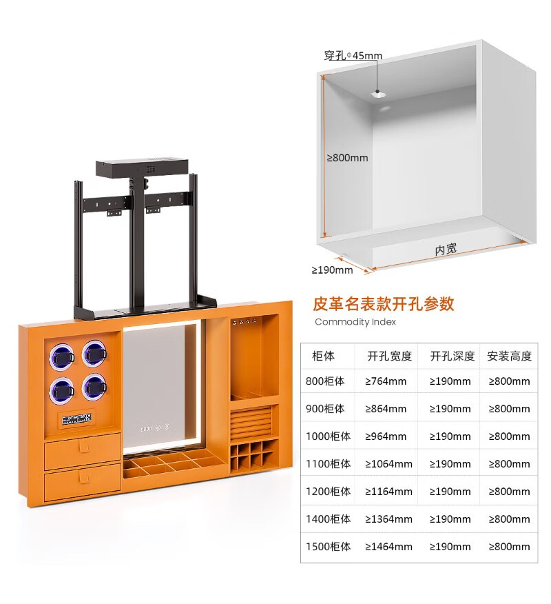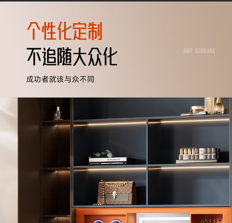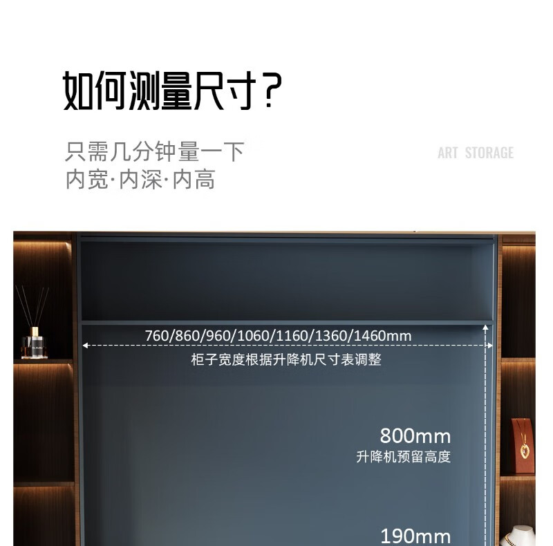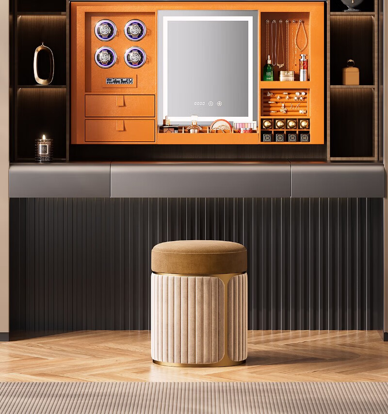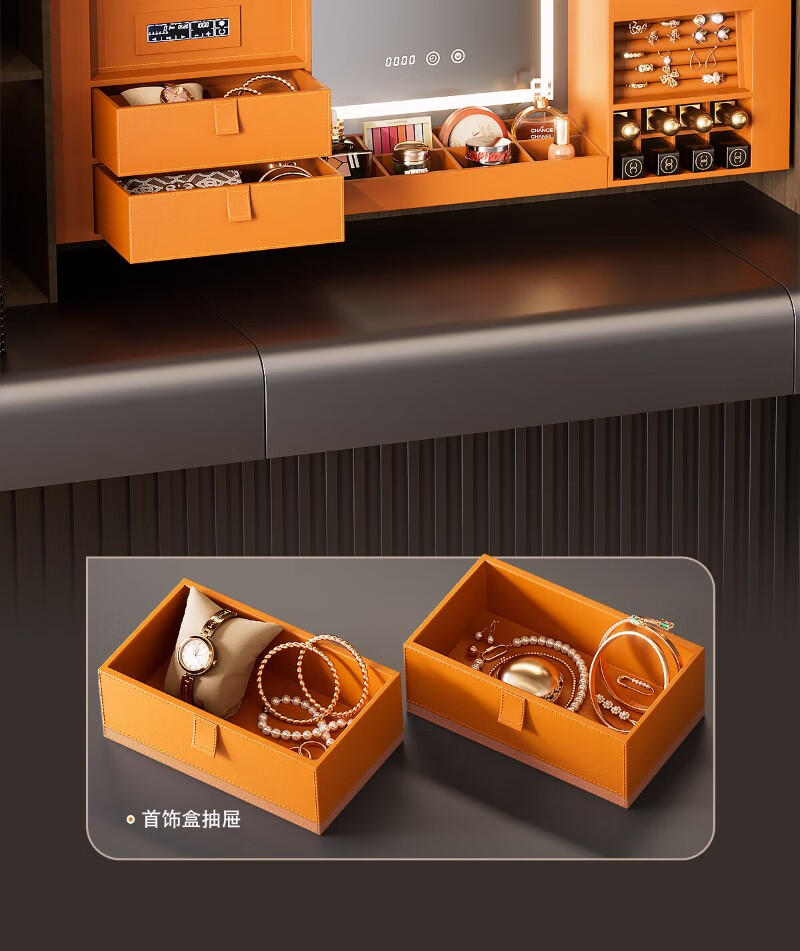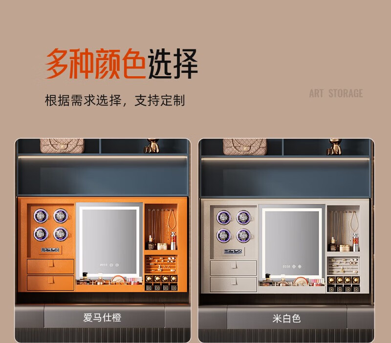 德米莫衣帽间智能电动收纳升降梳妆台化妆镜子隐形摇腕表器高端皮革 流光镜界1300柜-指纹遥控+涂鸦智能【15天发