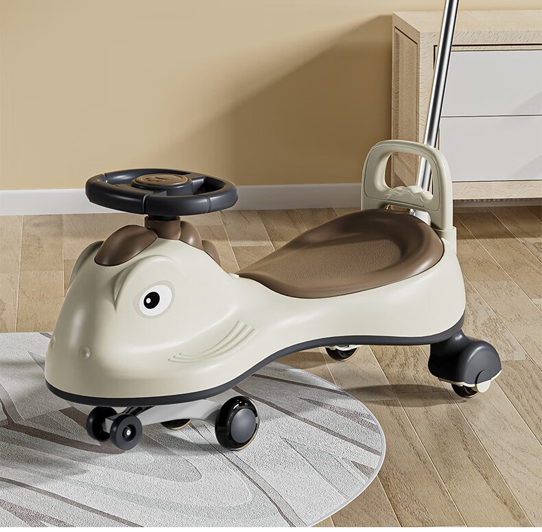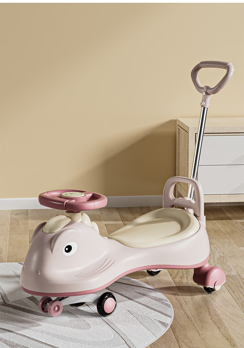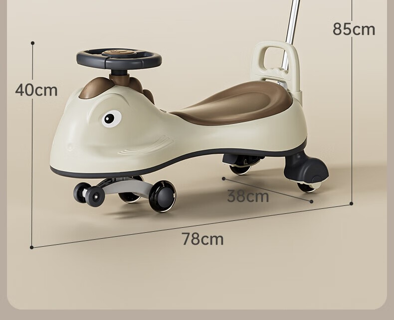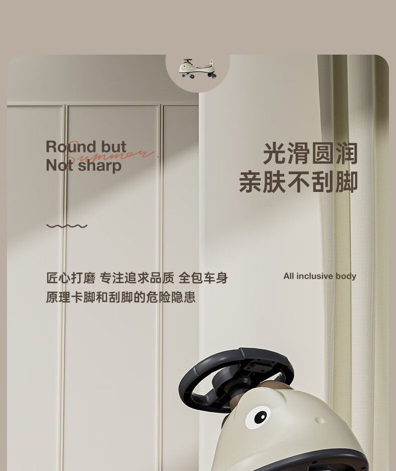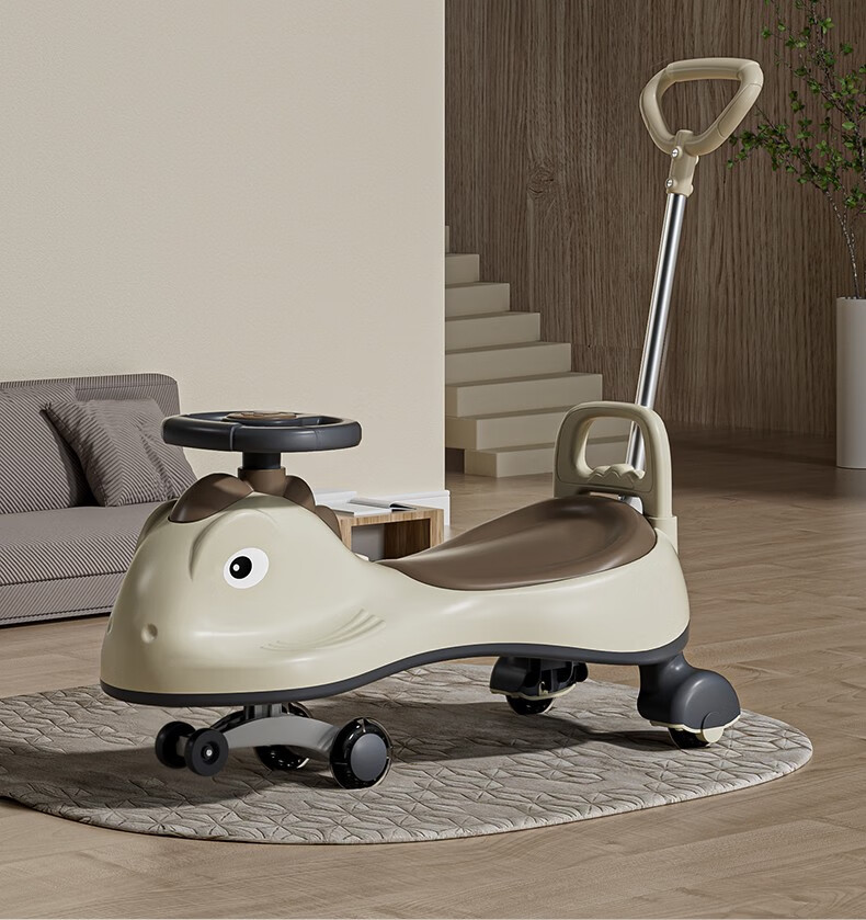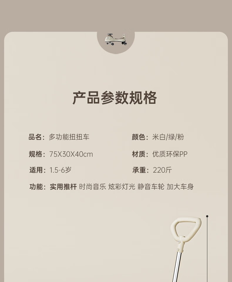 ANGI BABY扭扭车儿童溜溜车1-3-6岁防侧翻男女宝宝大人可坐滑行摇摇妞妞车 米白色【闪光静音轮+靠背+推杆】