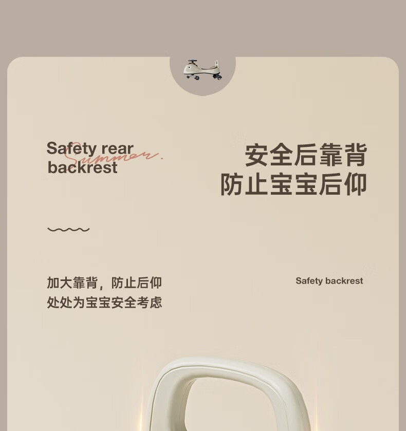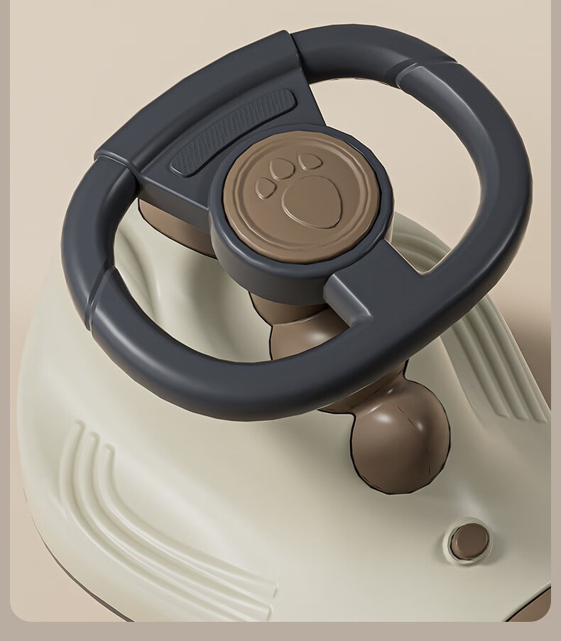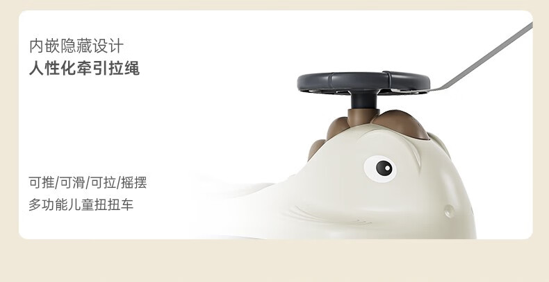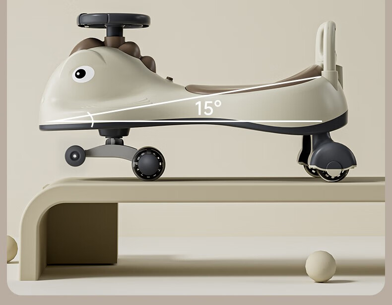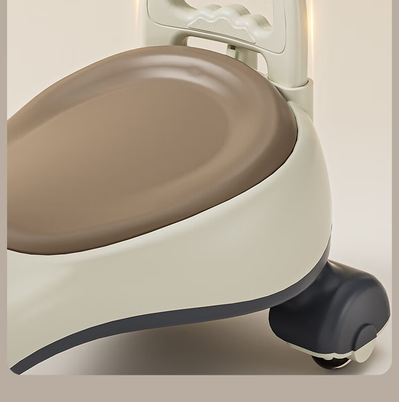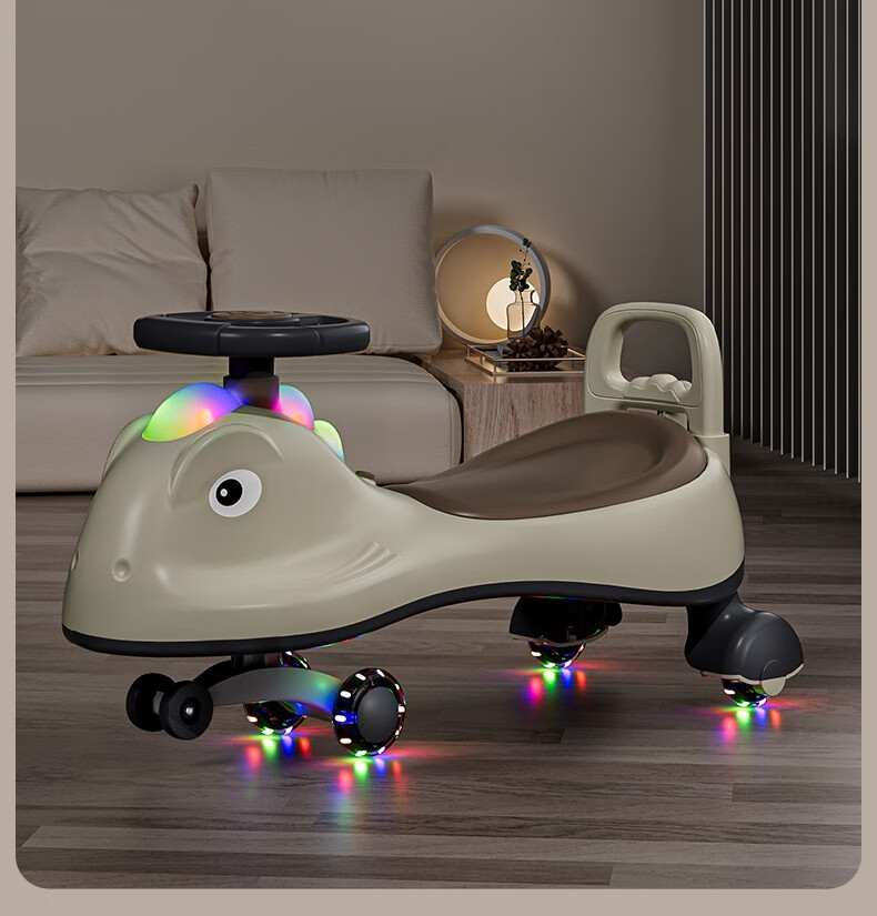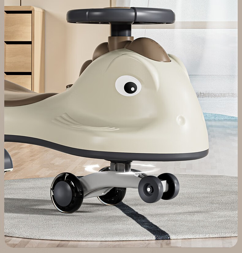 ANGI BABY扭扭车儿童溜溜车1-3-6岁防侧翻男女宝宝大人可坐滑行摇摇妞妞车 米白色【闪光静音轮+靠背+推杆】