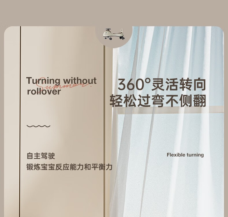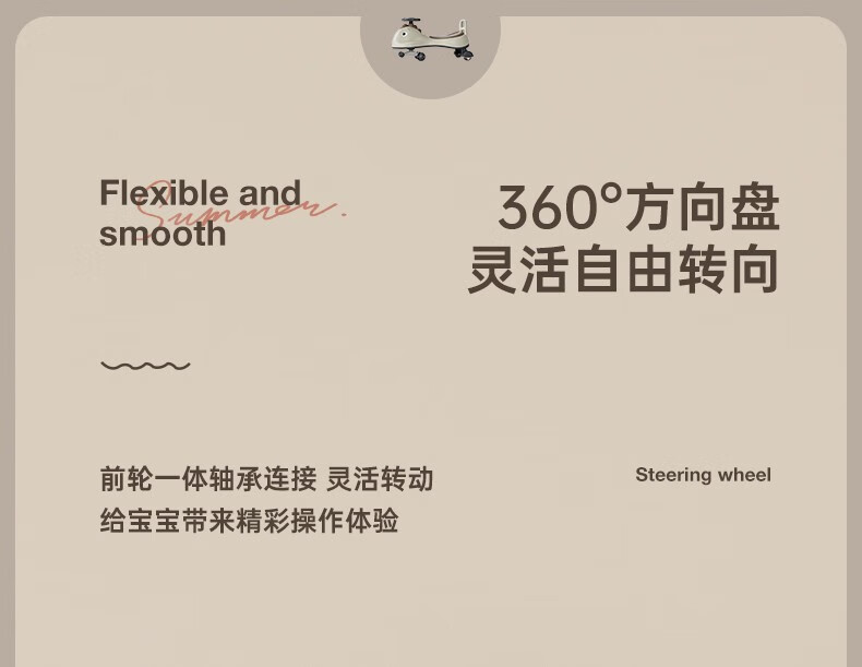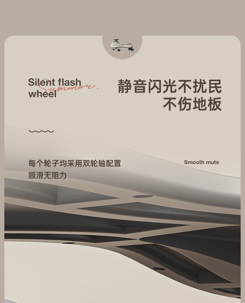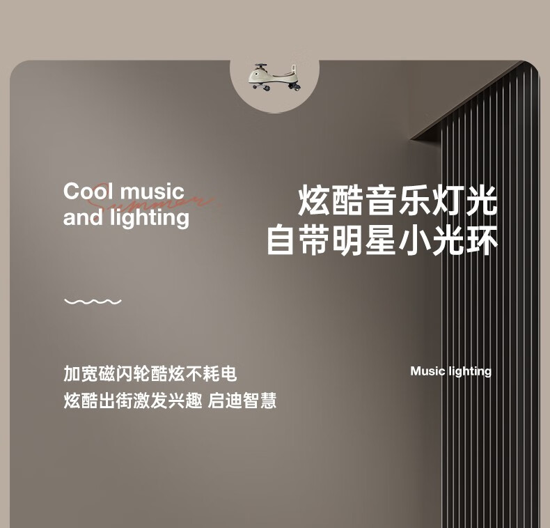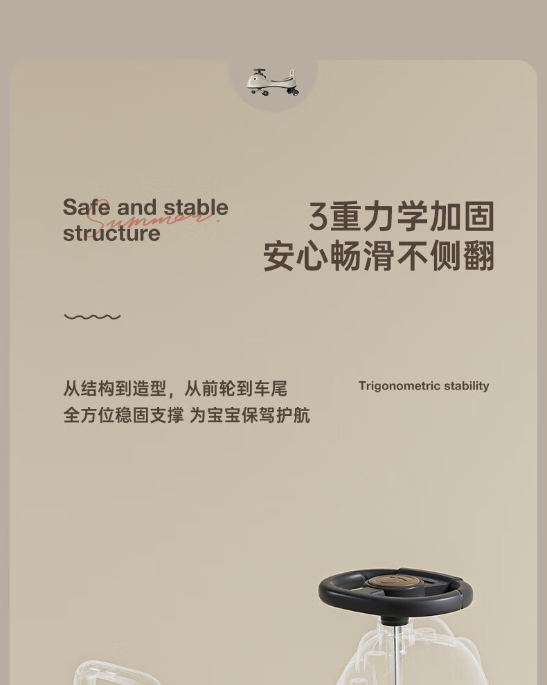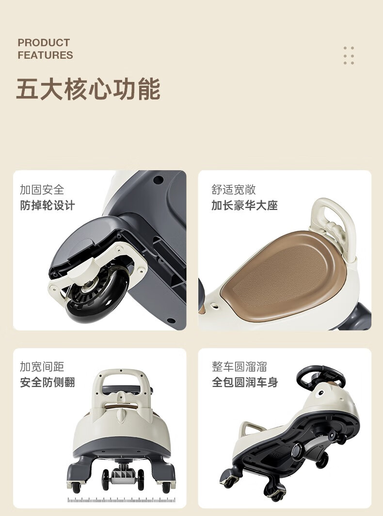 ANGI BABY扭扭车儿童溜溜车1-3-6岁防侧翻男女宝宝大人可坐滑行摇摇妞妞车 米白色【闪光静音轮+靠背+推杆】