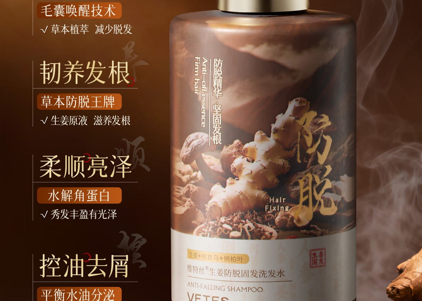 维特丝防脱育发洗发水生姜侧柏叶固发养发增发密发控油去屑膏露金榜第1