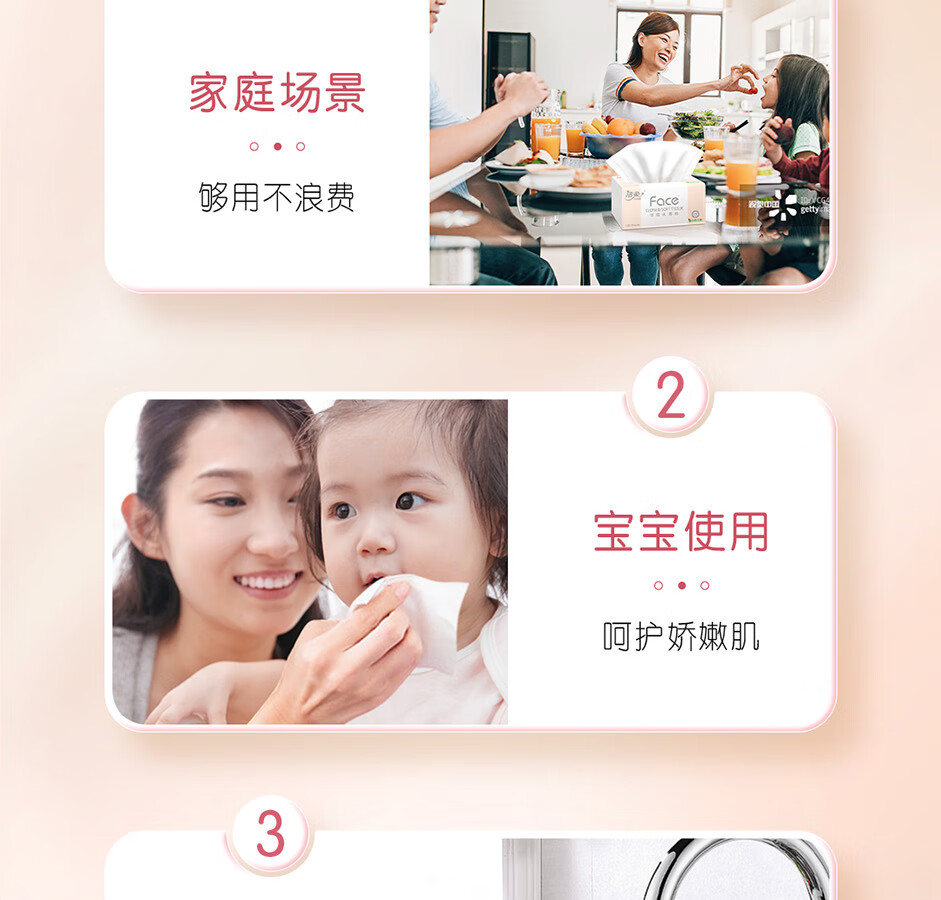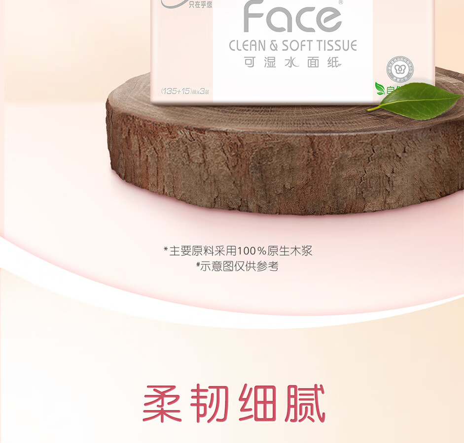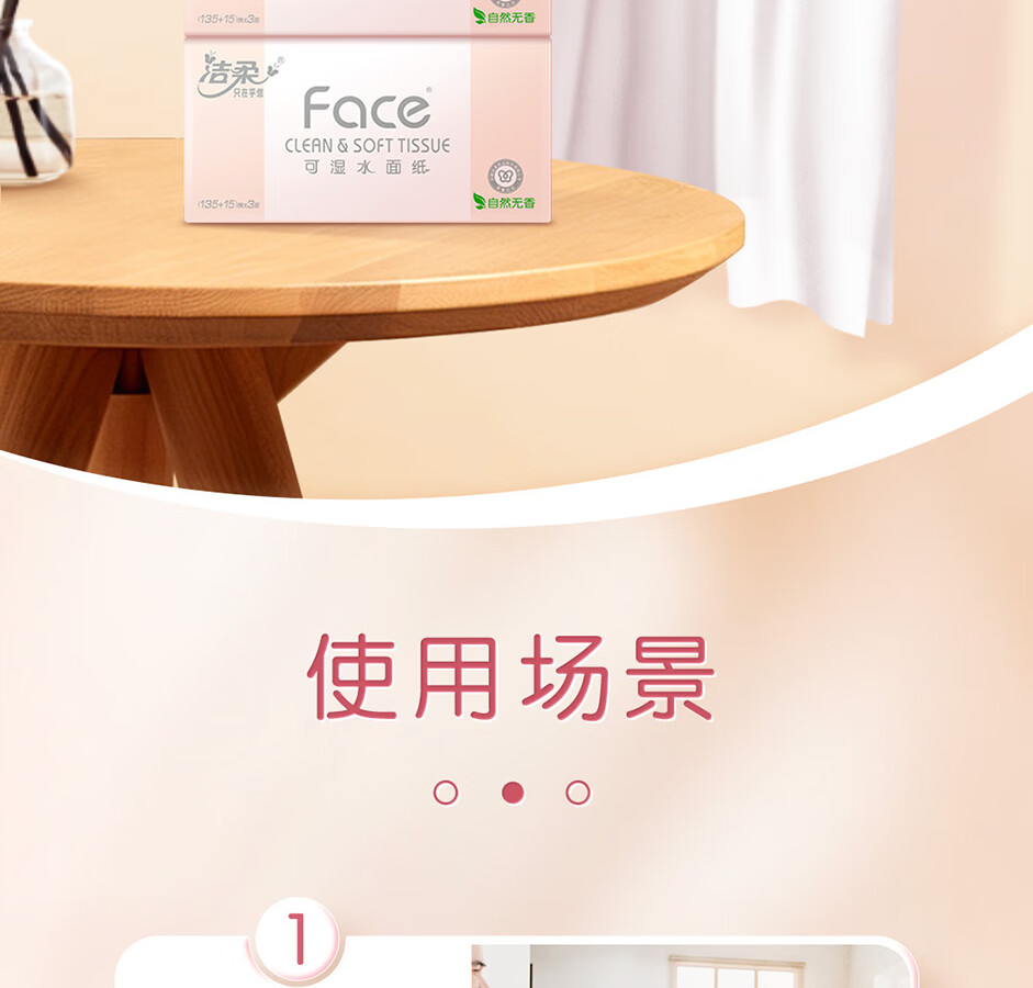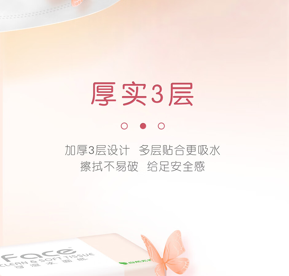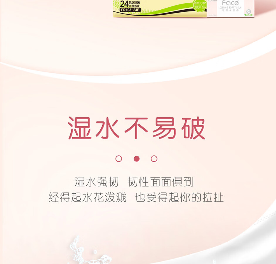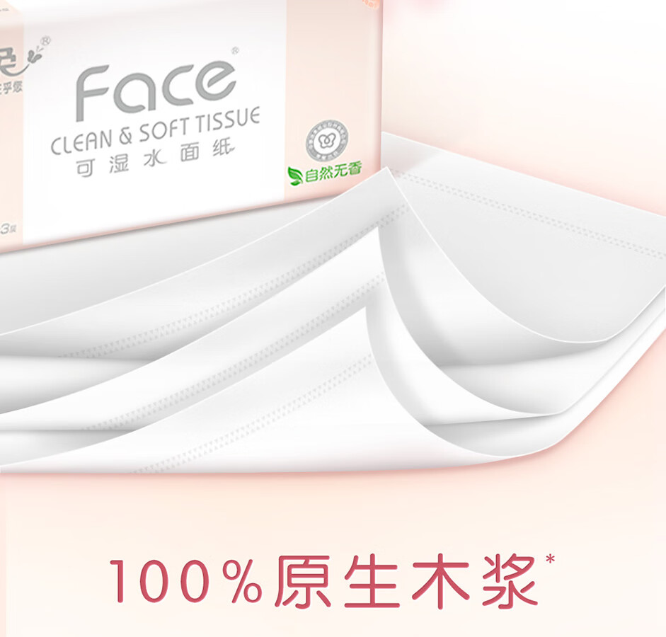 洁柔抽纸 粉face柔韧3层150抽*24包纸巾 可湿水面巾纸M码 整箱卫生纸
