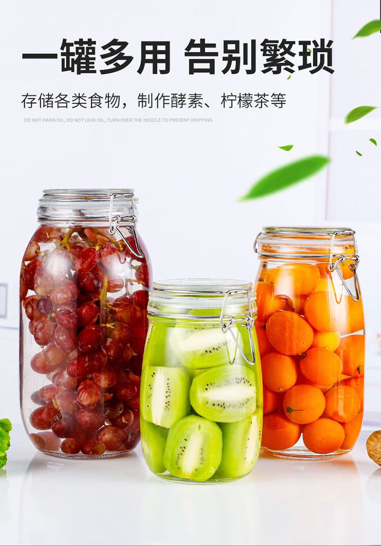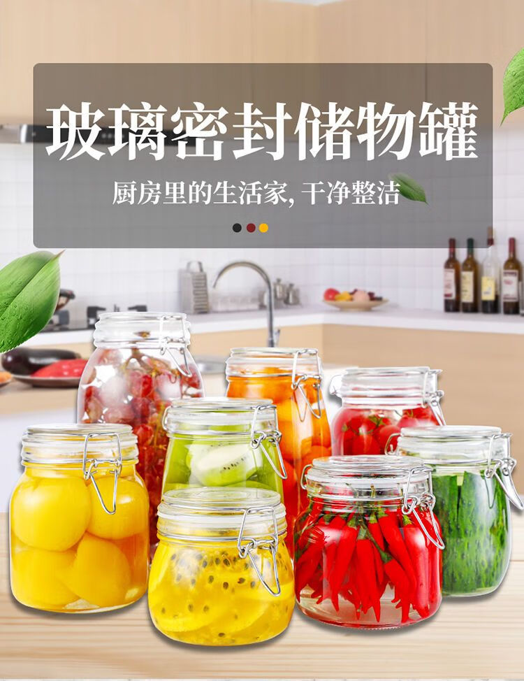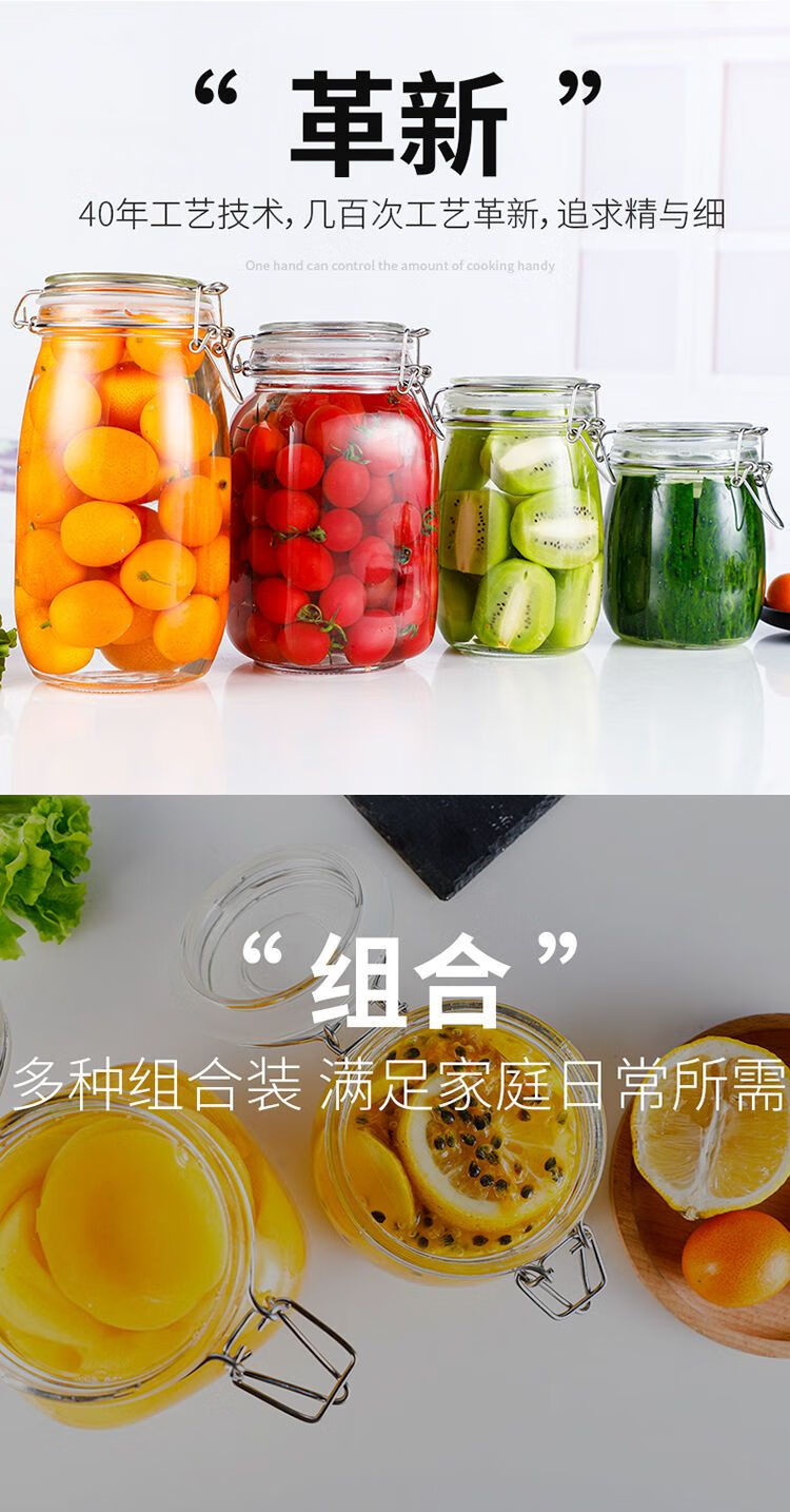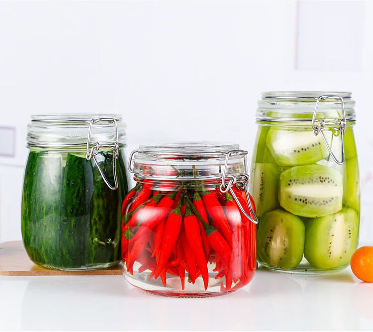 DEATKN玻璃瓶密封罐子食品罐带盖透明罐头家用腌制柠檬百香果蜂蜜储物罐 圆形【新客朴贴】 500毫升三只装+卡扣盖+密封圈+泡沫盒