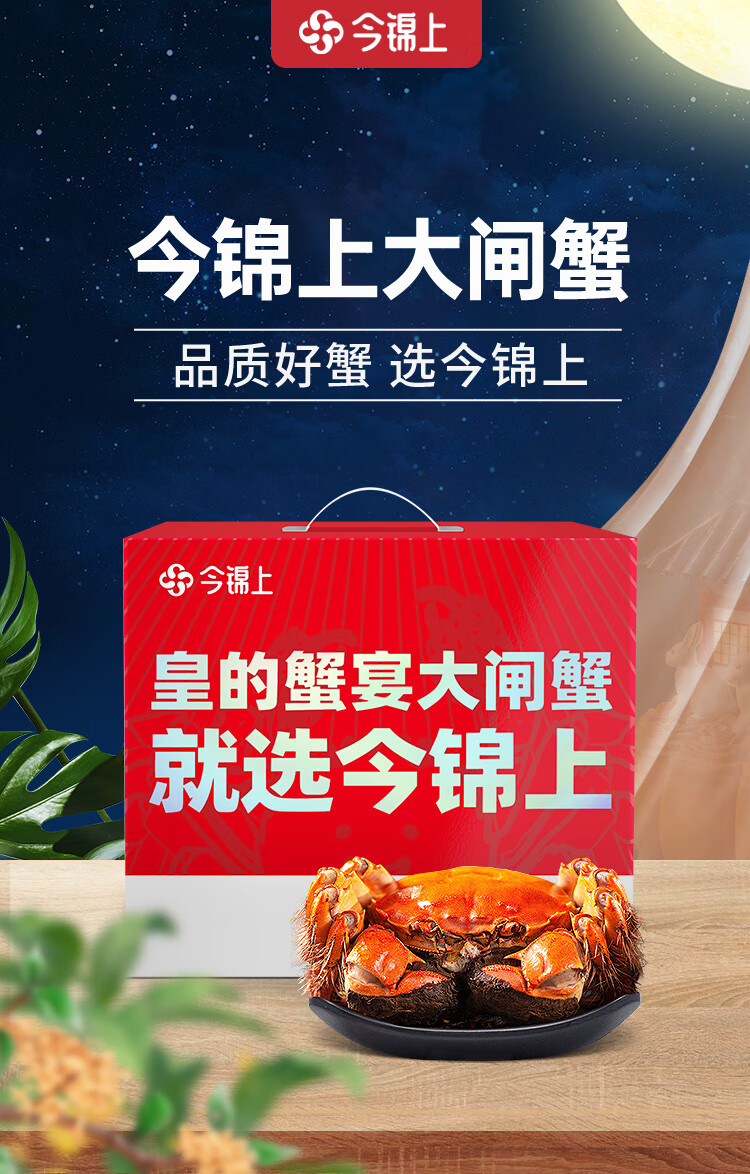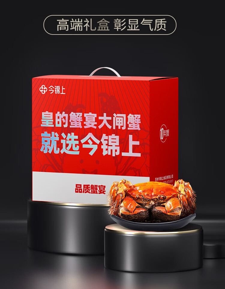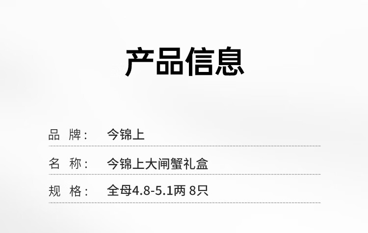 【活蟹】今锦上精品大闸蟹鲜活螃蟹礼盒全母蟹4.8-5.1两 8只礼盒礼品去绳足重