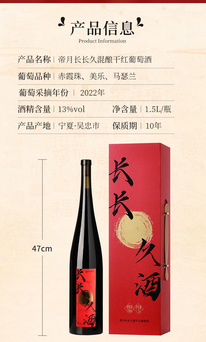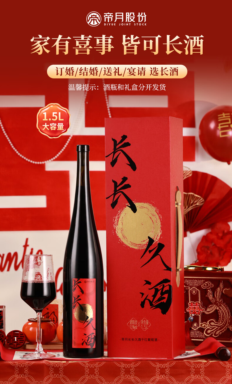 帝月长长久酒干红葡萄酒1.5L送礼高端酒订婚结婚宴会摆台喜酒新婚礼物 【1瓶装】长长久酒1.5L*1(手提袋)