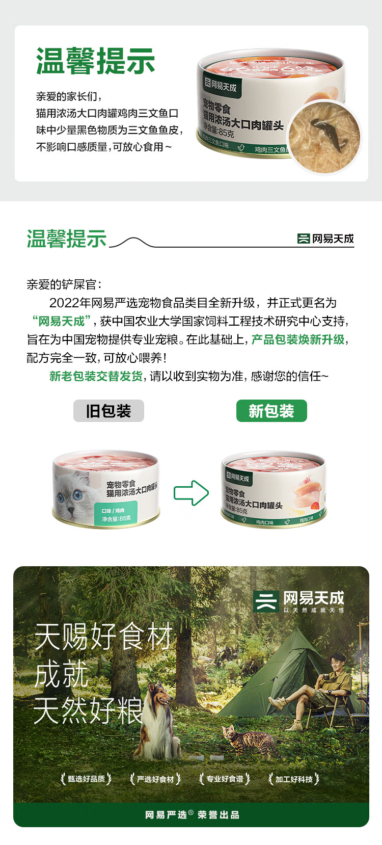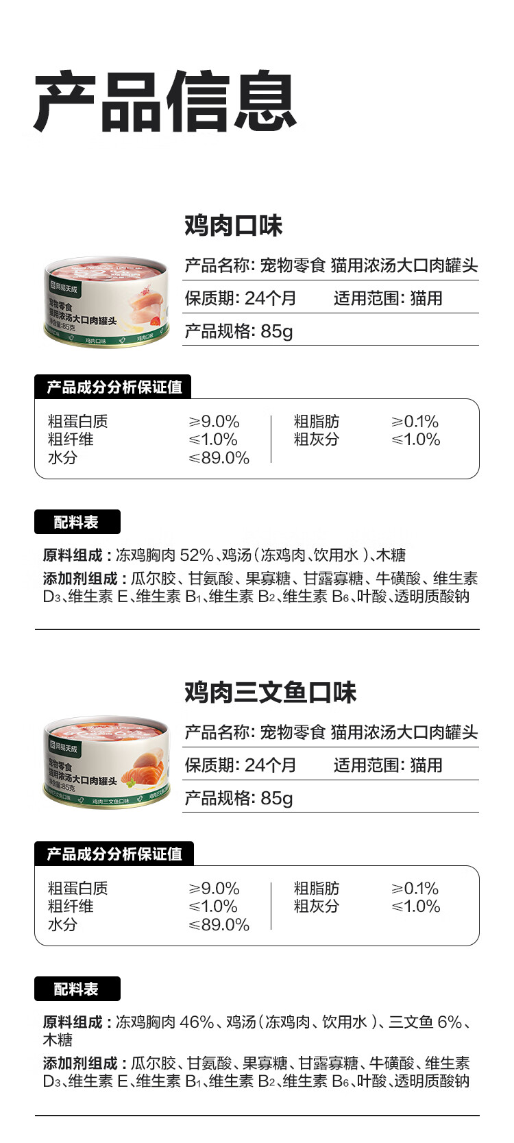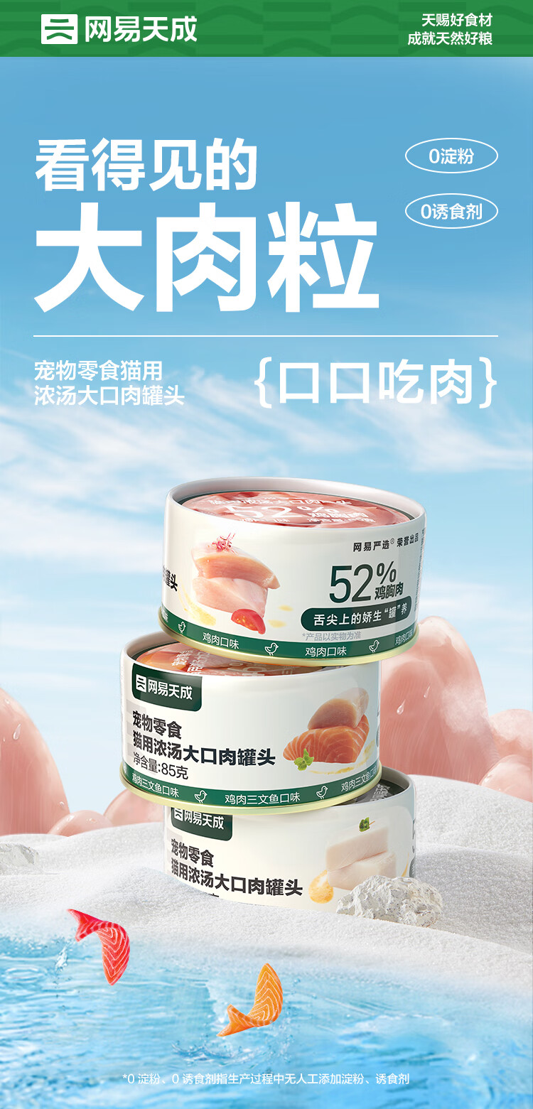 网易严选 浓汤大口肉罐 宠物猫罐头猫粮猫湿粮宠物零食湿粮猫用 鸡肉+三文鱼 85g*24罐