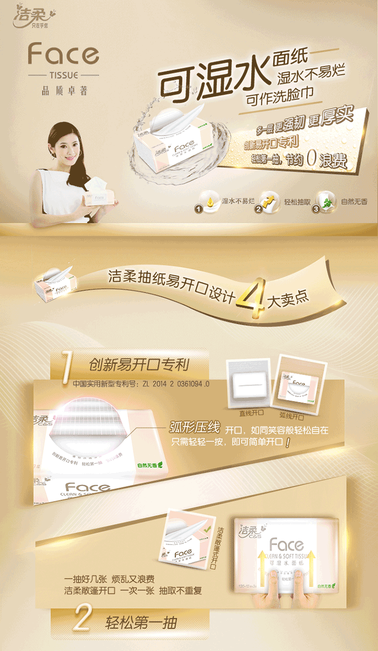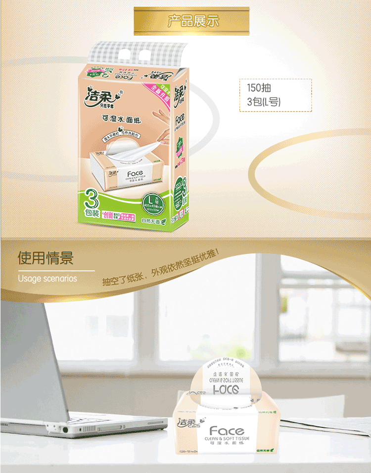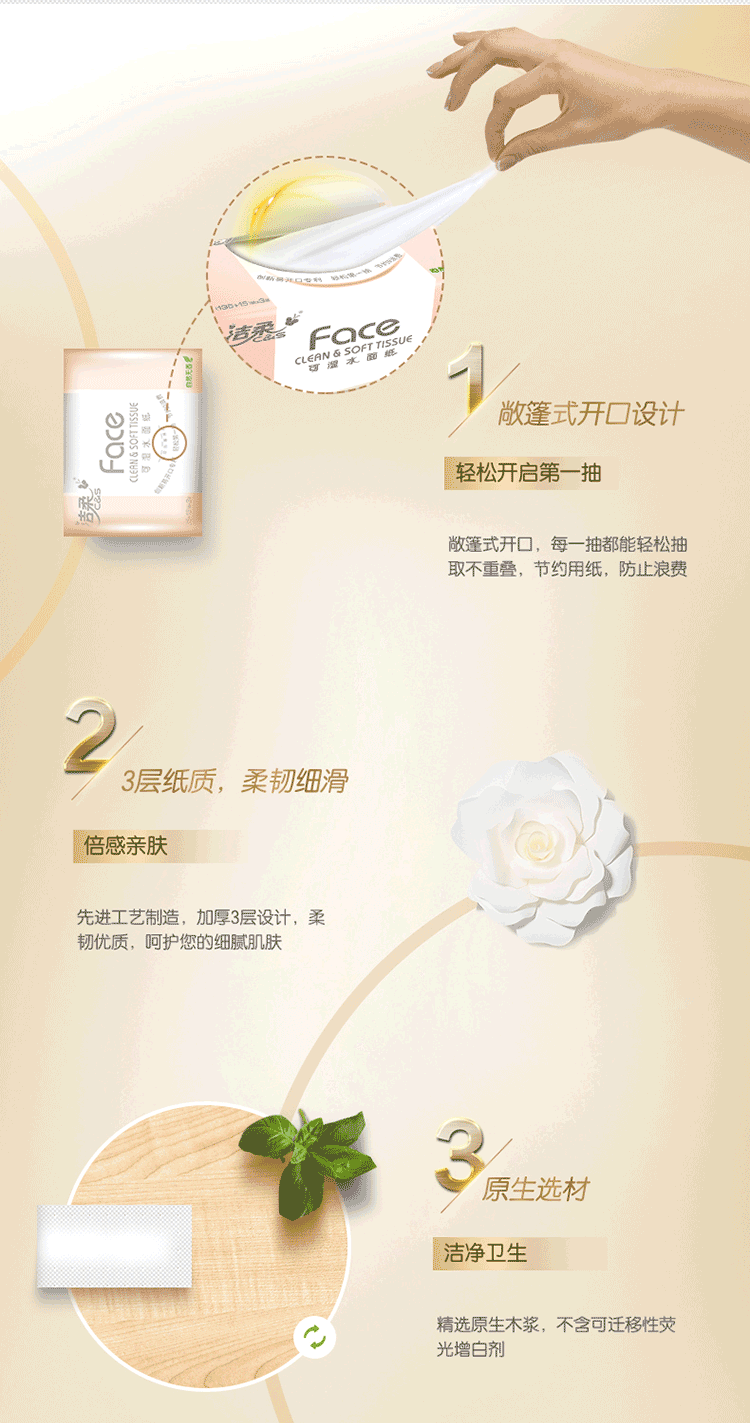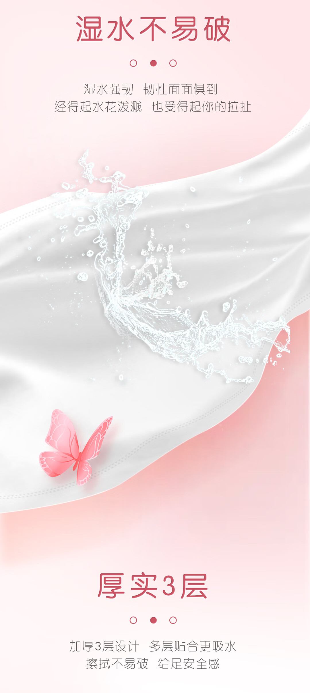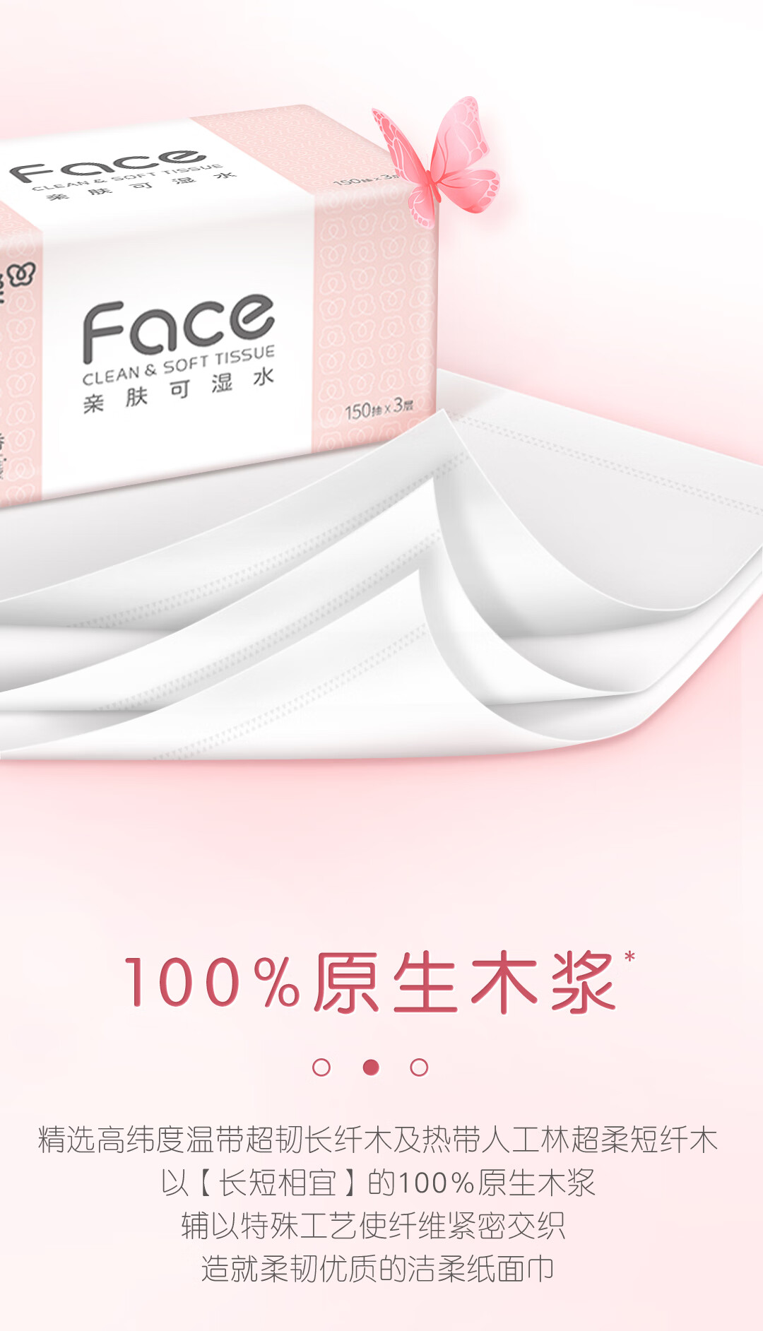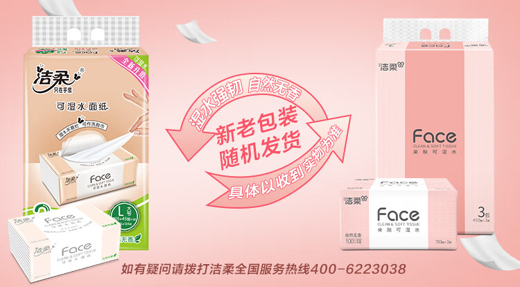 洁柔抽纸 粉Face可湿水3层150抽*3包 校园必备 大规格M码面巾纸