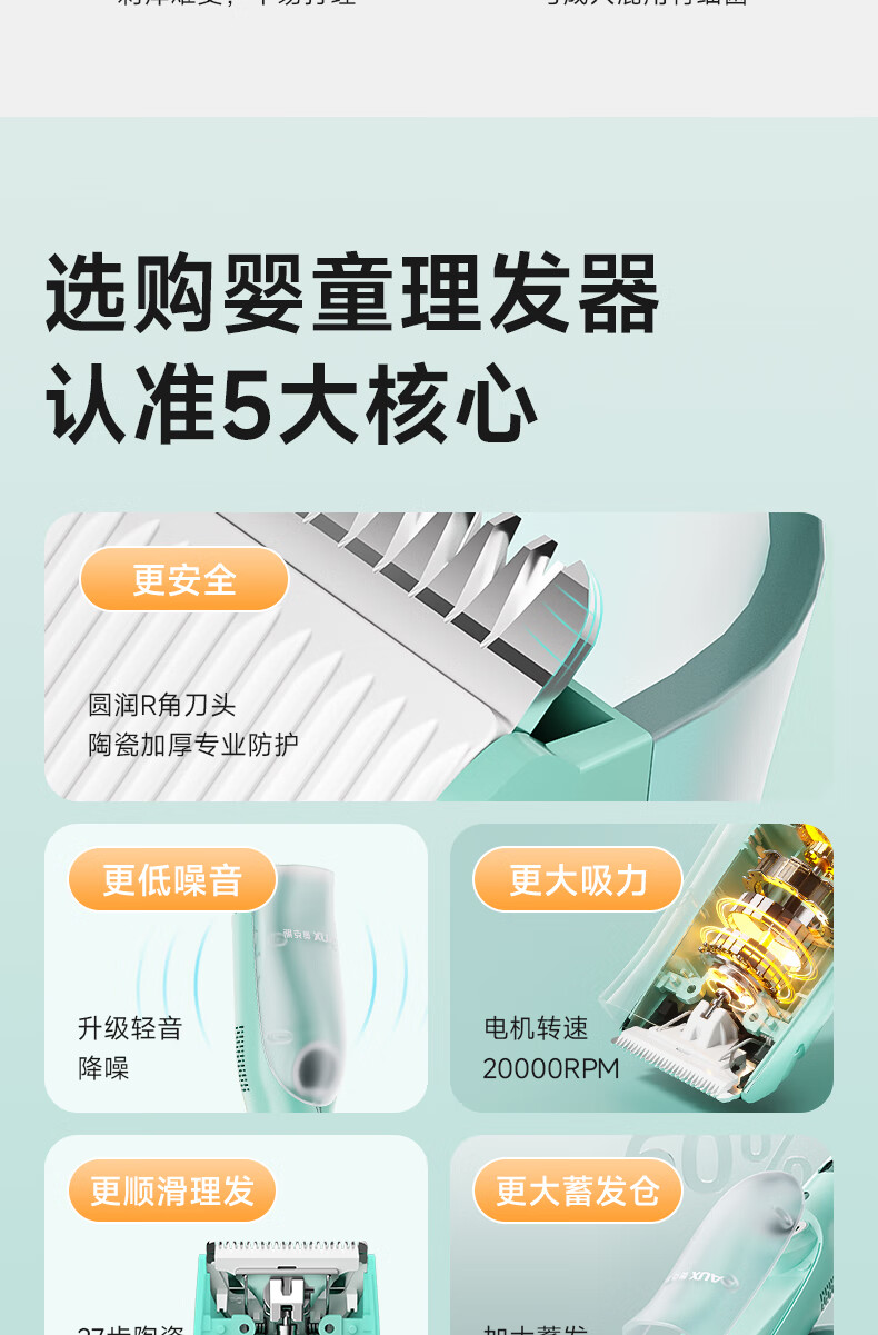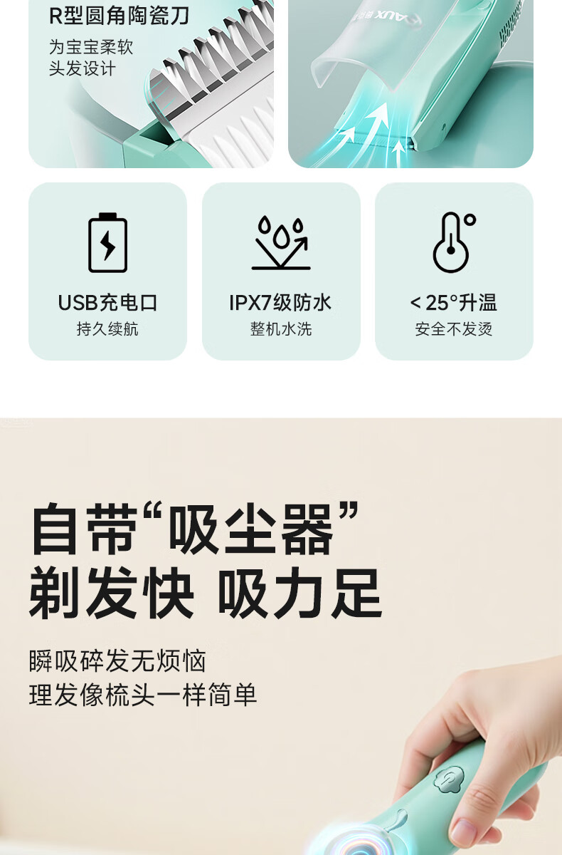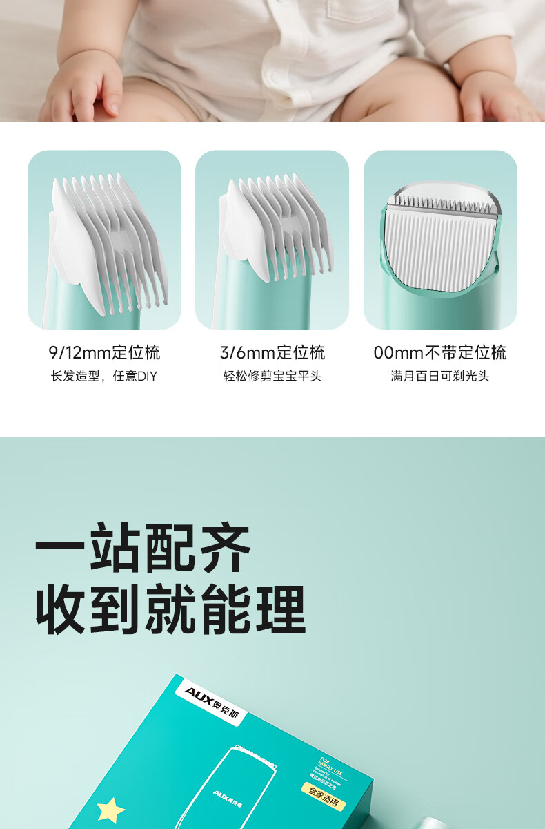 奥克斯(AUX)自动吸发婴儿理发器静音儿童推子宝宝剃头神器新生儿剪发电推子剃胎毛推头发器电推剪不伤头皮