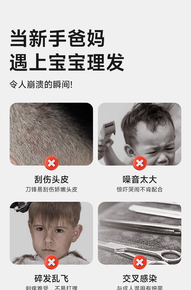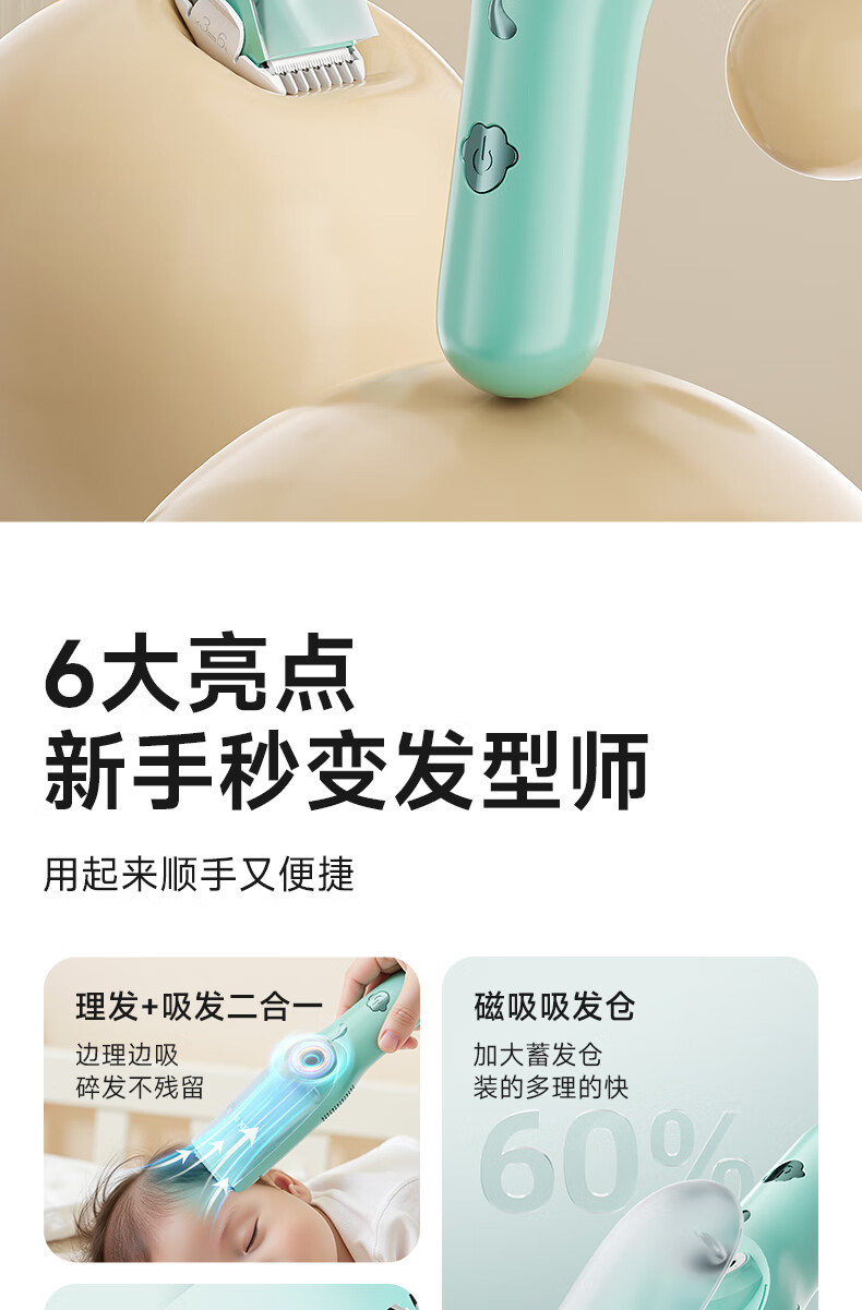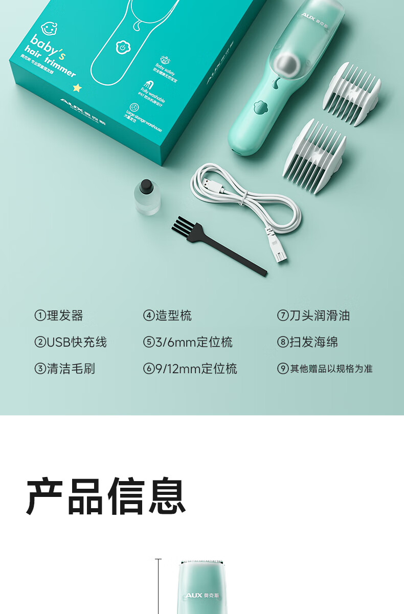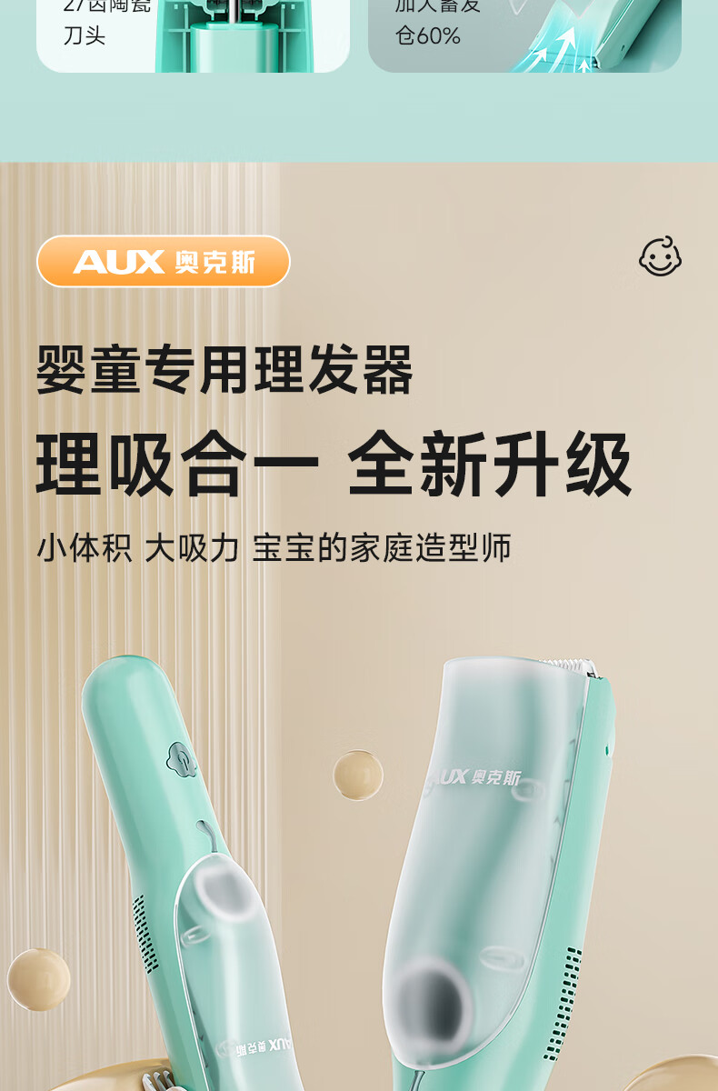 奥克斯(AUX)自动吸发婴儿理发器静音儿童推子宝宝剃头神器新生儿剪发电推子剃胎毛推头发器电推剪不伤头皮