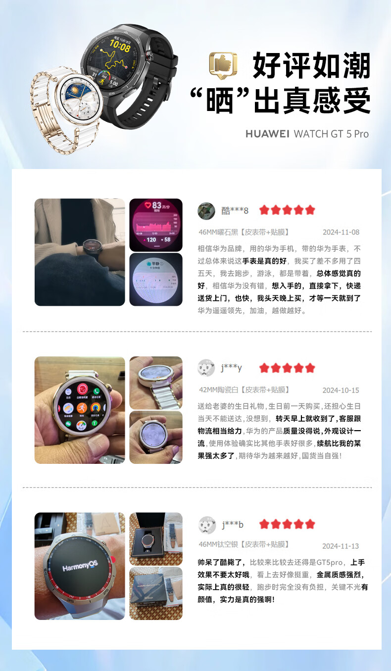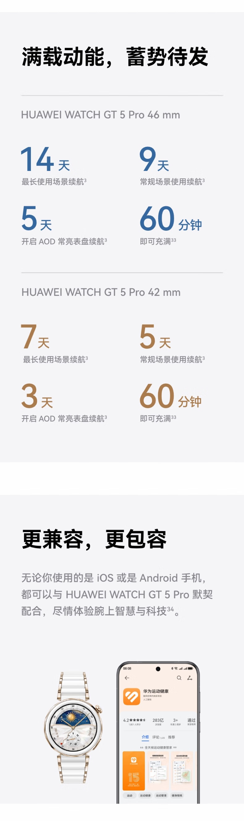 华为(HUAWEI)【咨询享优惠】华为WATCH GT 5 Pro手表运动智能玄玑感知系统进阶运动情绪健康助手长续航AX4Pro 42MM冰川白【送皮表带+贴膜】