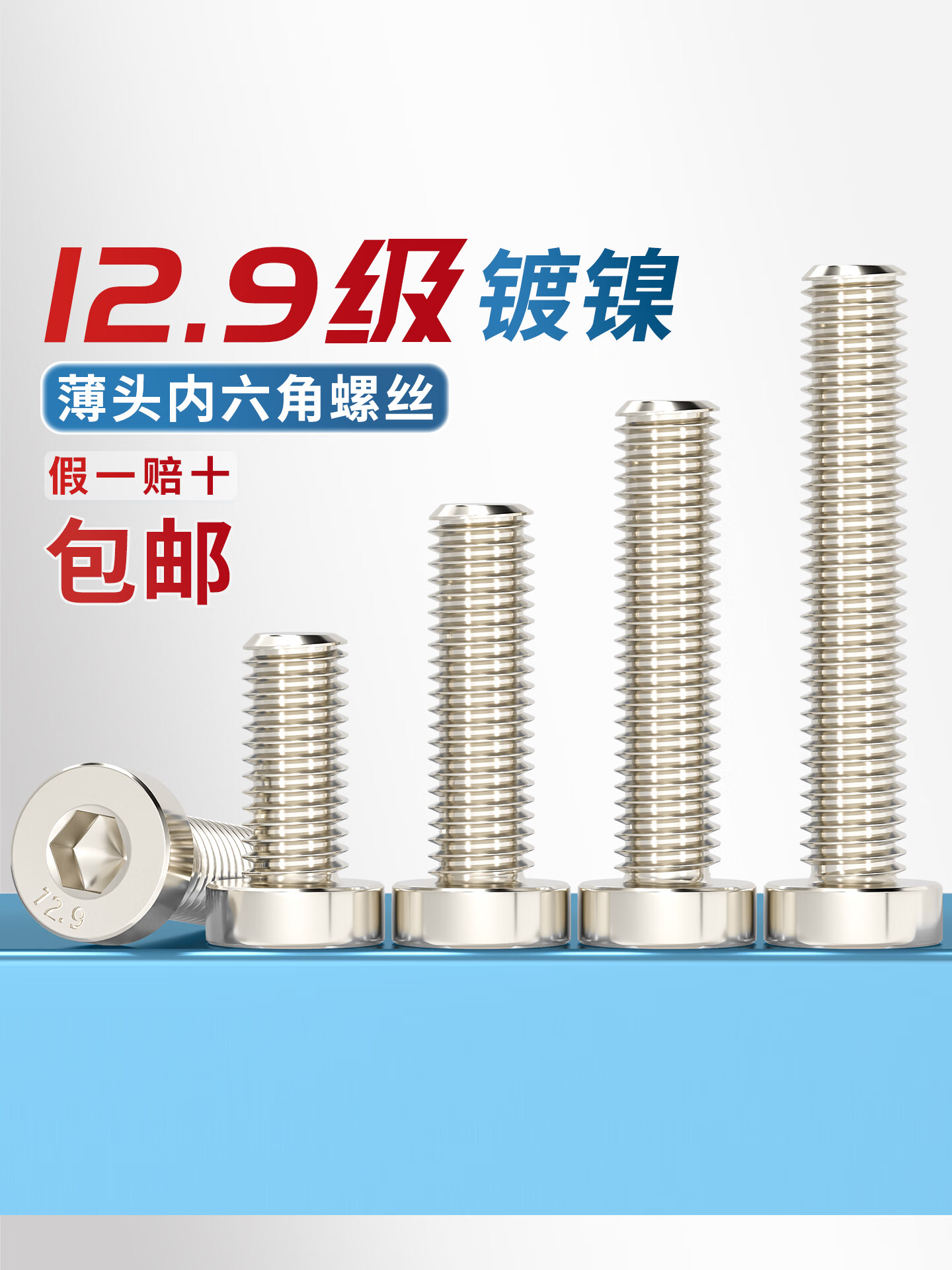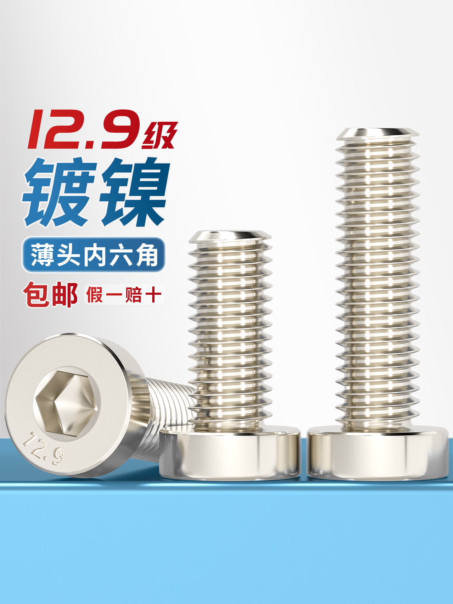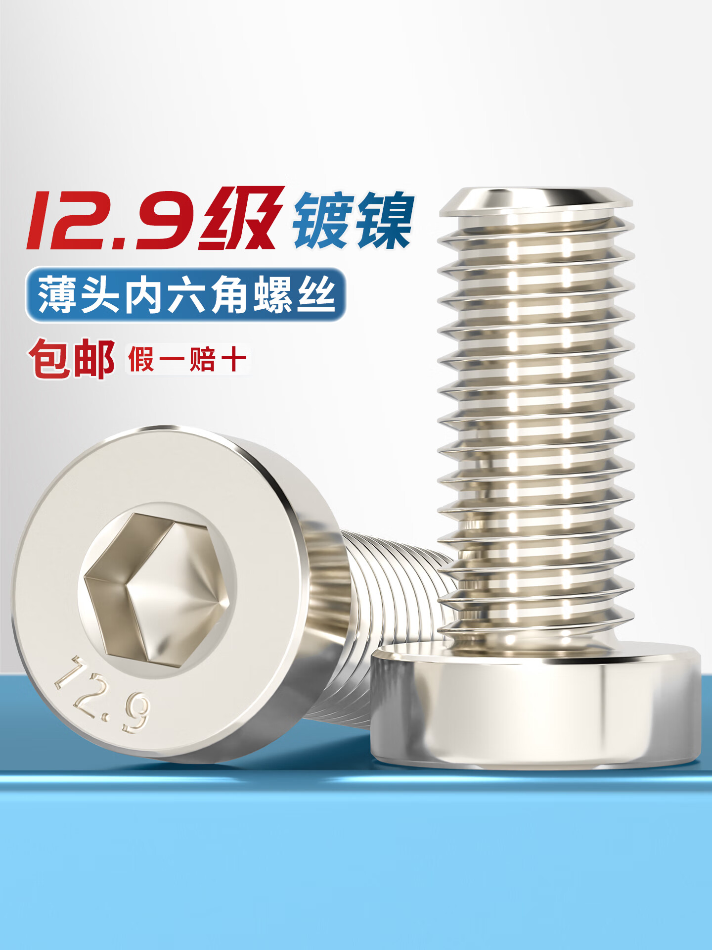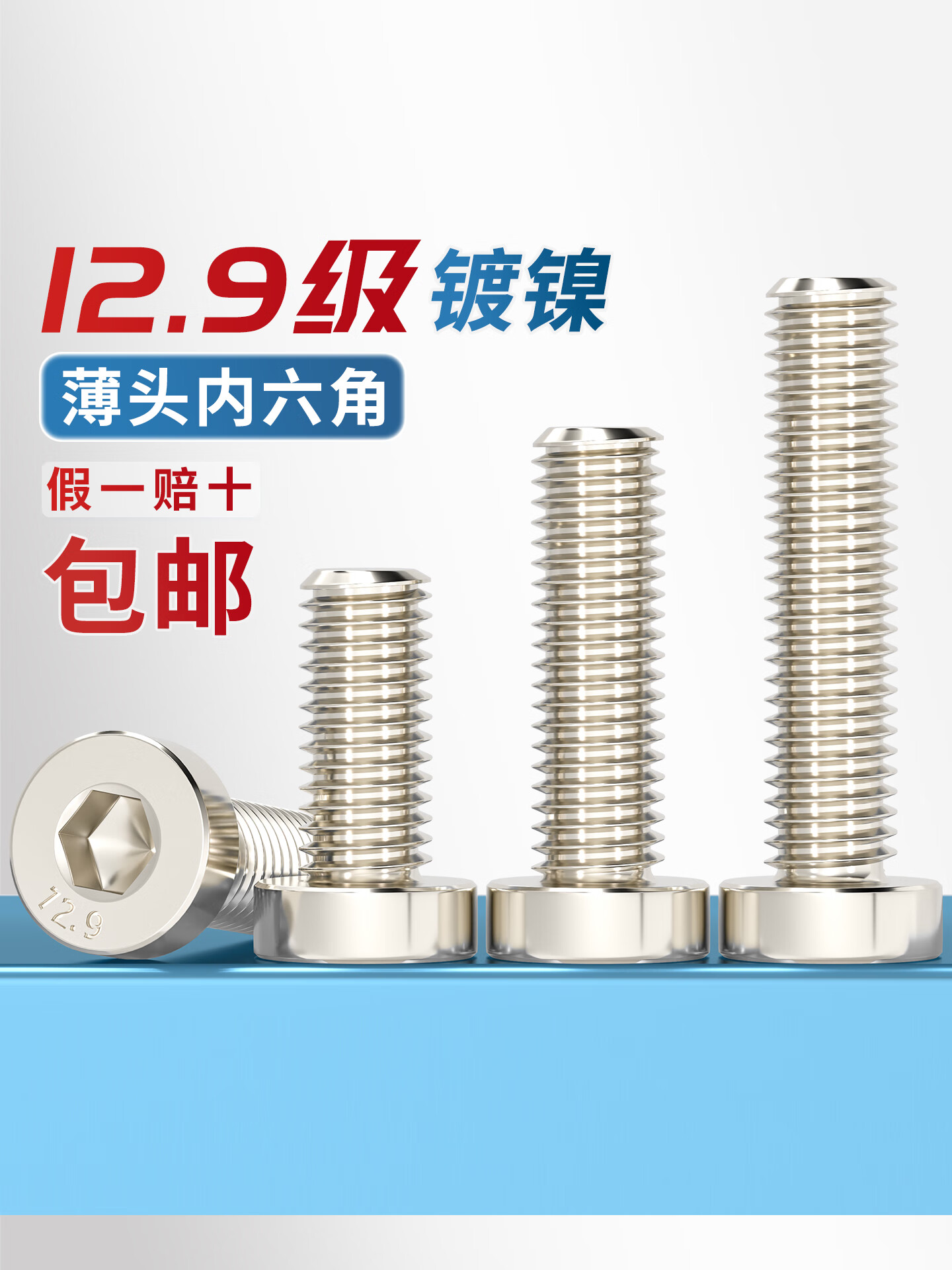 天卓五金12.9级高强度镀镍薄头内六角螺丝矮头六角螺栓M4M5M6M8M10M12M16 ---螺丝表层 涂有【防锈油】---