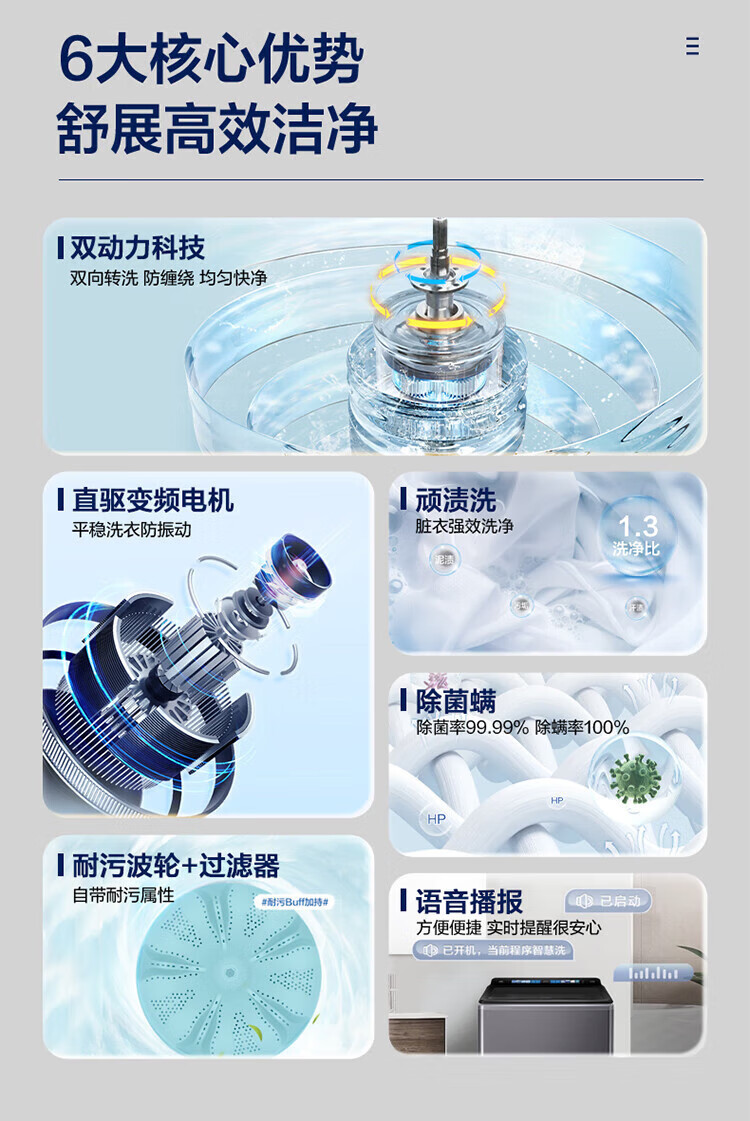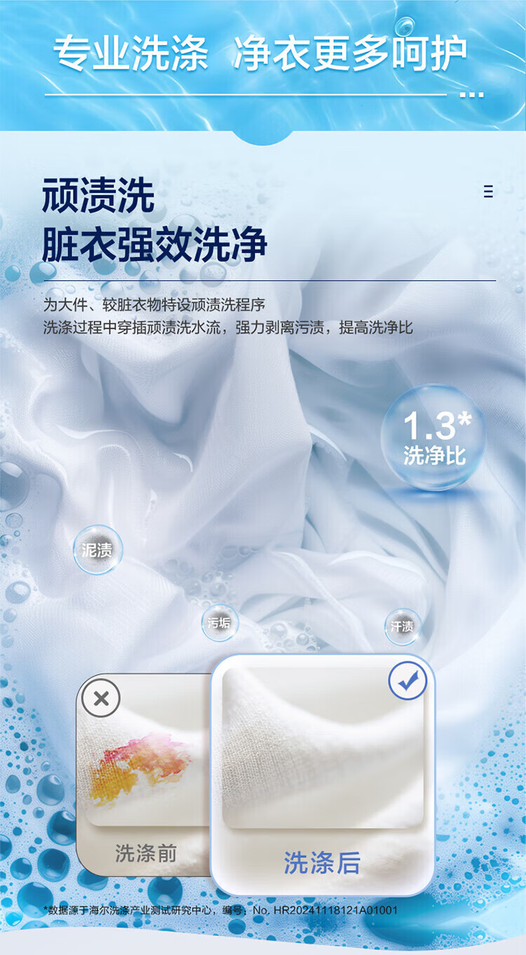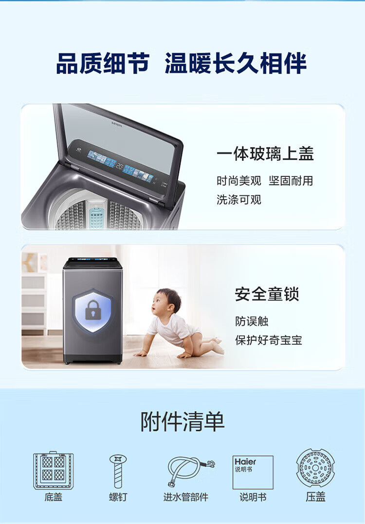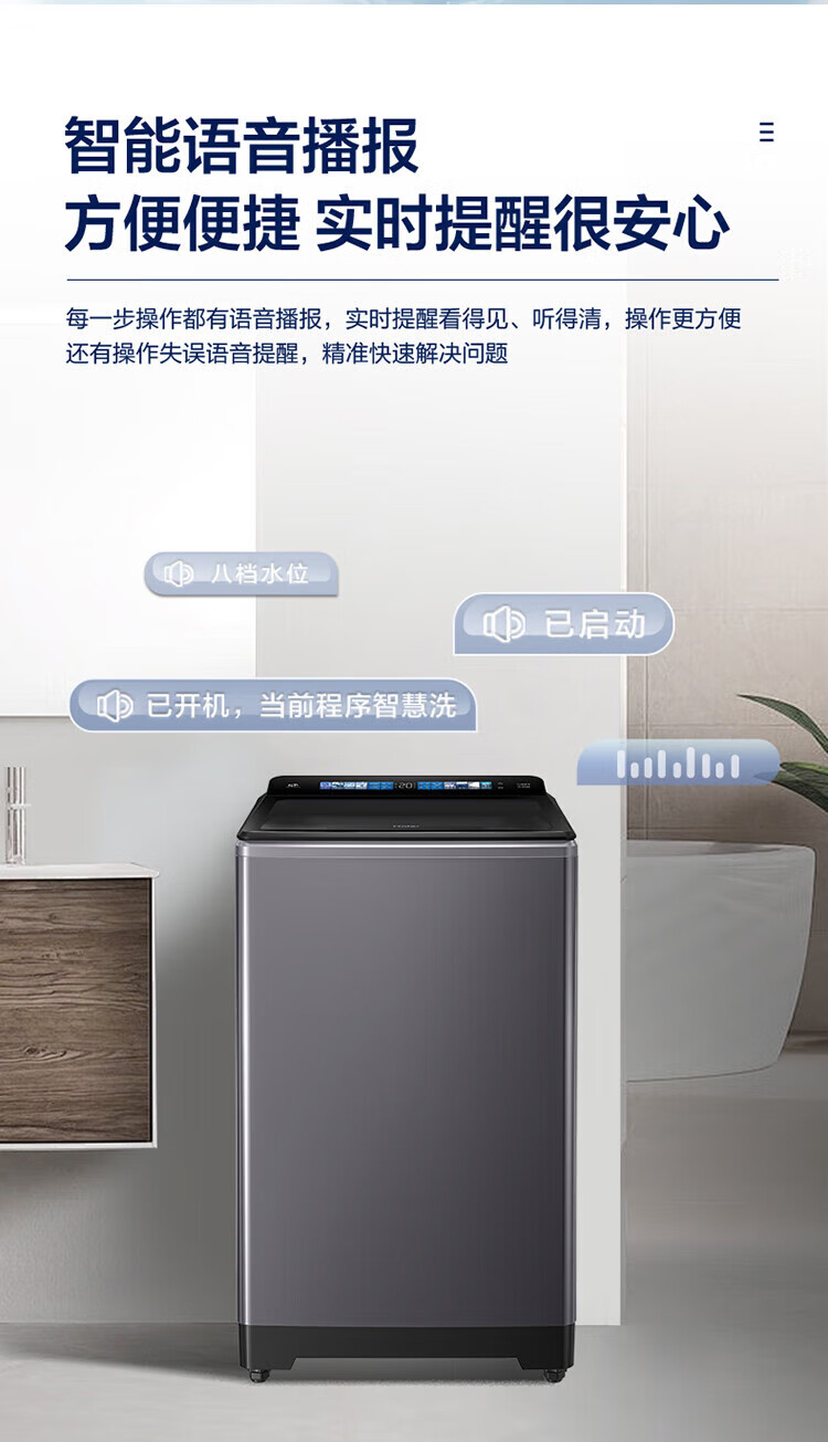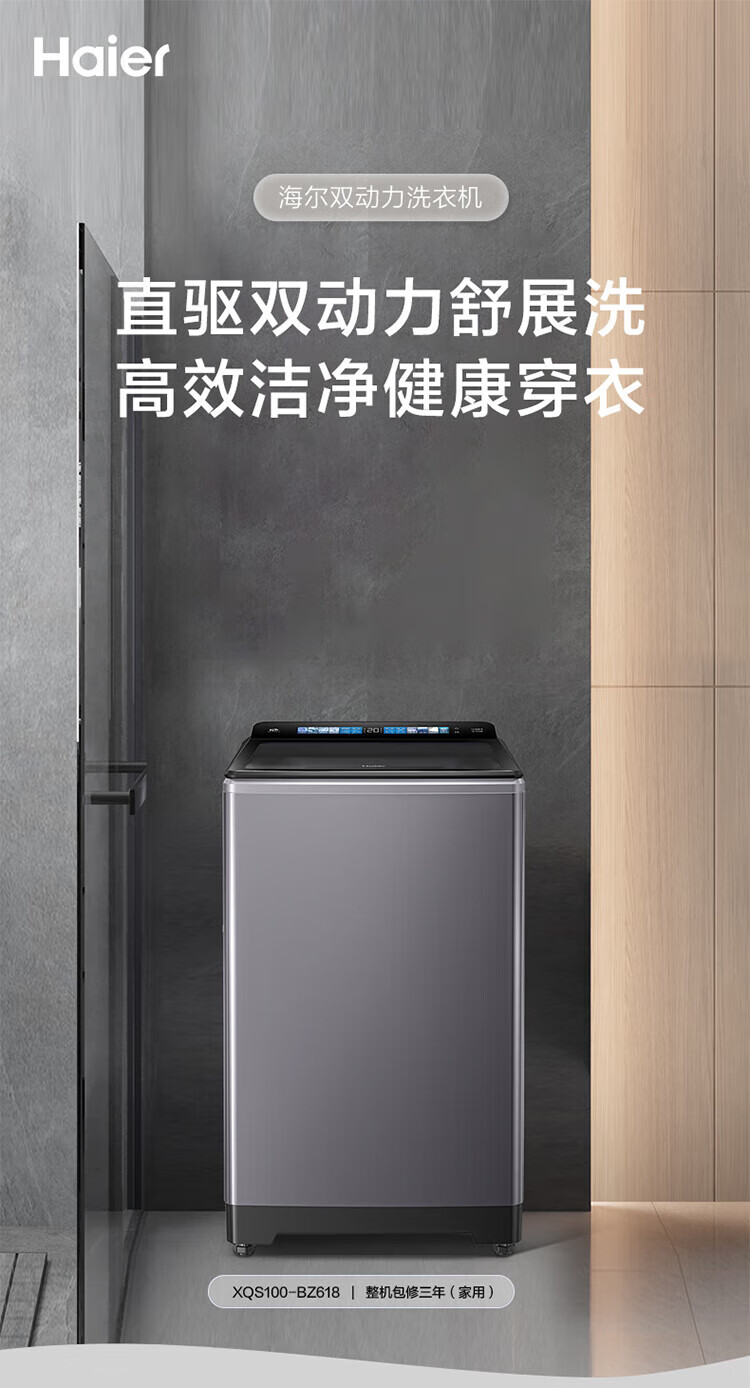 海尔(Haier)波轮洗衣机10公斤全自动直驱变频双动力防缠绕一级变频留水功能+语音播报+彩屏玻璃盖XQS100-BZ618