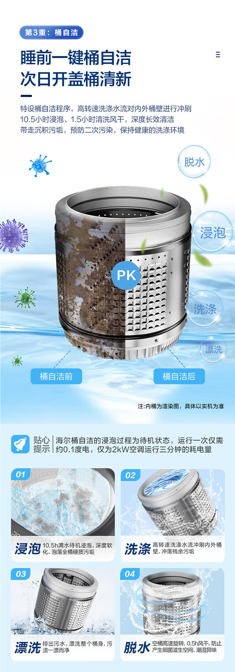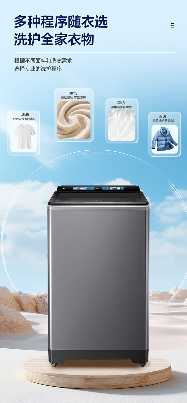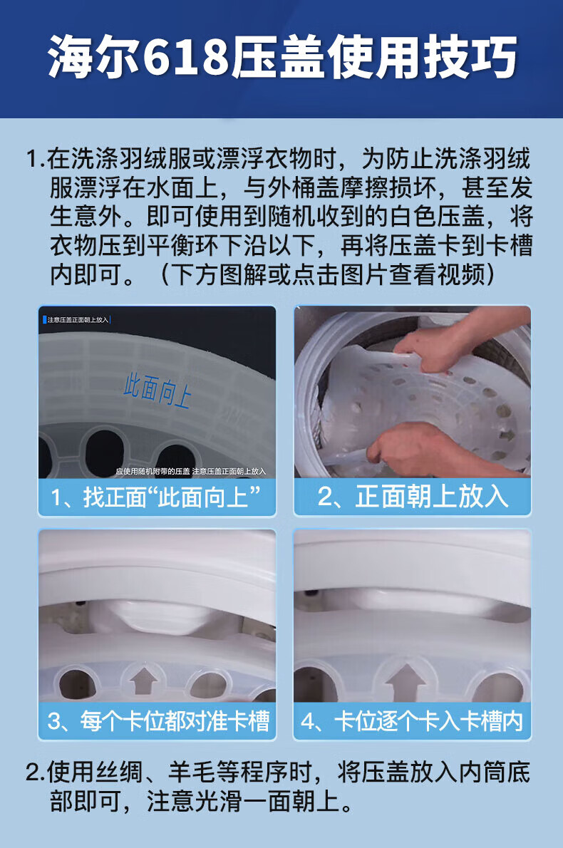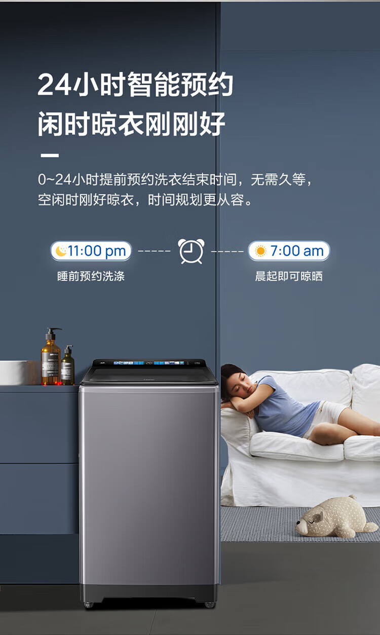 海尔(Haier)波轮洗衣机10公斤全自动直驱变频双动力防缠绕一级变频留水功能+语音播报+彩屏玻璃盖XQS100-BZ618