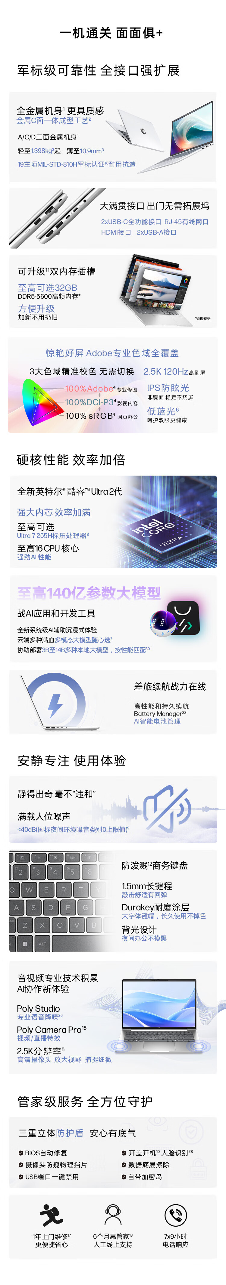惠普(HP)战66 14英寸2025高性能轻薄笔记本电脑 英特尔酷睿二代Ultra5 225H 16G 1T 2.5K 1年上门 国家补贴