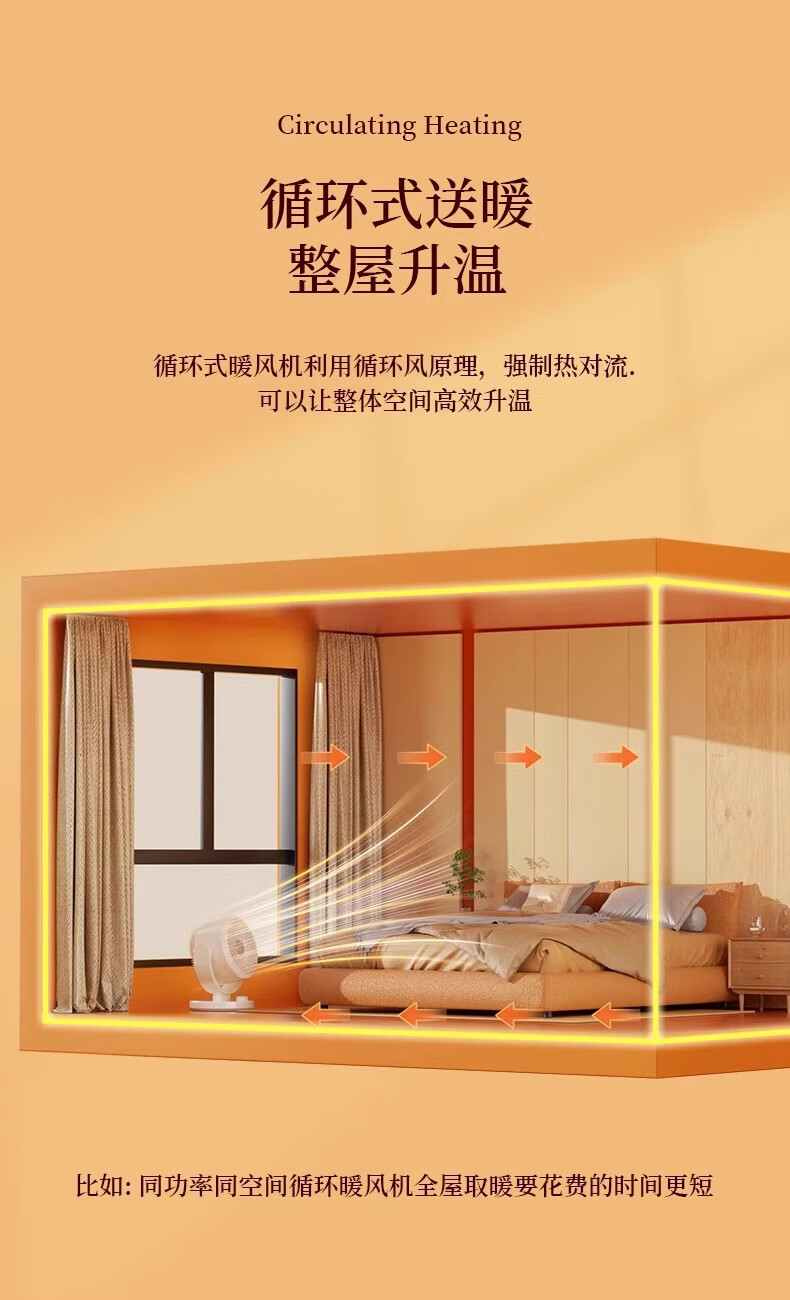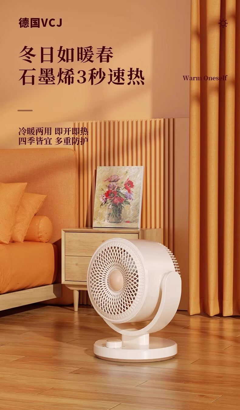 VCJ取暖器空气循环暖风机电暖器气节能省电石墨烯导热速热烤火炉取暖神器家用浴室大面积取暖全屋升温 【旗舰】瞬暖全屋/过热保护/节能电芯