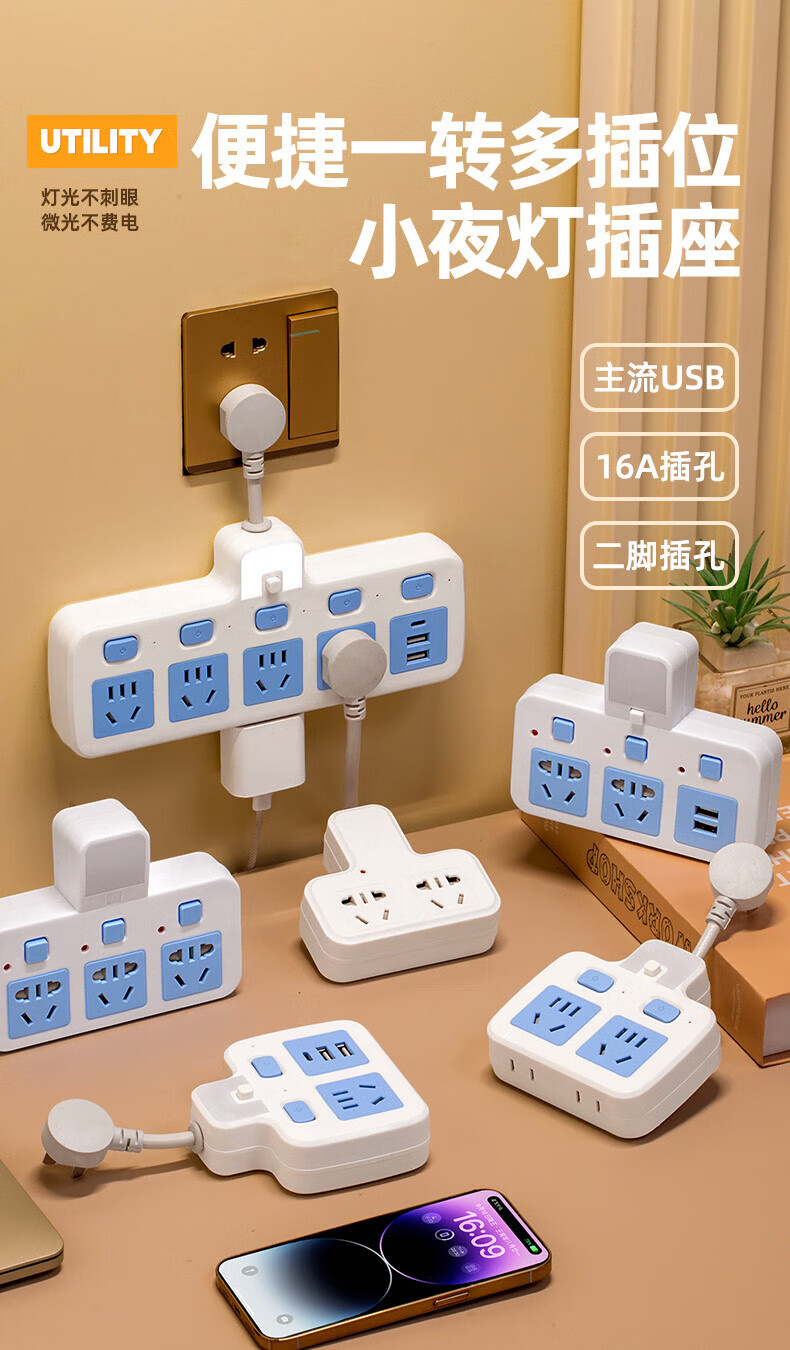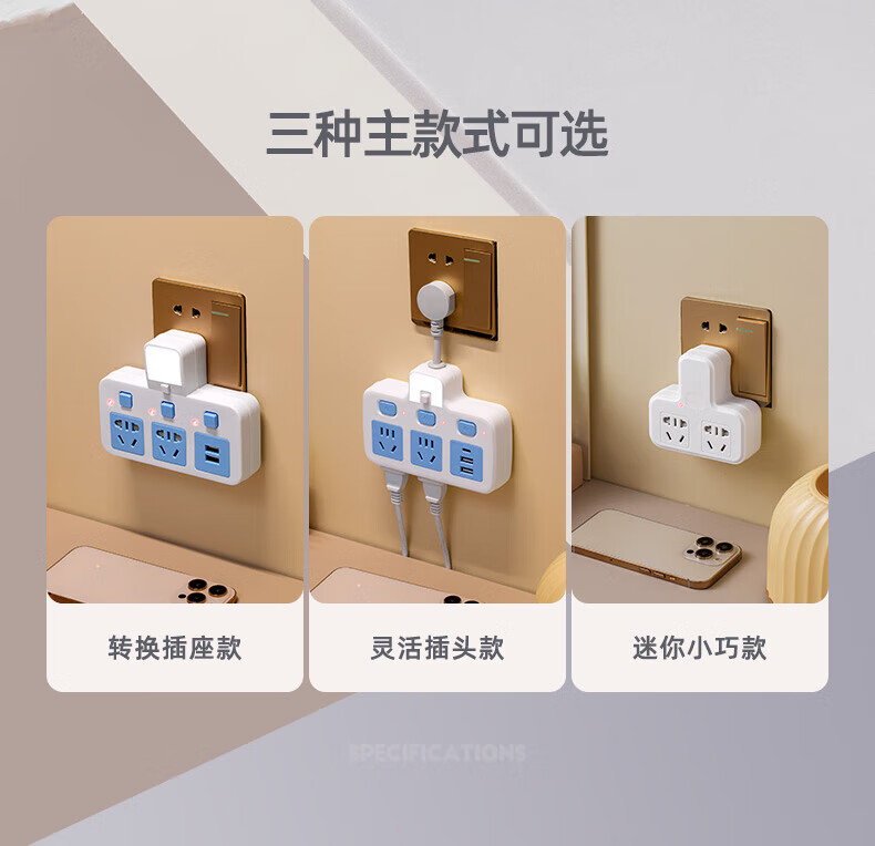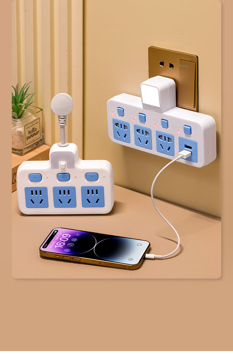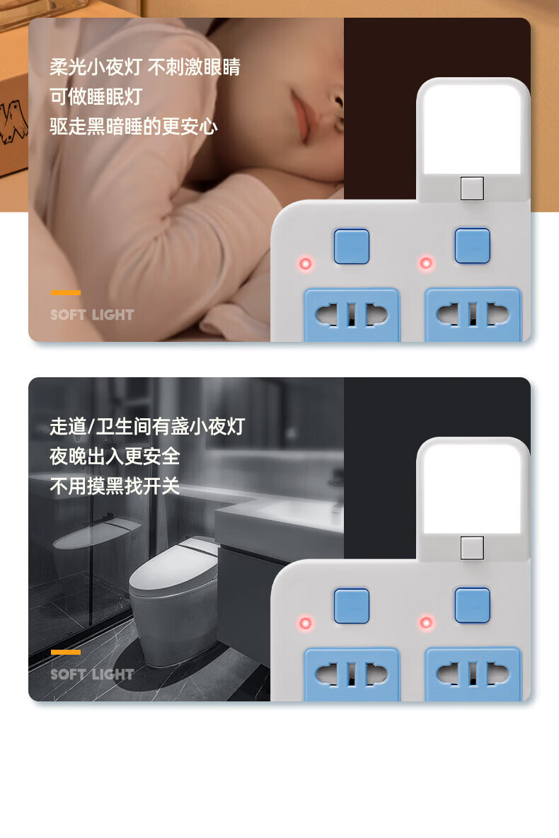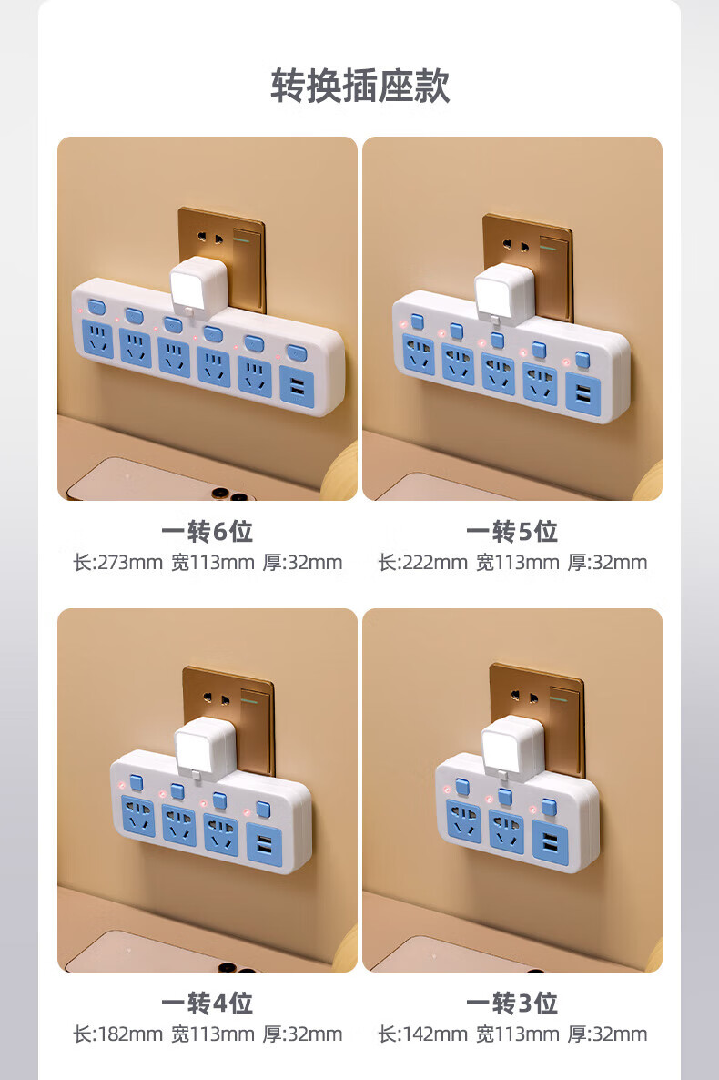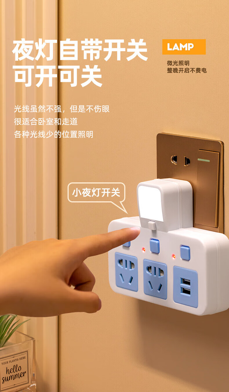 公正午纯铜插座无线多功能转换器夜灯+USB独立开关一转多位排插位多孔宿舍家用办公插线板 无线头:一转三+USB【纯铜+防雷】