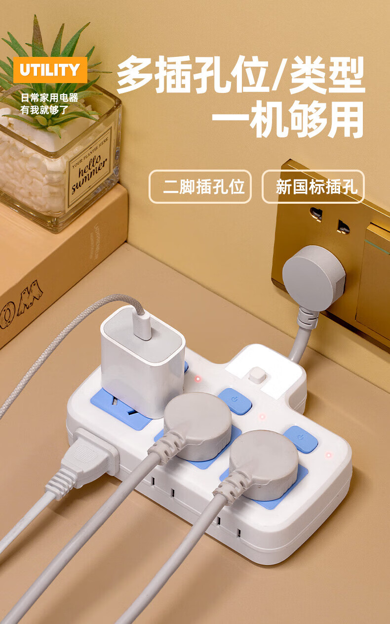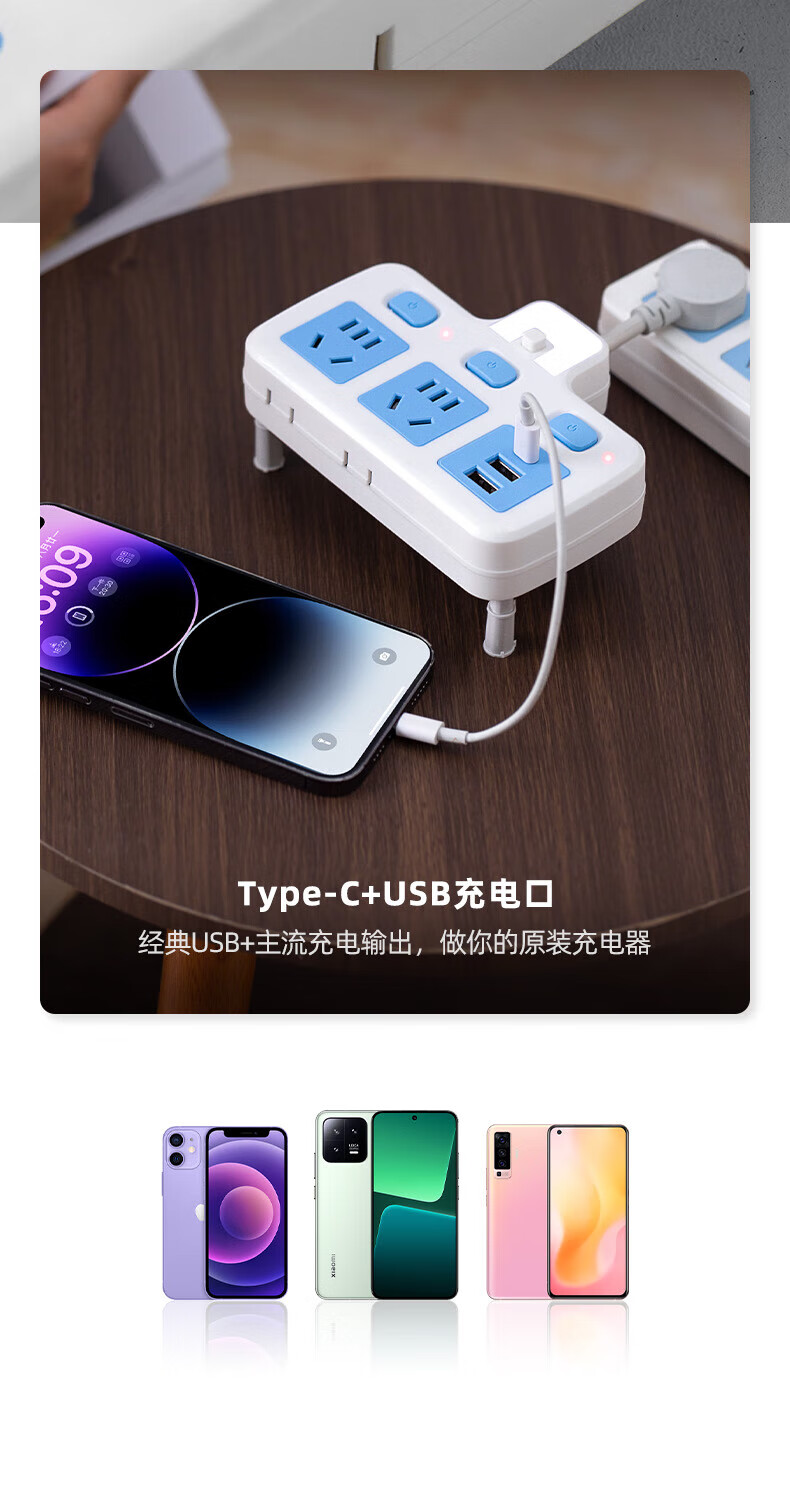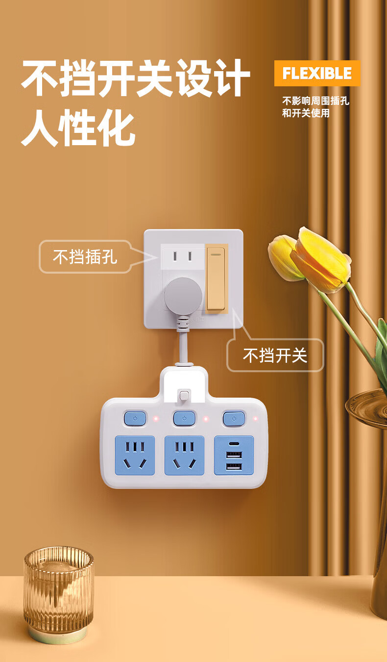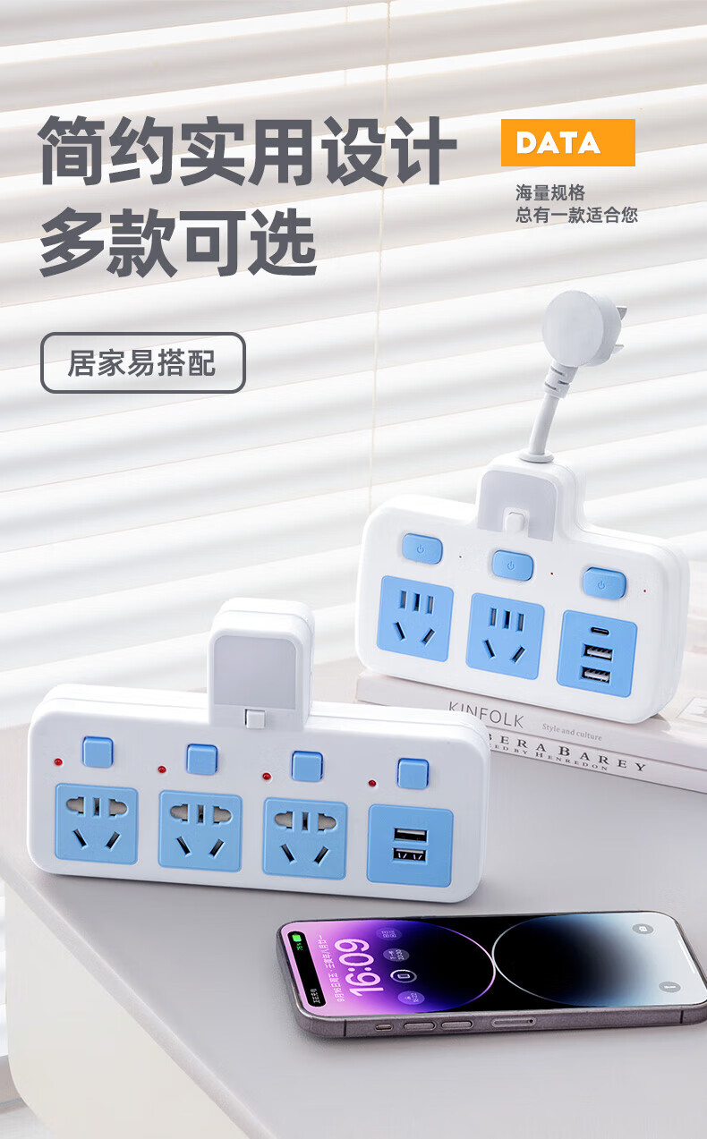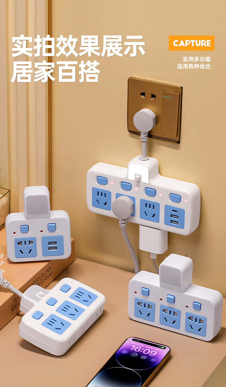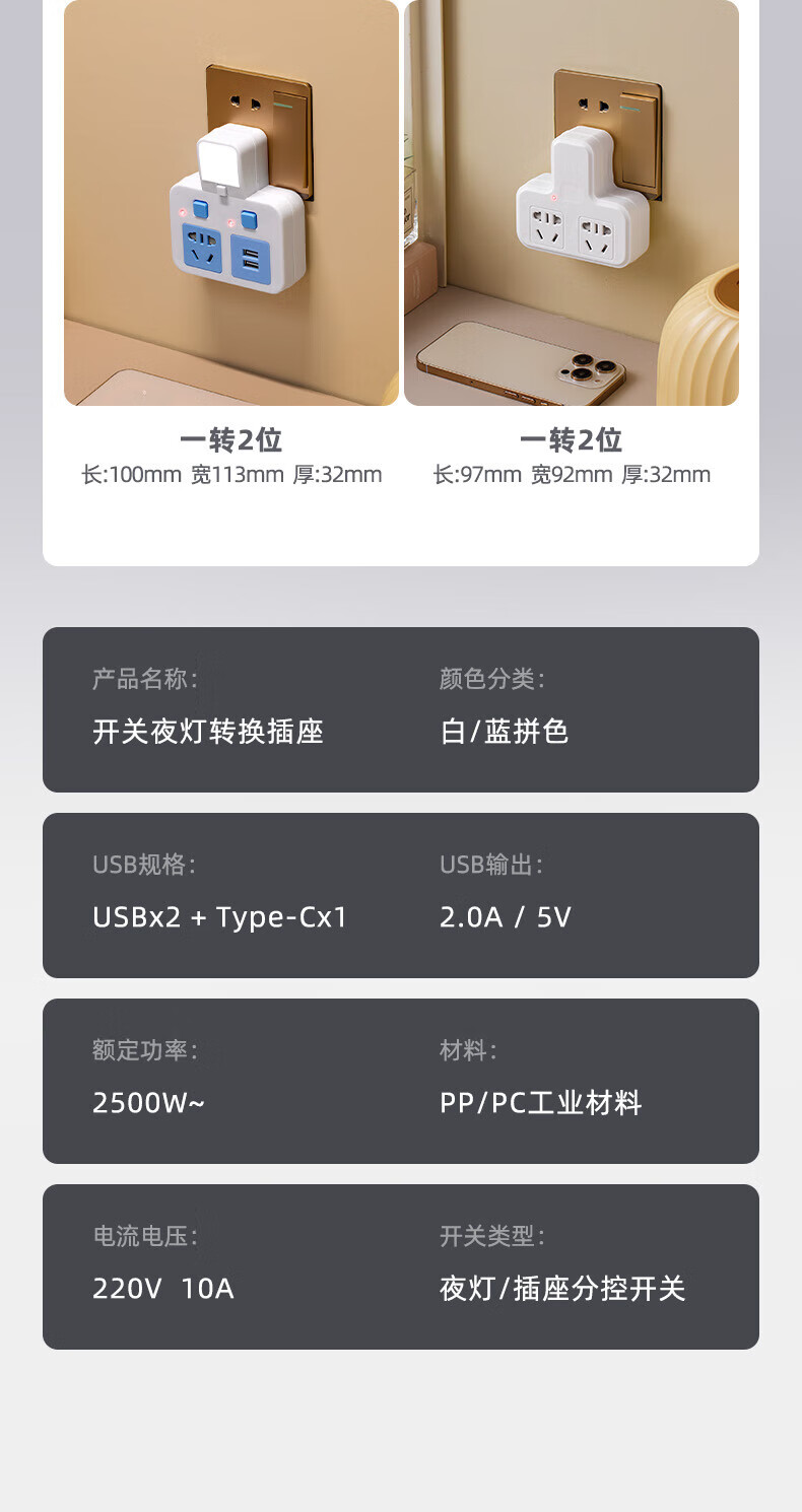 公正午纯铜插座无线多功能转换器夜灯+USB独立开关一转多位排插位多孔宿舍家用办公插线板 无线头:一转三+USB【纯铜+防雷】