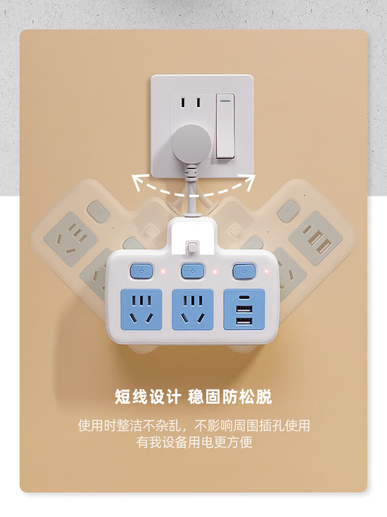 德力西(DELIXI)排插/插座/家用墙壁电源插座 宿舍神器魔方插座 分控一转多桌面圆盘插座 【品字形】 一转三 分控