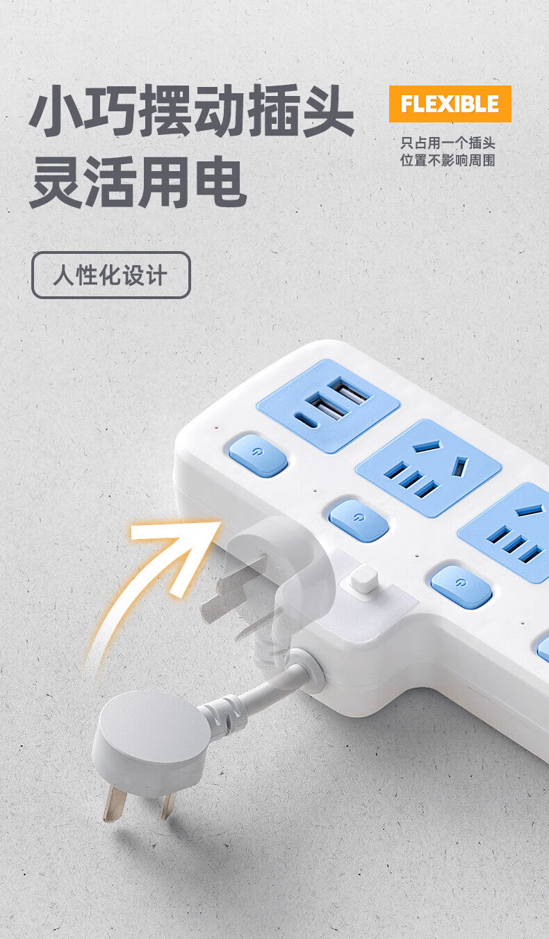 德力西(DELIXI)排插/插座/家用墙壁电源插座 宿舍神器魔方插座 分控一转多桌面圆盘插座 【经典款】8位5孔1.8米总控