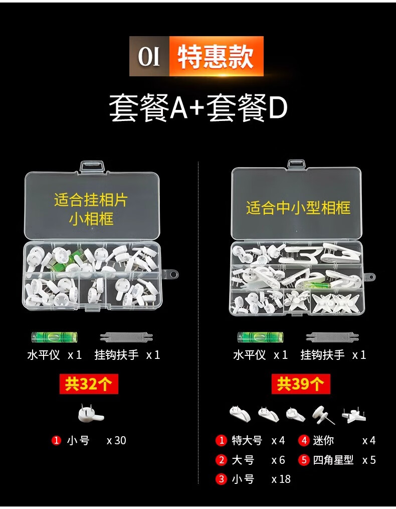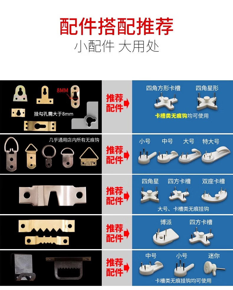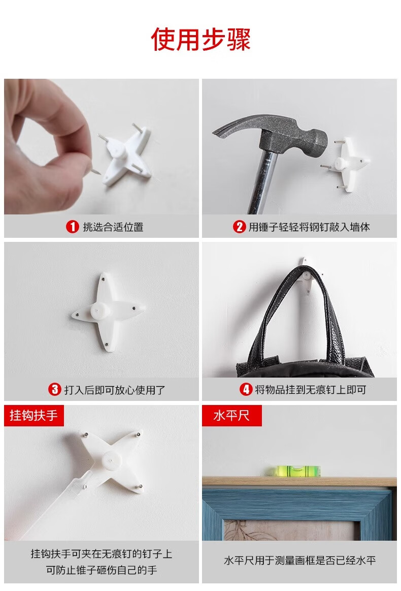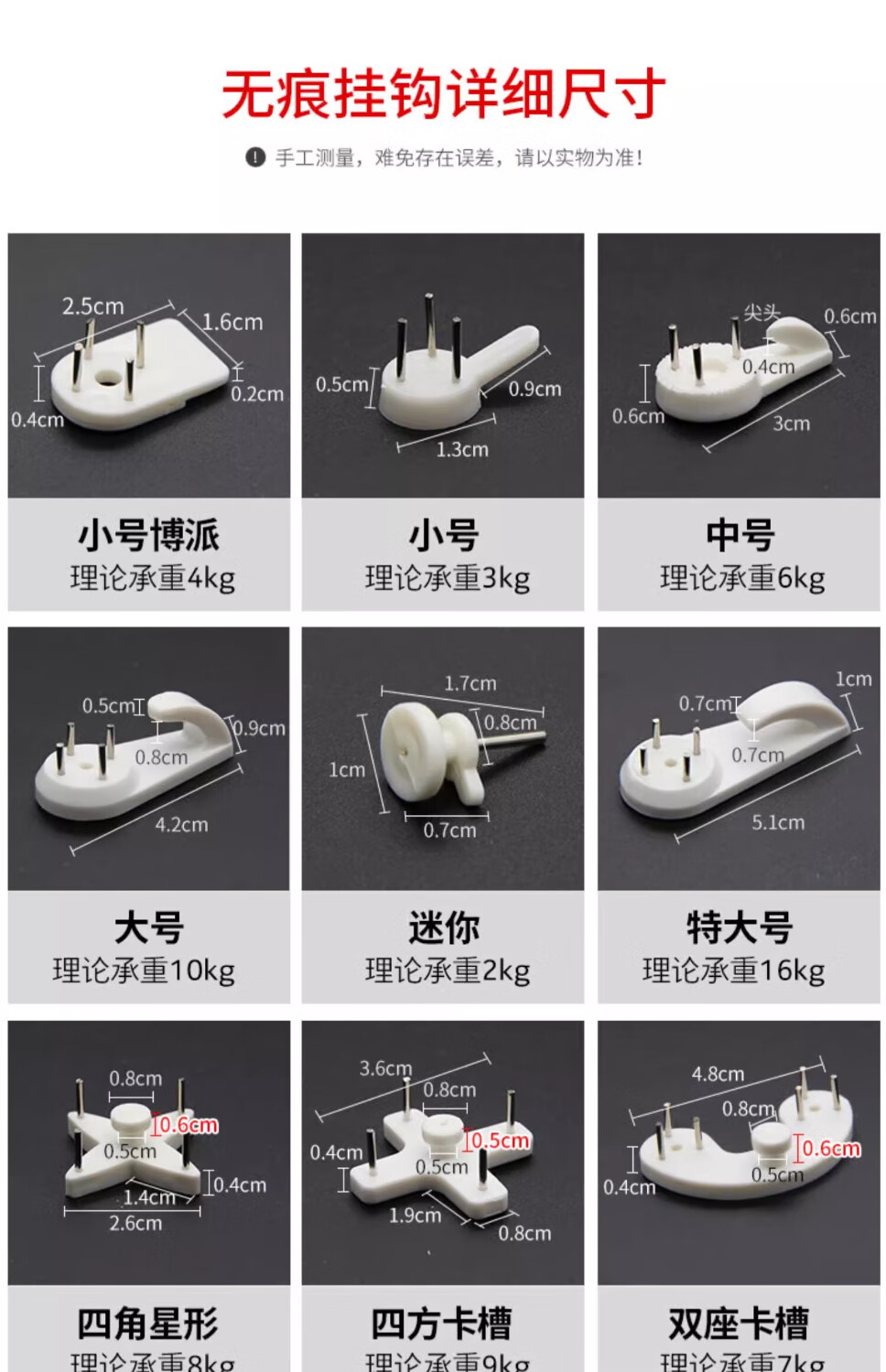 【精选直发】无痕钉墙钉墙壁挂画免打孔强力承重隐形挂钩挂照片相 小号10个装.