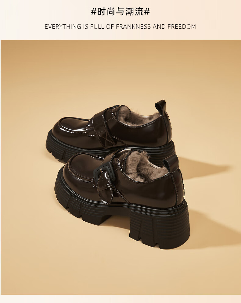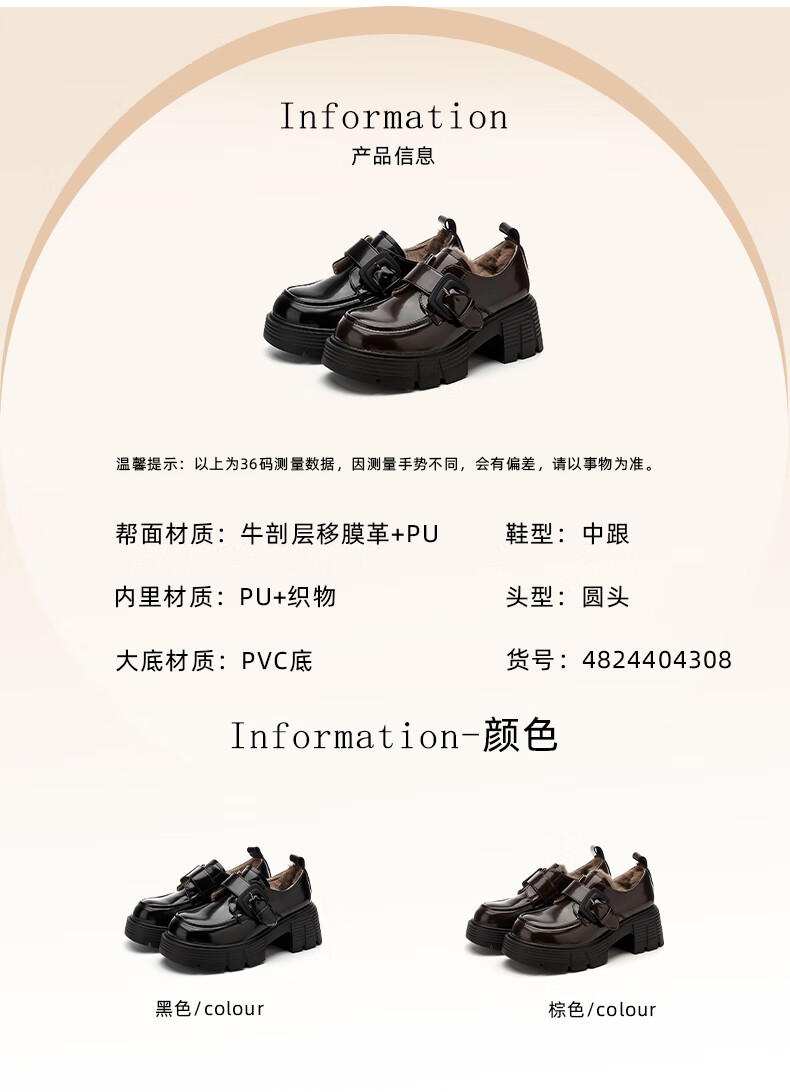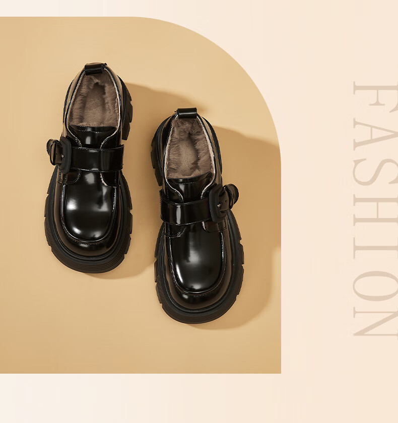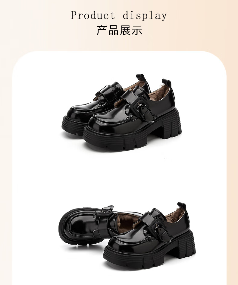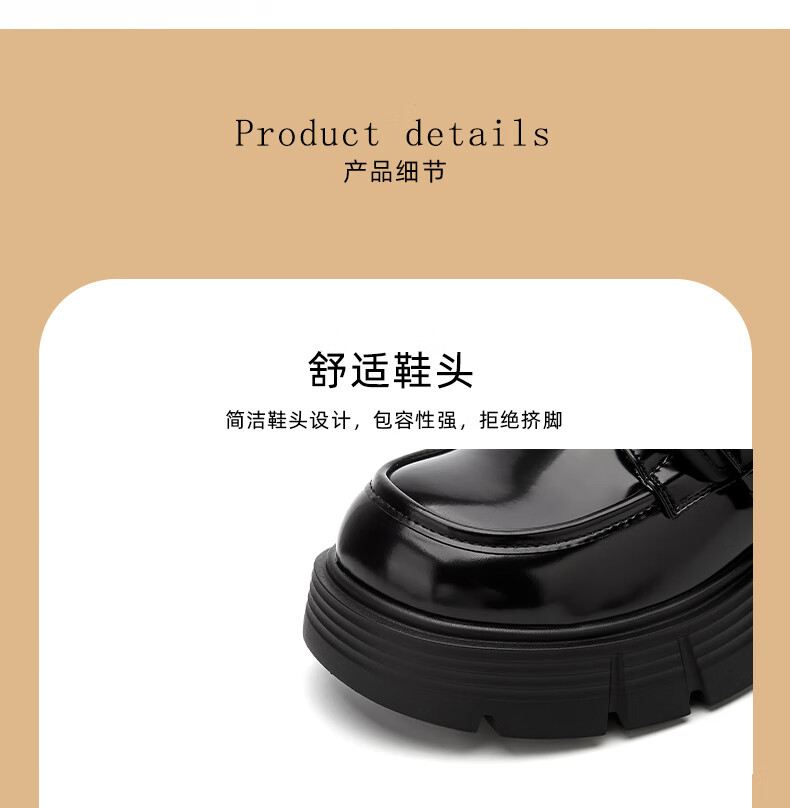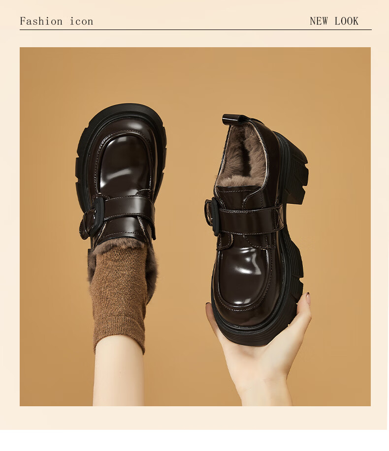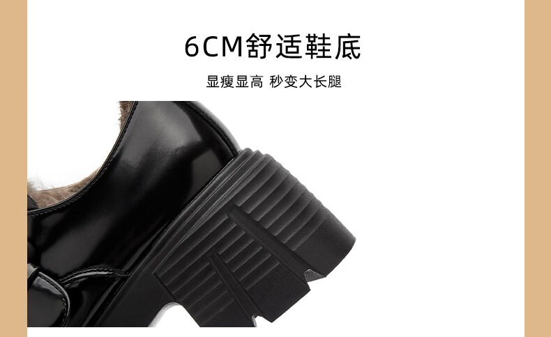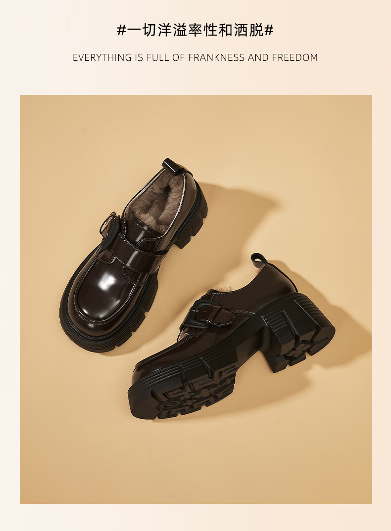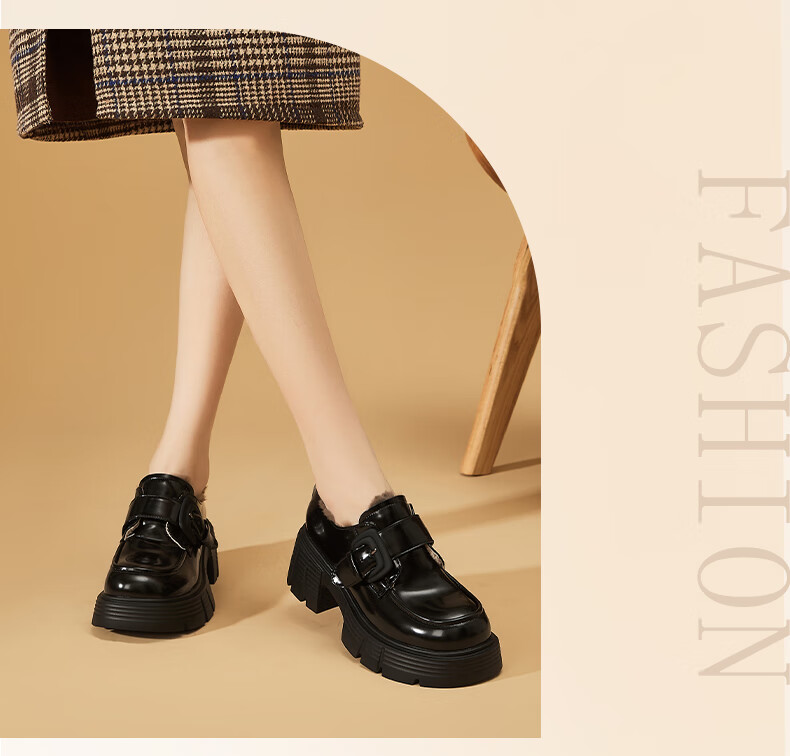达芙妮加绒乐福鞋厚底百搭2025秋冬新款复古学院jk鞋子女增高黑色小皮鞋 黑色 加绒 38