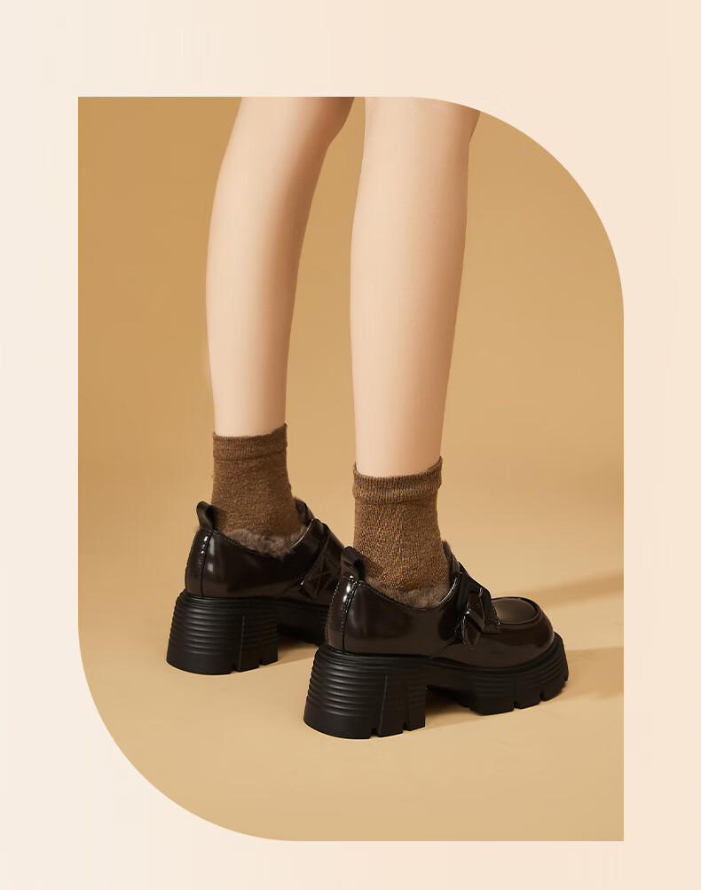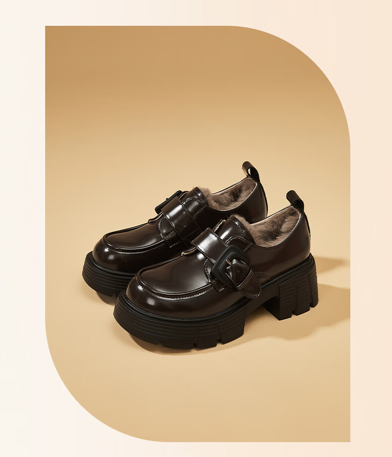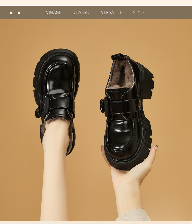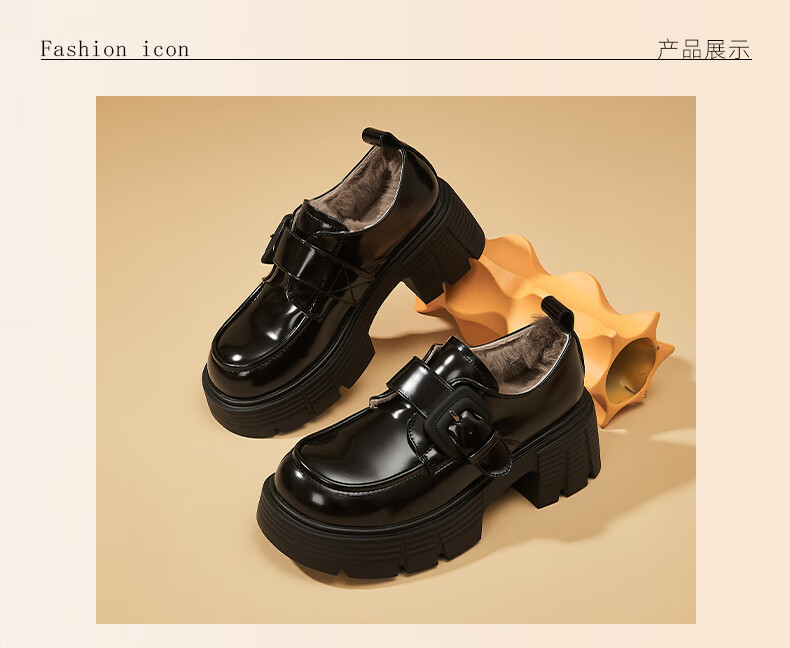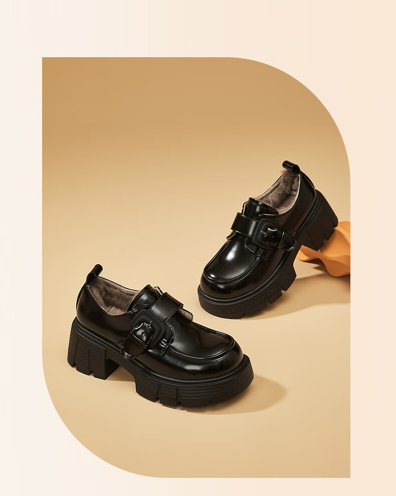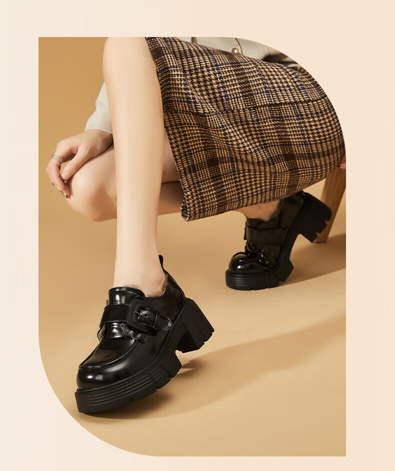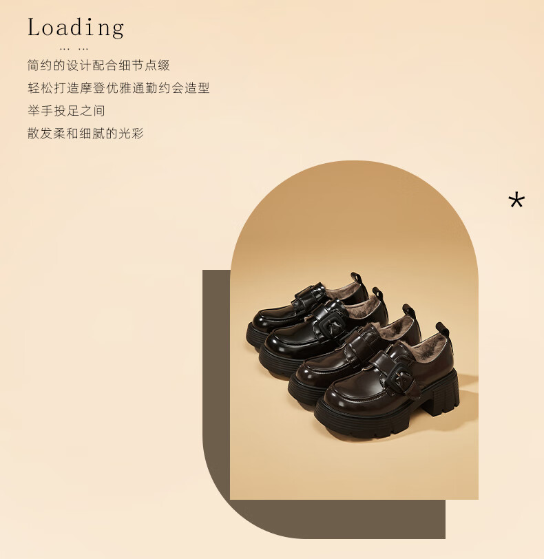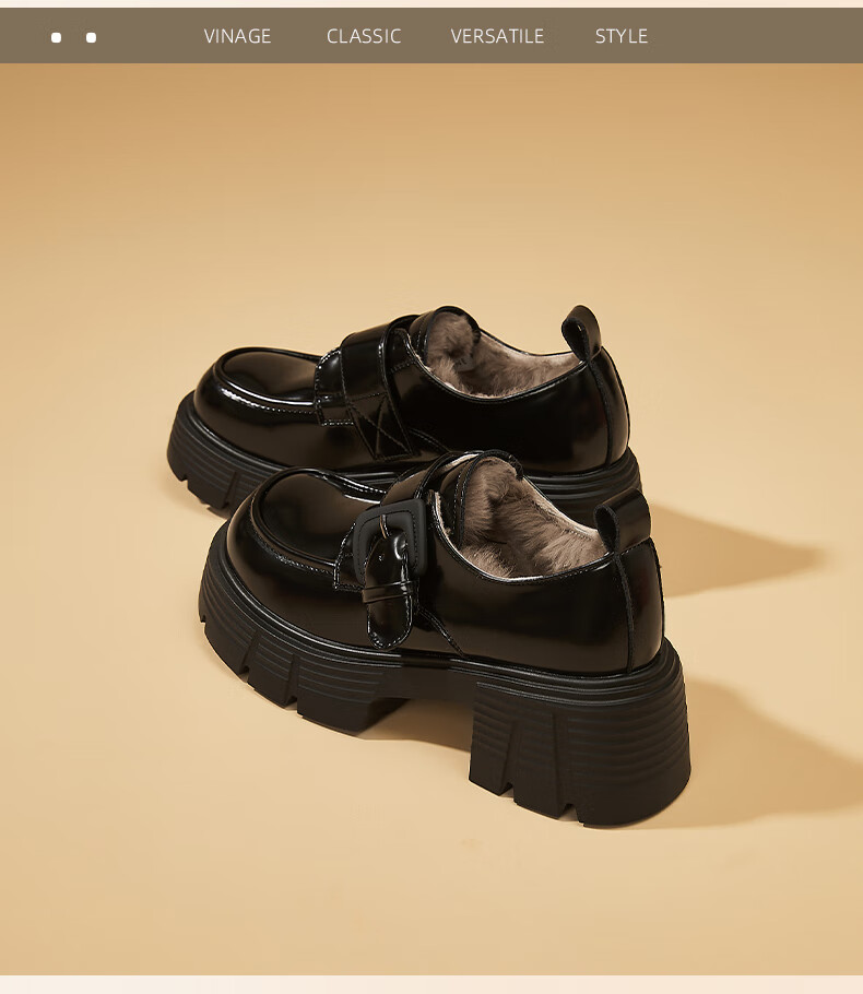 达芙妮加绒乐福鞋厚底百搭2025秋冬新款复古学院jk鞋子女增高黑色小皮鞋 黑色 加绒 38