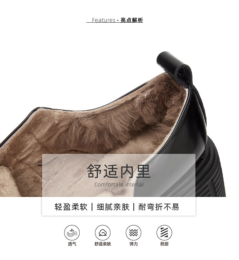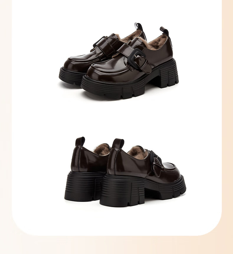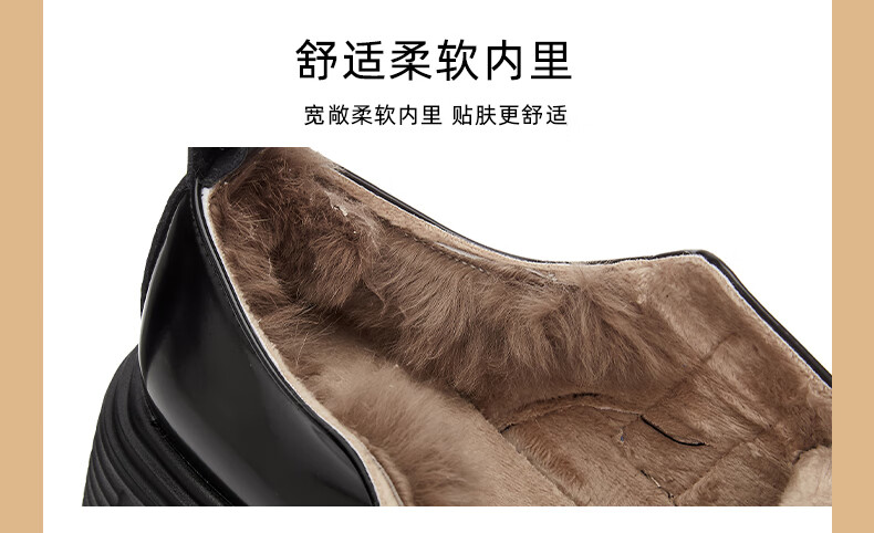 他她(TATA)棉鞋女2025冬季毛毛单鞋厚底加绒保暖女鞋防滑鞋子CYY07DM5 棕色(仿毛里)-魔术贴款 37
