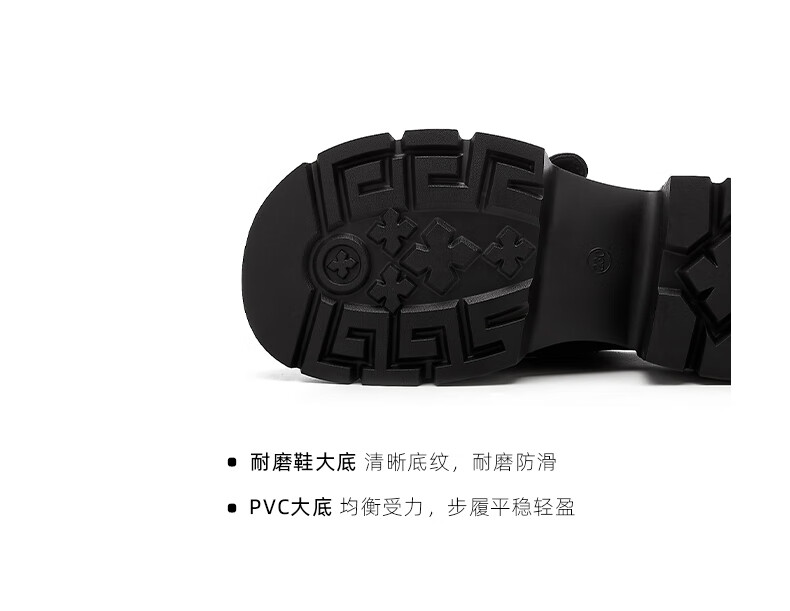 他她(TATA)海盐黑咖切尔西女靴休闲厚底加绒烟筒靴秋冬新款WJZ01DZ4 黑(鞋底红单里-靴筒18cm) 34