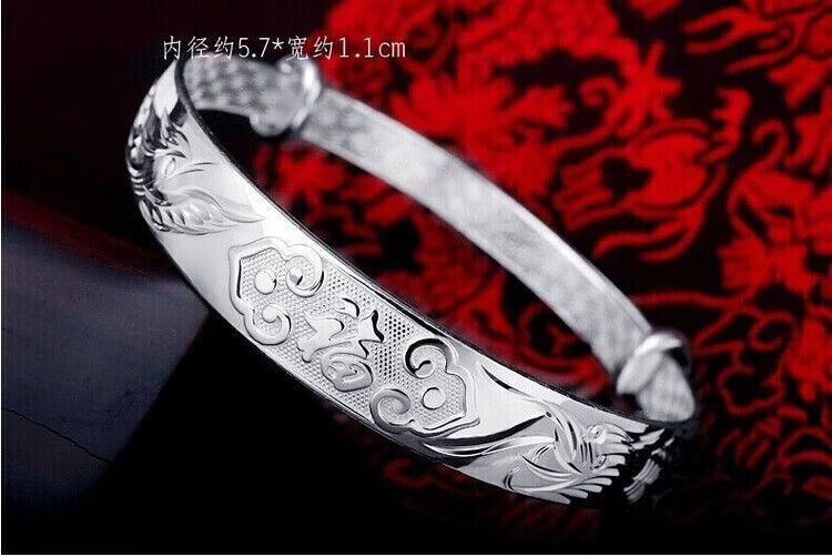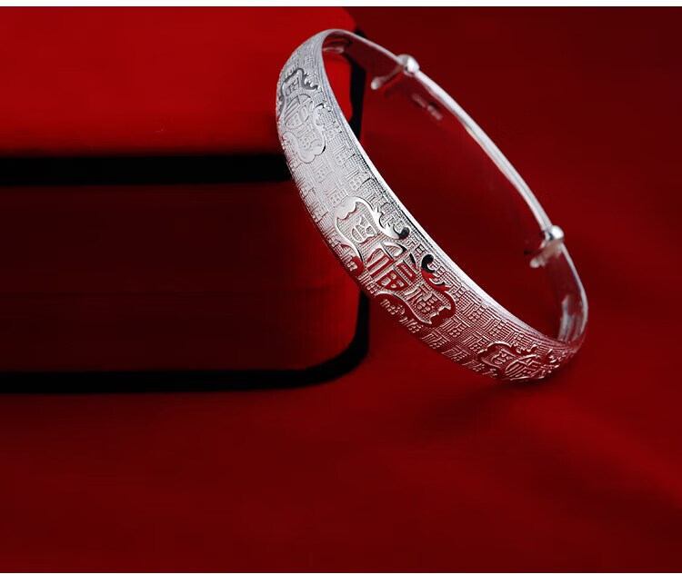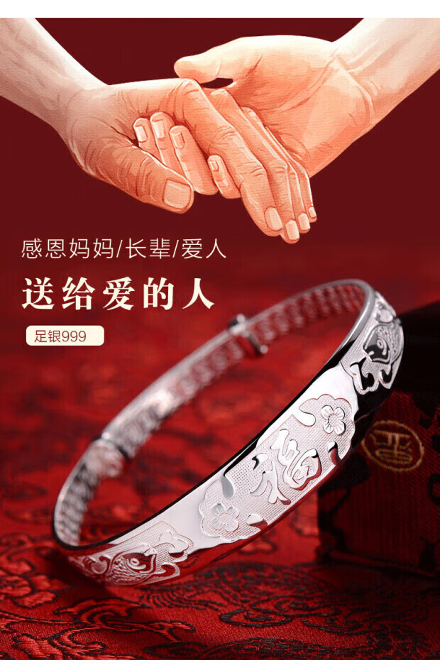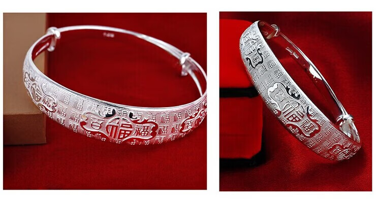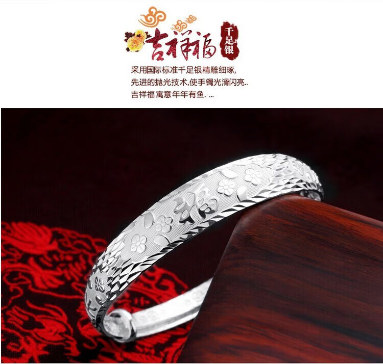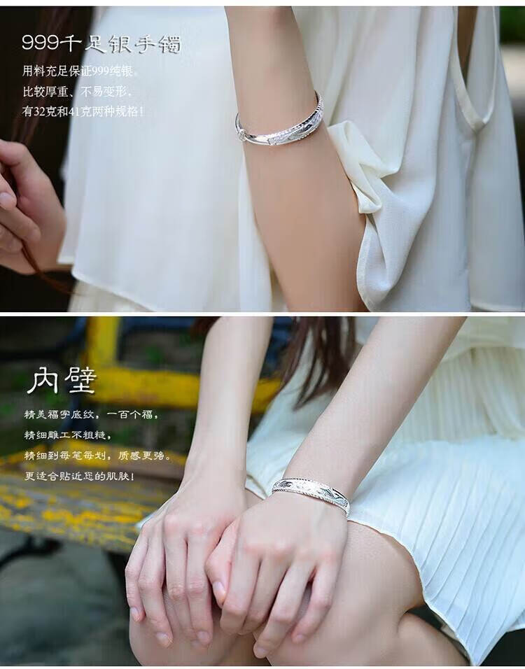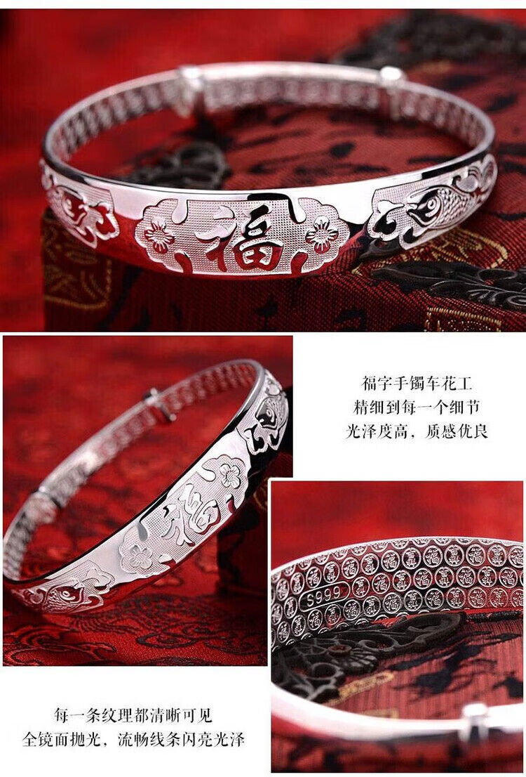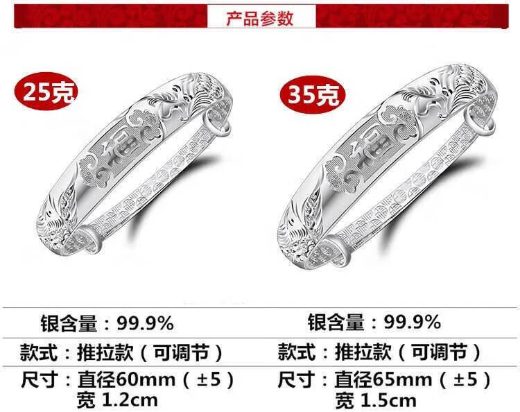 足银9999手镯妈妈款纯银手镯女实心福字龙凤手环送妈妈婆婆 福字双鱼25