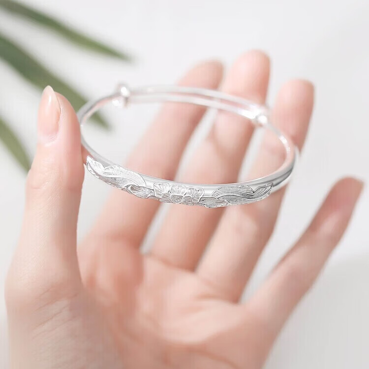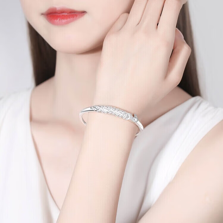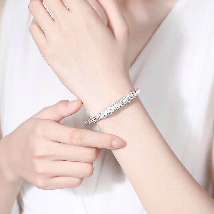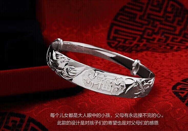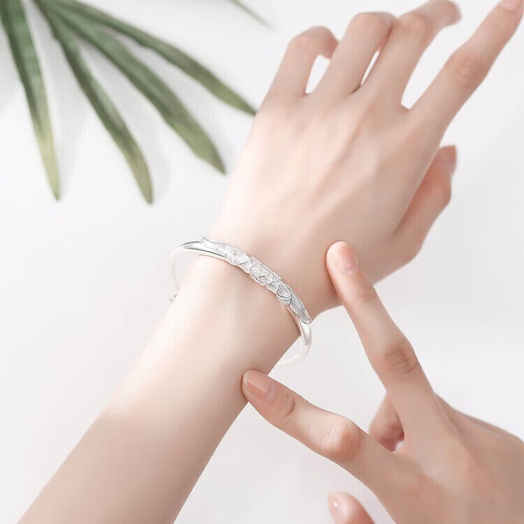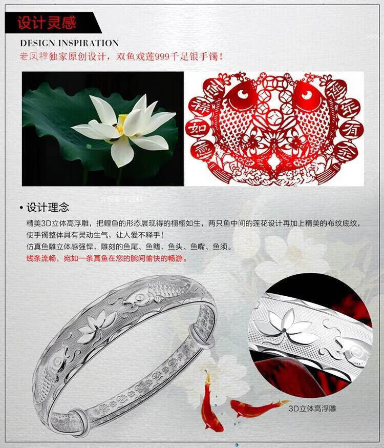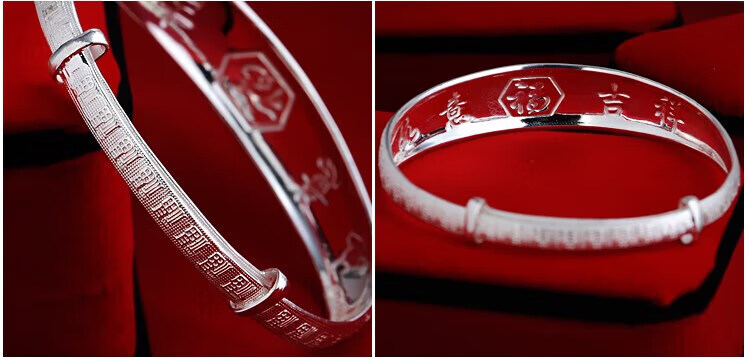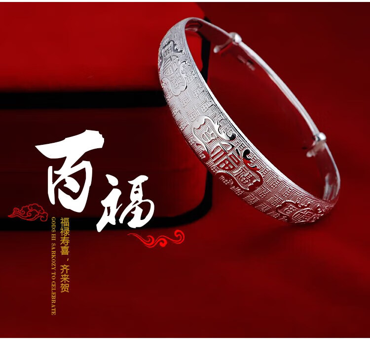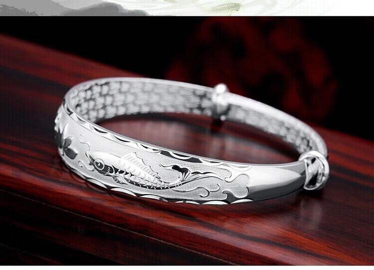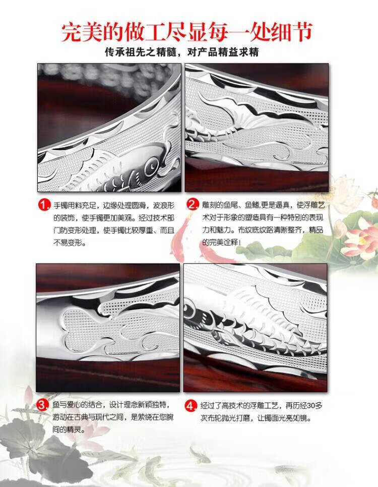 足银9999手镯妈妈款纯银手镯女实心福字龙凤手环送妈妈婆婆 福字双鱼25