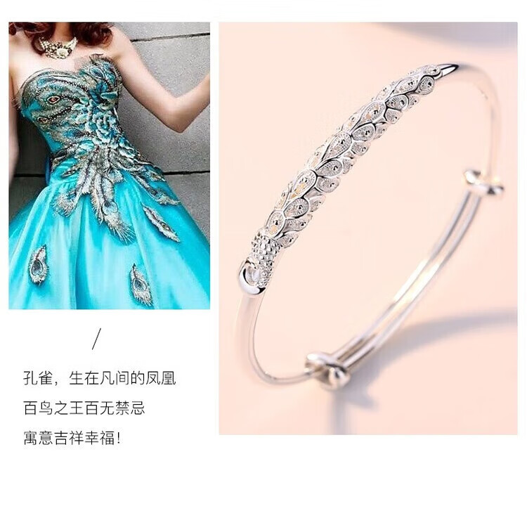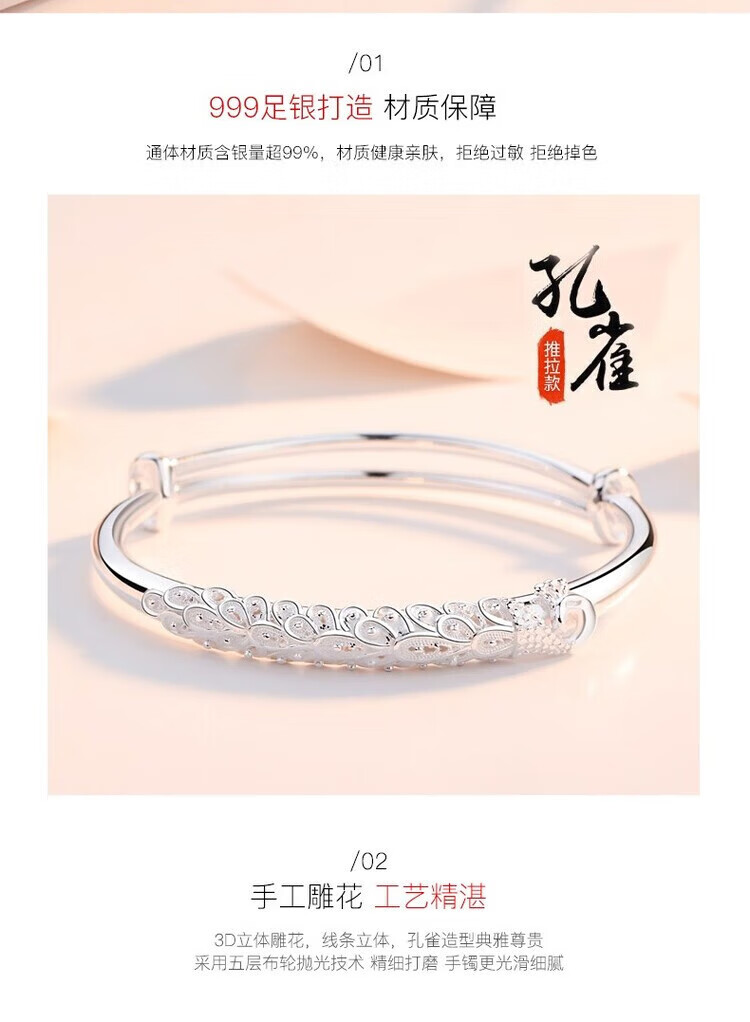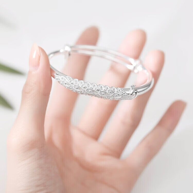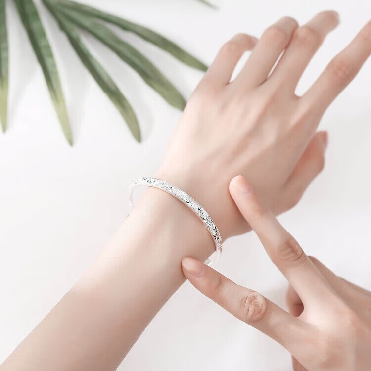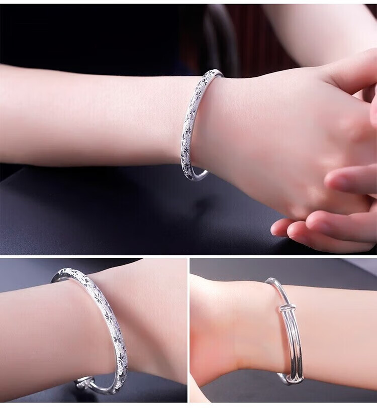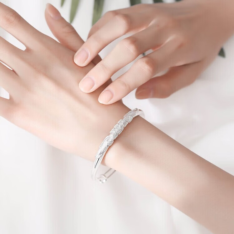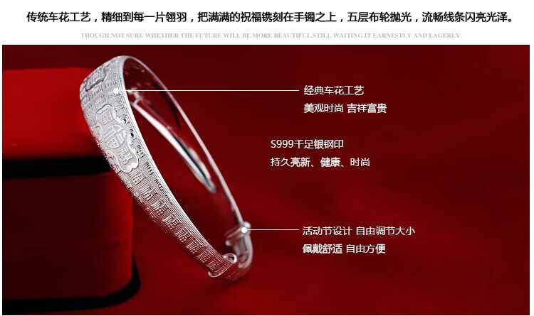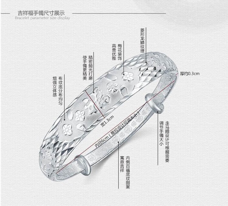 足银9999手镯妈妈款纯银手镯女实心福字龙凤手环送妈妈婆婆 福字双鱼25
