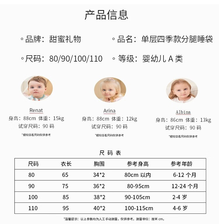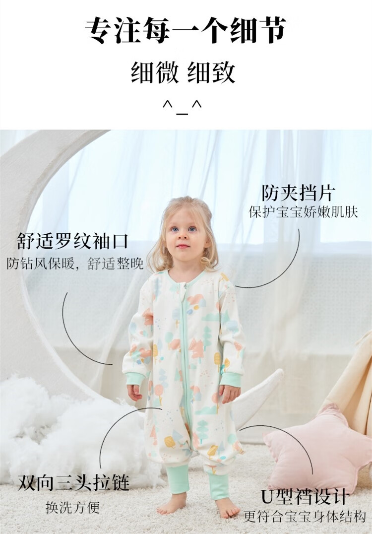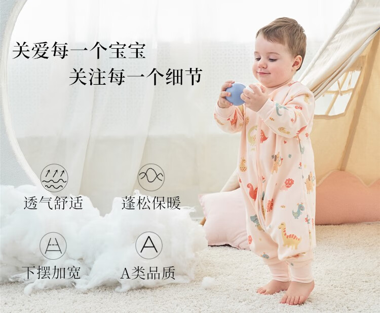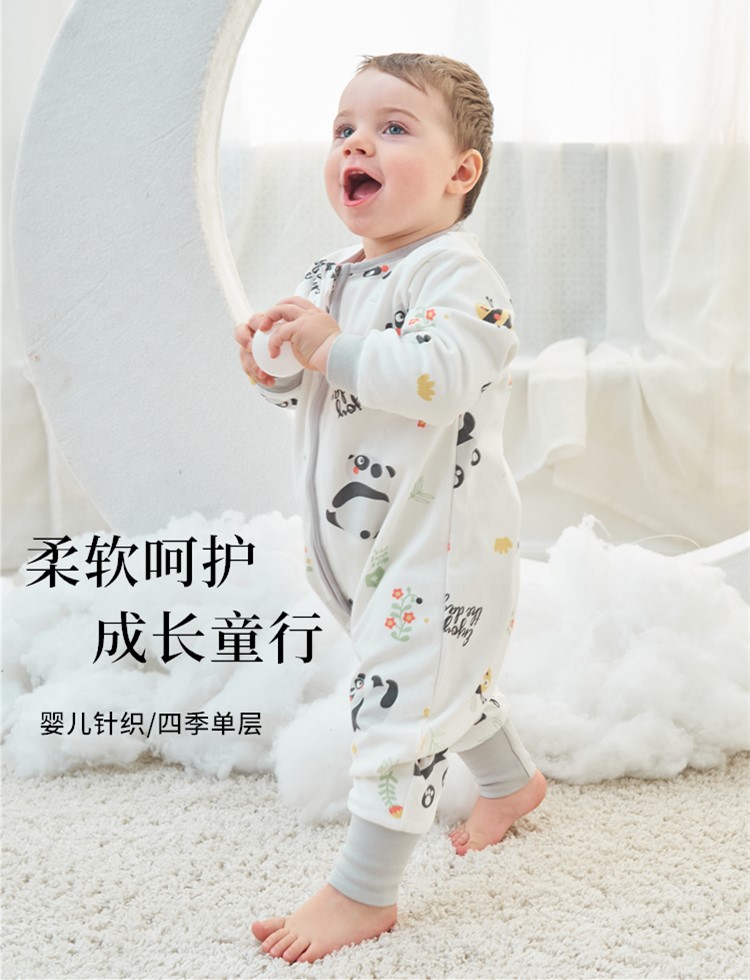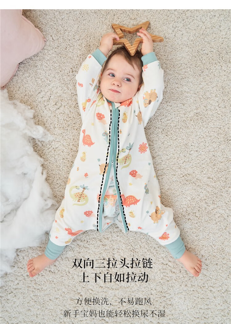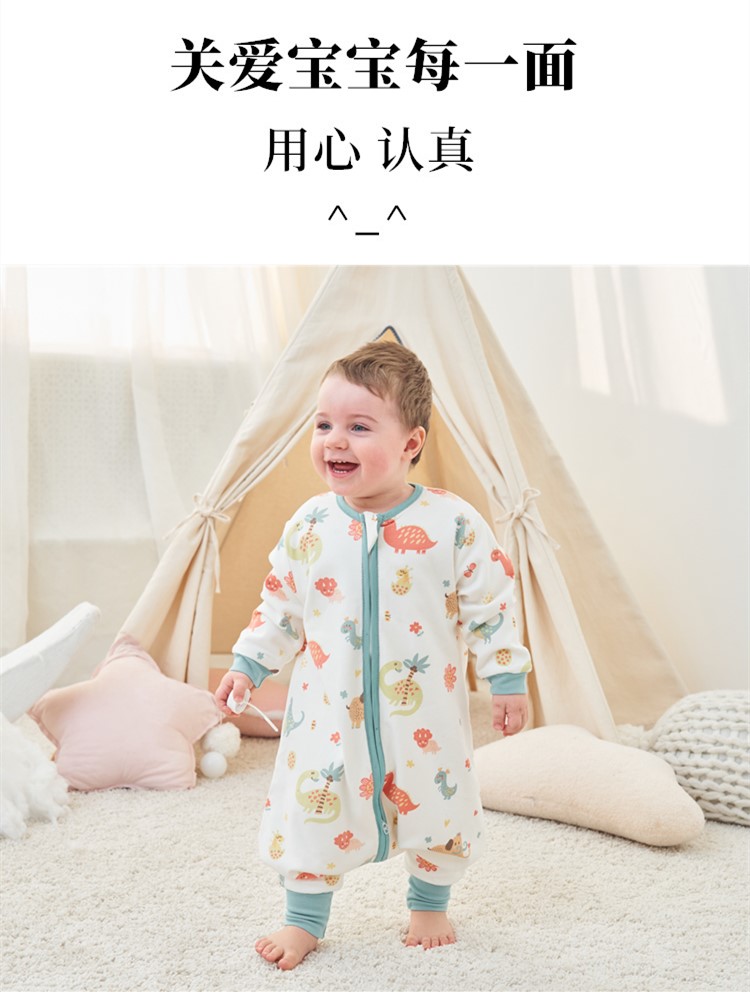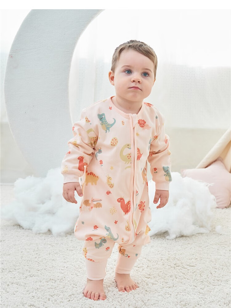 甜蜜礼物四季单层分腿睡袋春夏秋冬新款婴幼儿童男女宝棉分腿睡袋家居服 单层【春秋22-28度】白色恐龙 100码(身高95-105CM)2-4岁