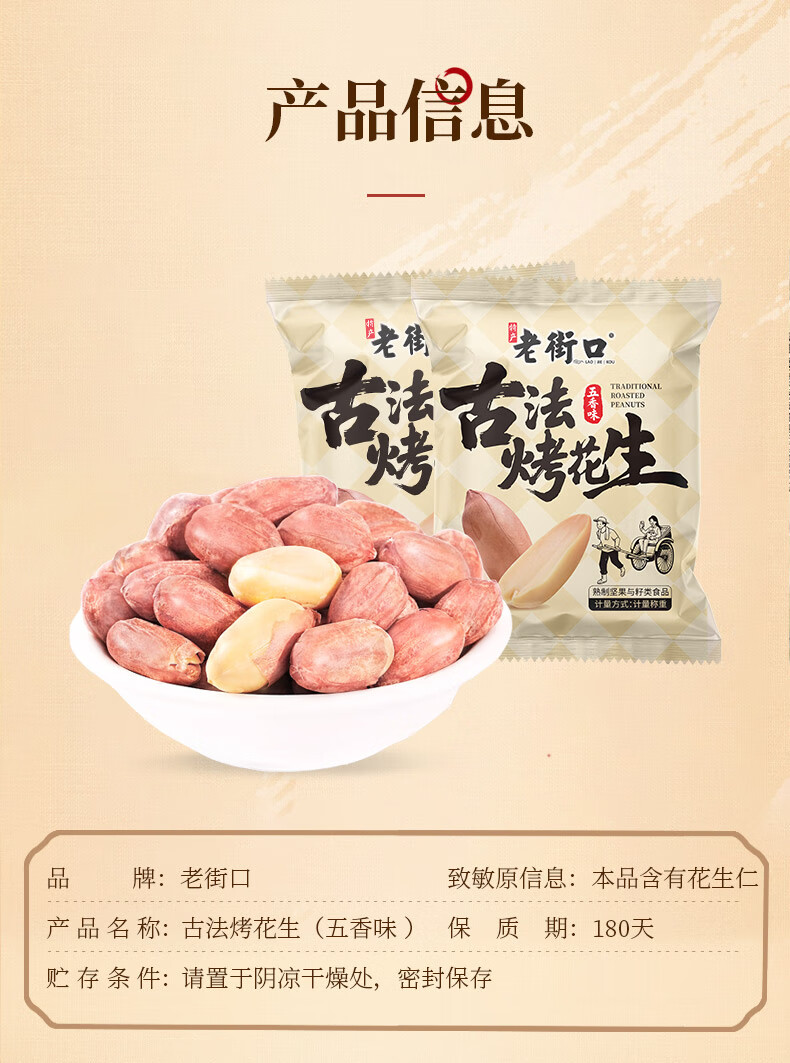 老街口五香花生米烤花生独立小包装香酥爽口脱油下酒菜解馋零食非遗技艺 【下酒必备】五香烤花生15g*30包