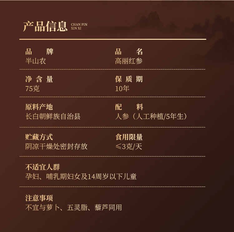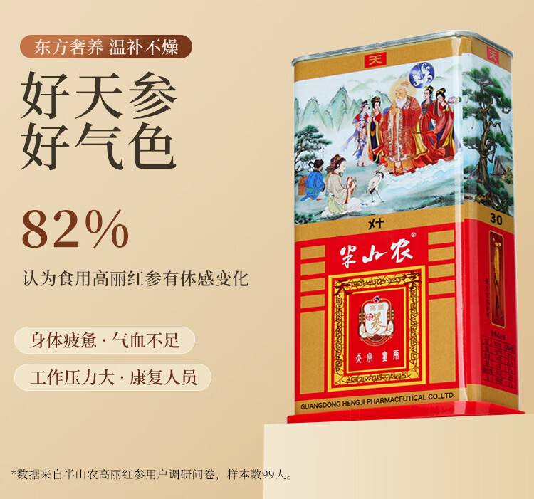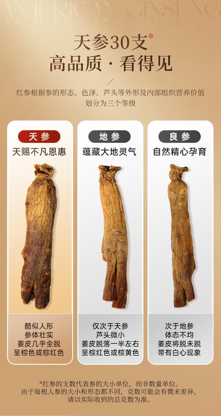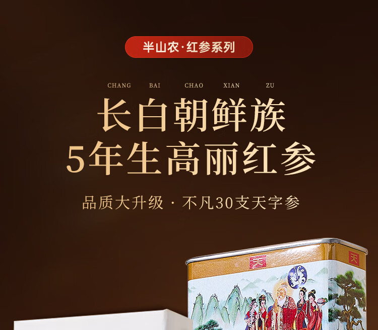 半山农人参高丽红参整支【天字参30支75g约5根参】年货补品礼送长辈父母