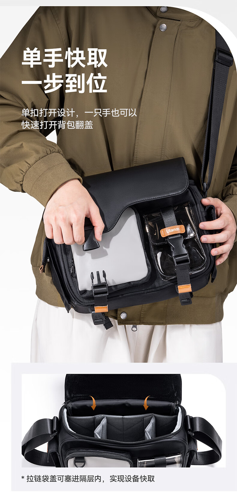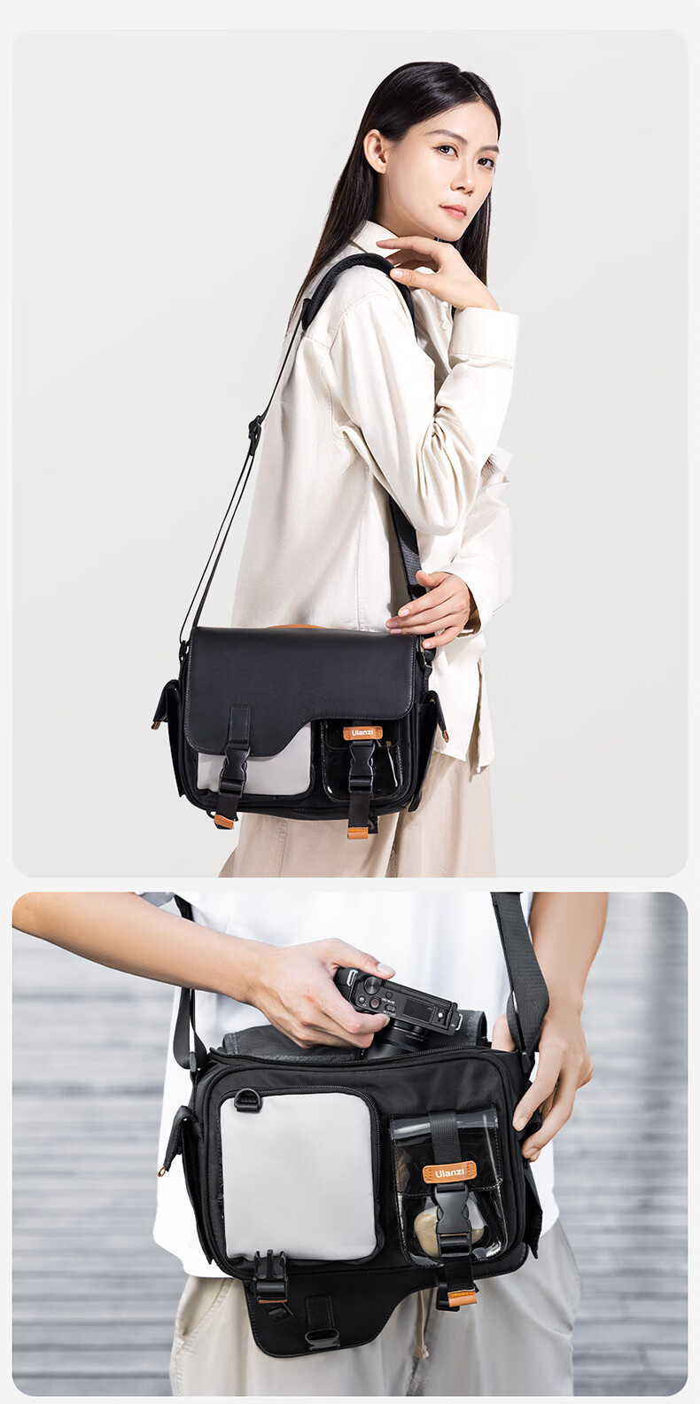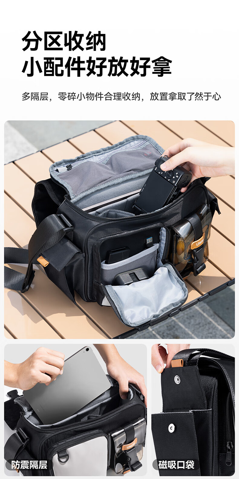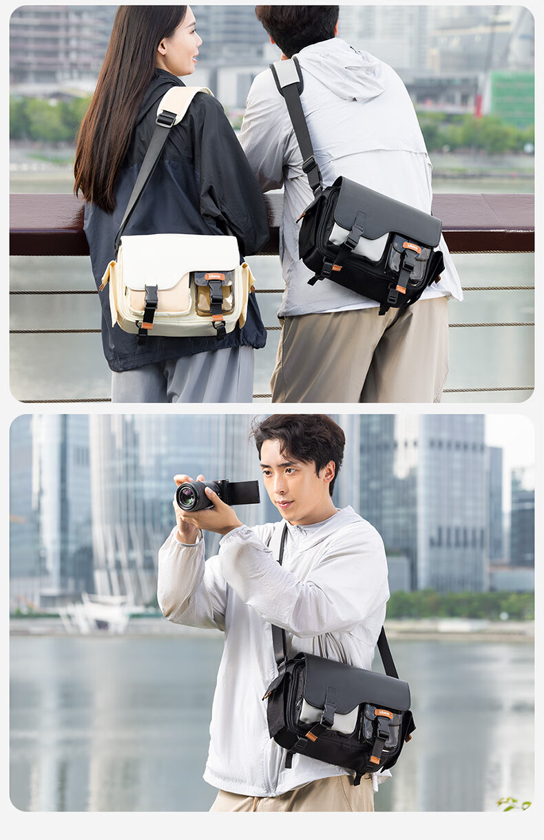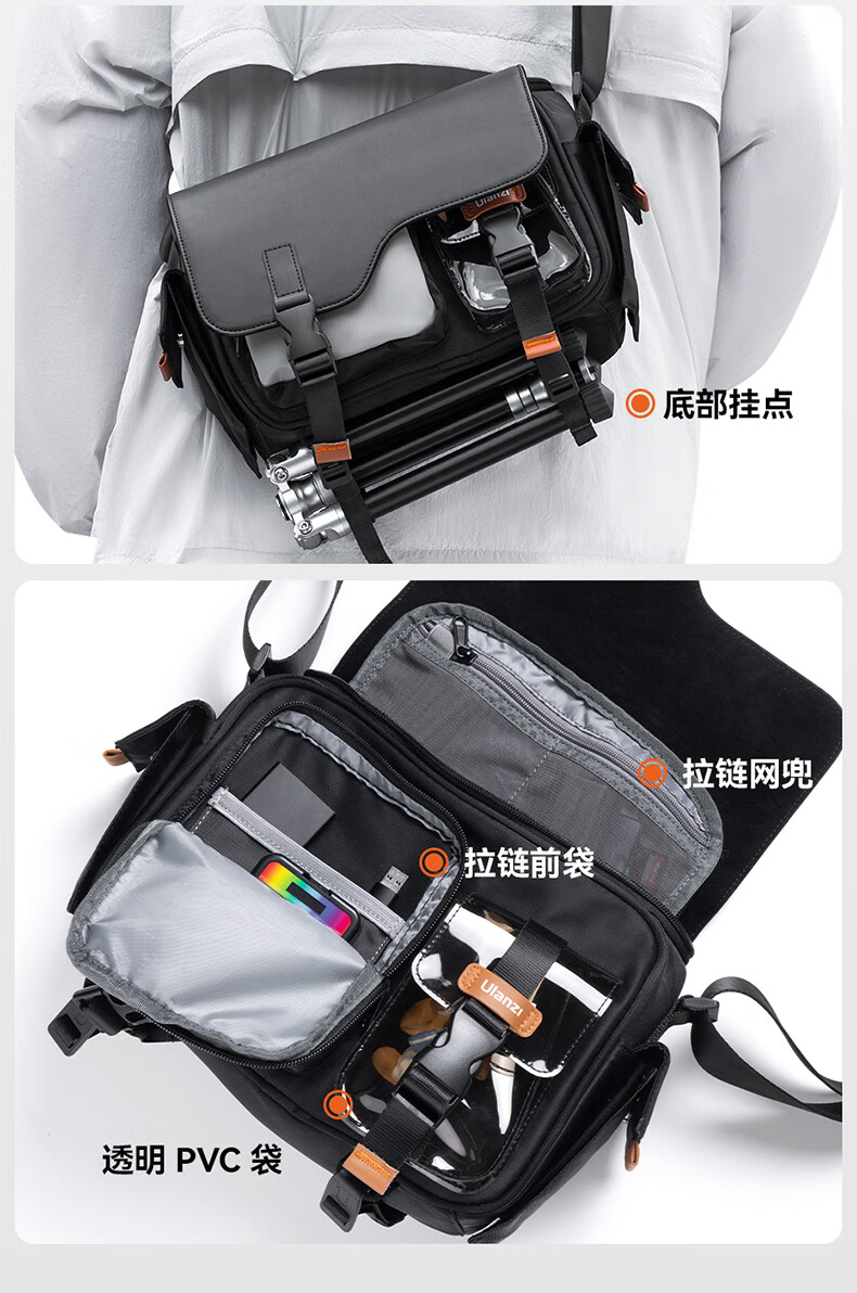 ulanzi【优篮子】MS12相机包单肩斜挎邮差包便携大疆pocket3/action5pro收纳包佳能索尼康摄影包 邮差包-容纳一机两镜【黑色】