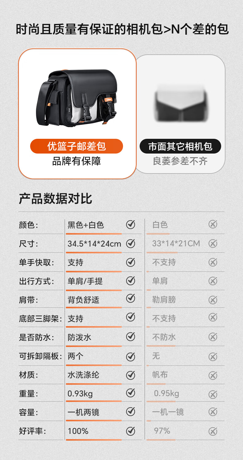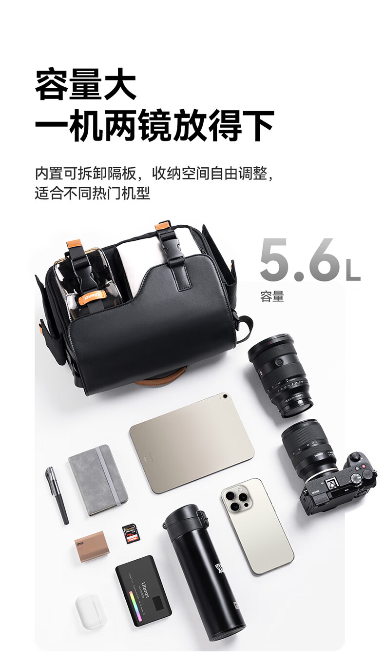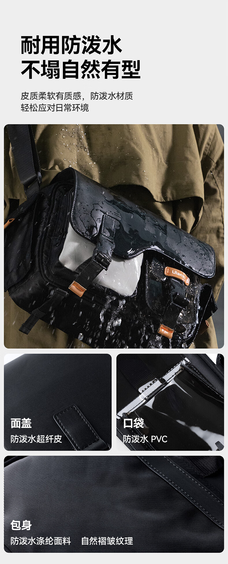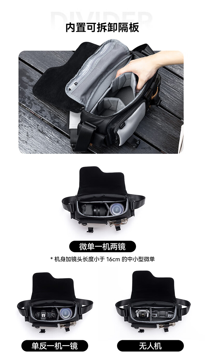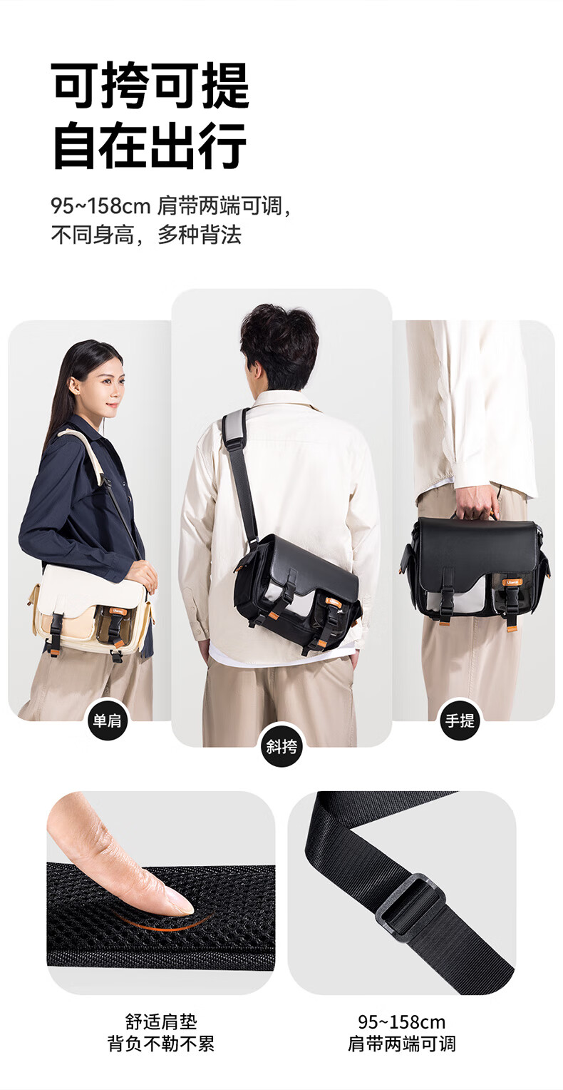 ulanzi【优篮子】MS12相机包单肩斜挎邮差包便携大疆pocket3/action5pro收纳包佳能索尼康摄影包 邮差包-容纳一机两镜【黑色】