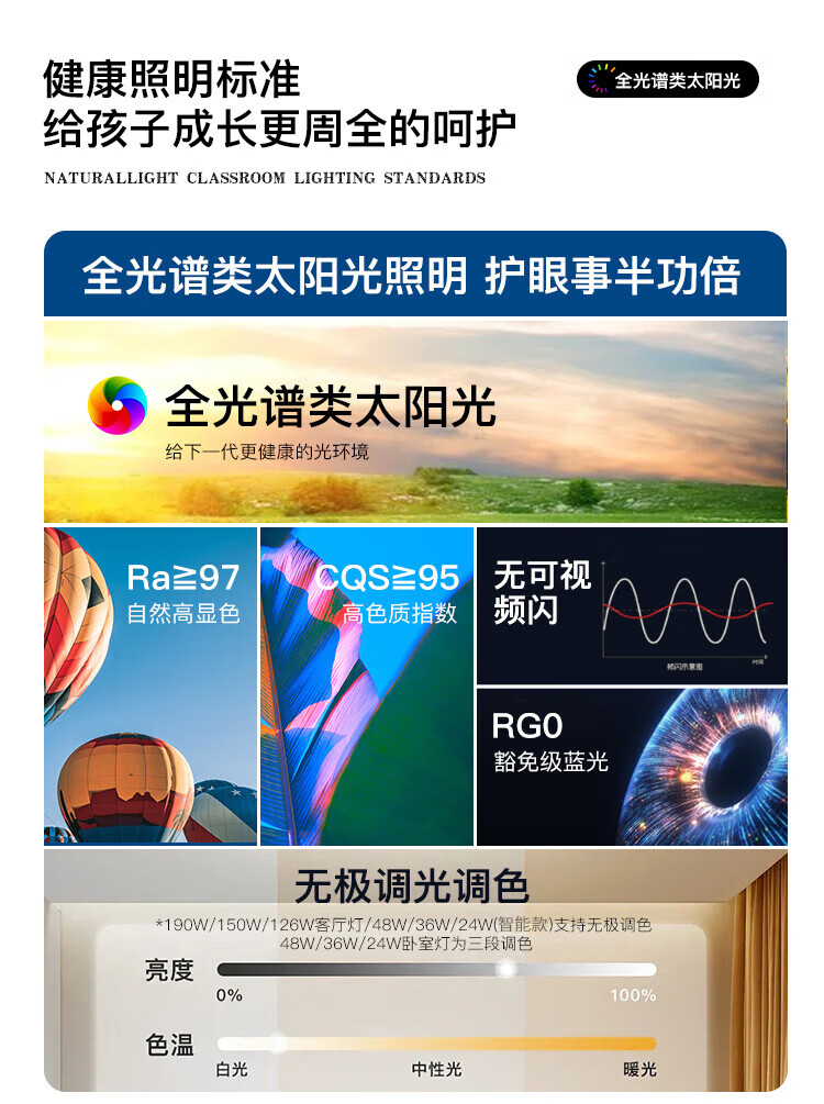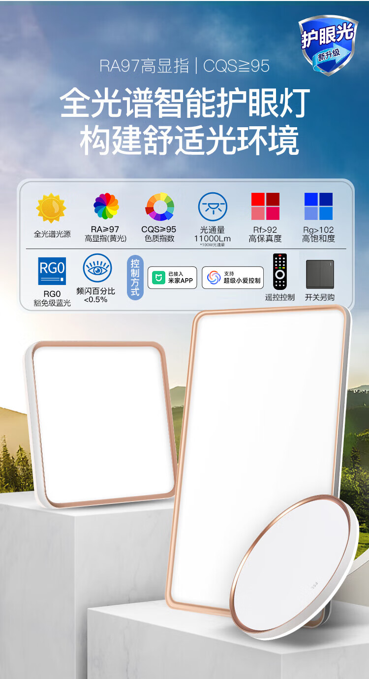 三雄极光led吸顶灯全光谱护眼客厅灯餐厅灯防蓝光书房灯具 128W 30㎡内适用 6800lm P3智控·接入米家app