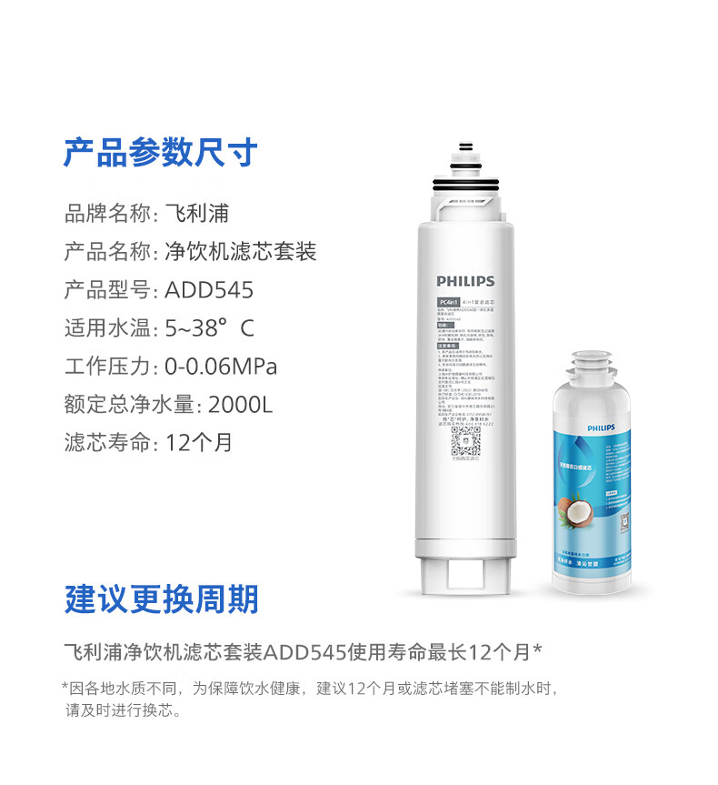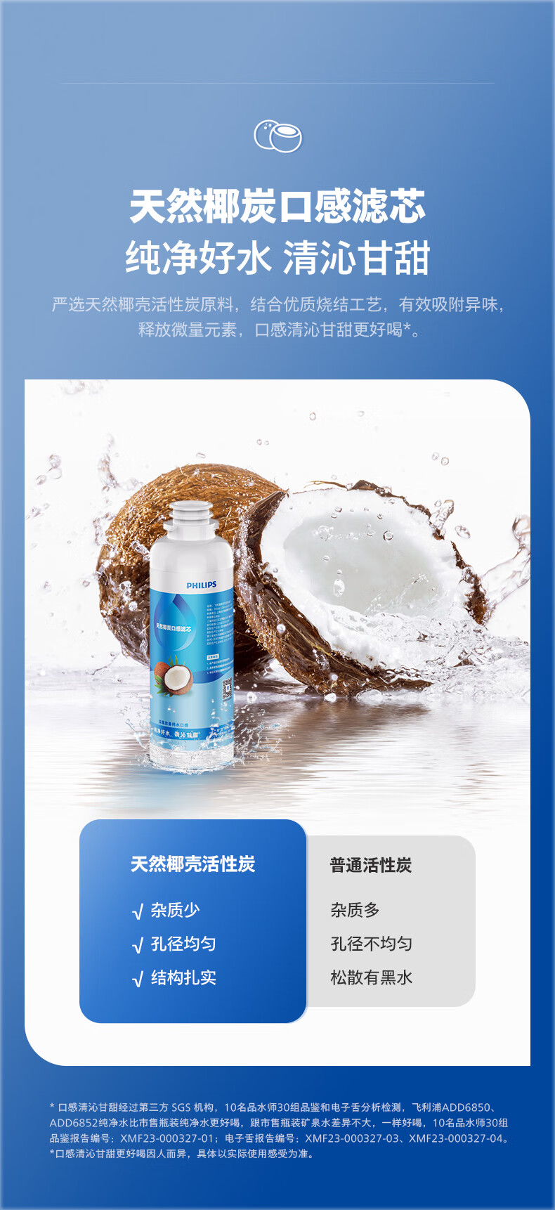 飞利浦(PHILIPS)家用净水器原装滤芯ADD545 适配台式免安装直饮水机反渗透净饮机ADD6850/ADD6852/ADD6851/ADD6854 天然椰碳口感