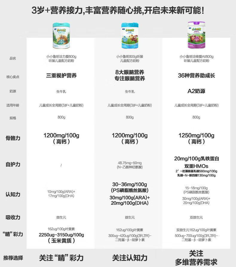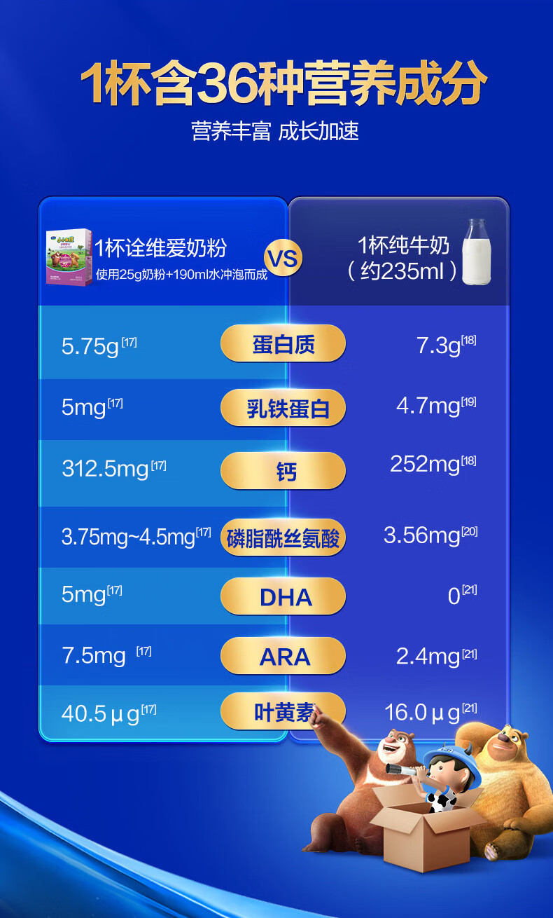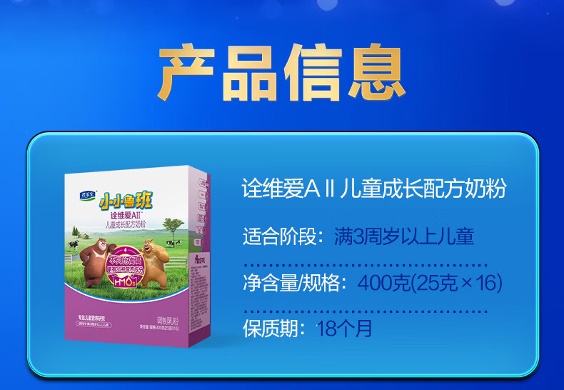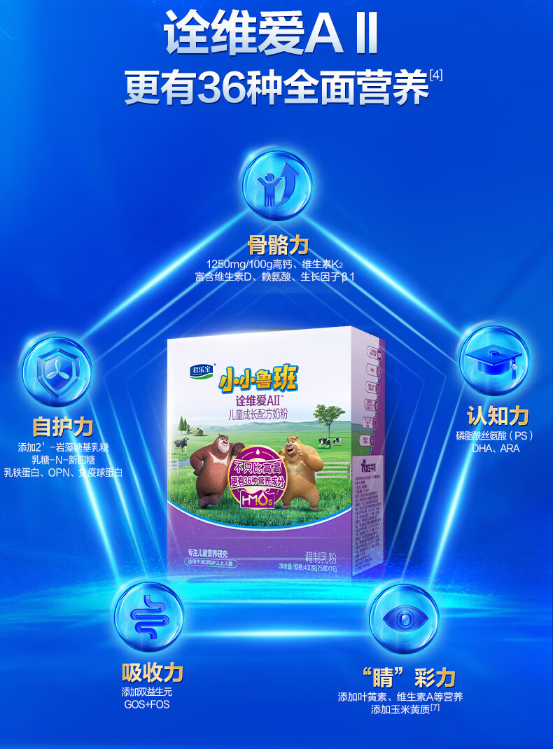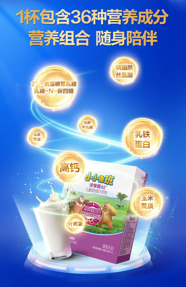 君乐宝小小鲁班诠维爱AII儿童配方奶粉4段(3周岁以上)400g 乳铁蛋白