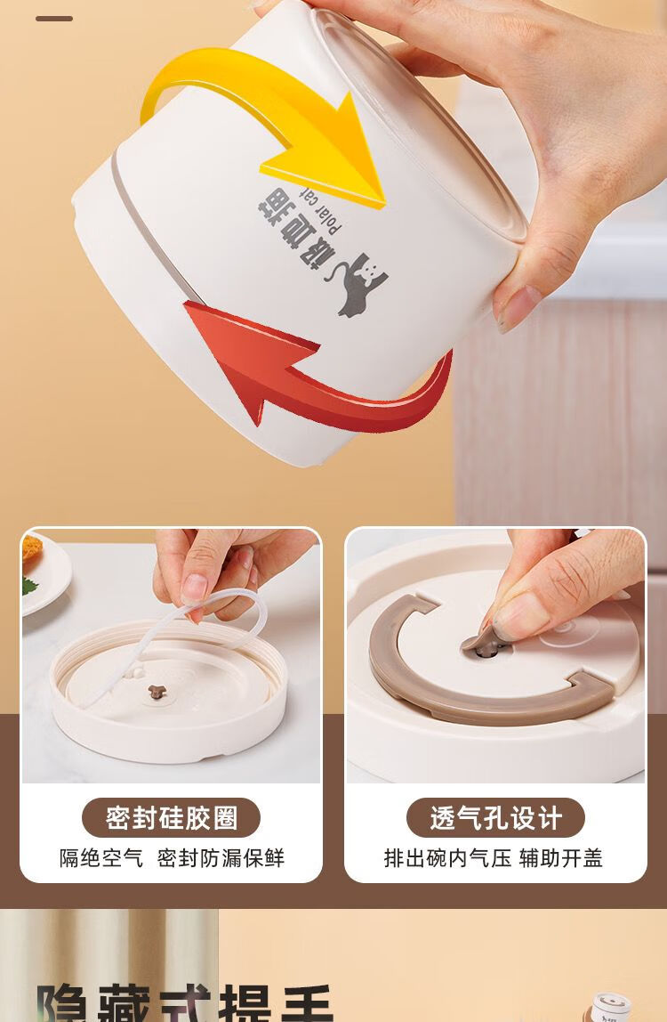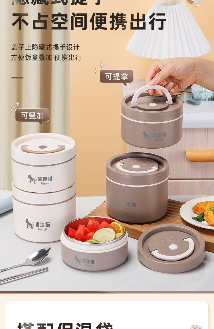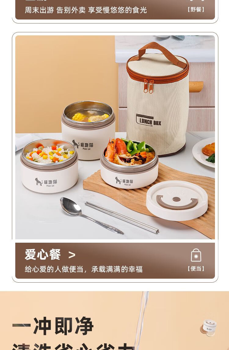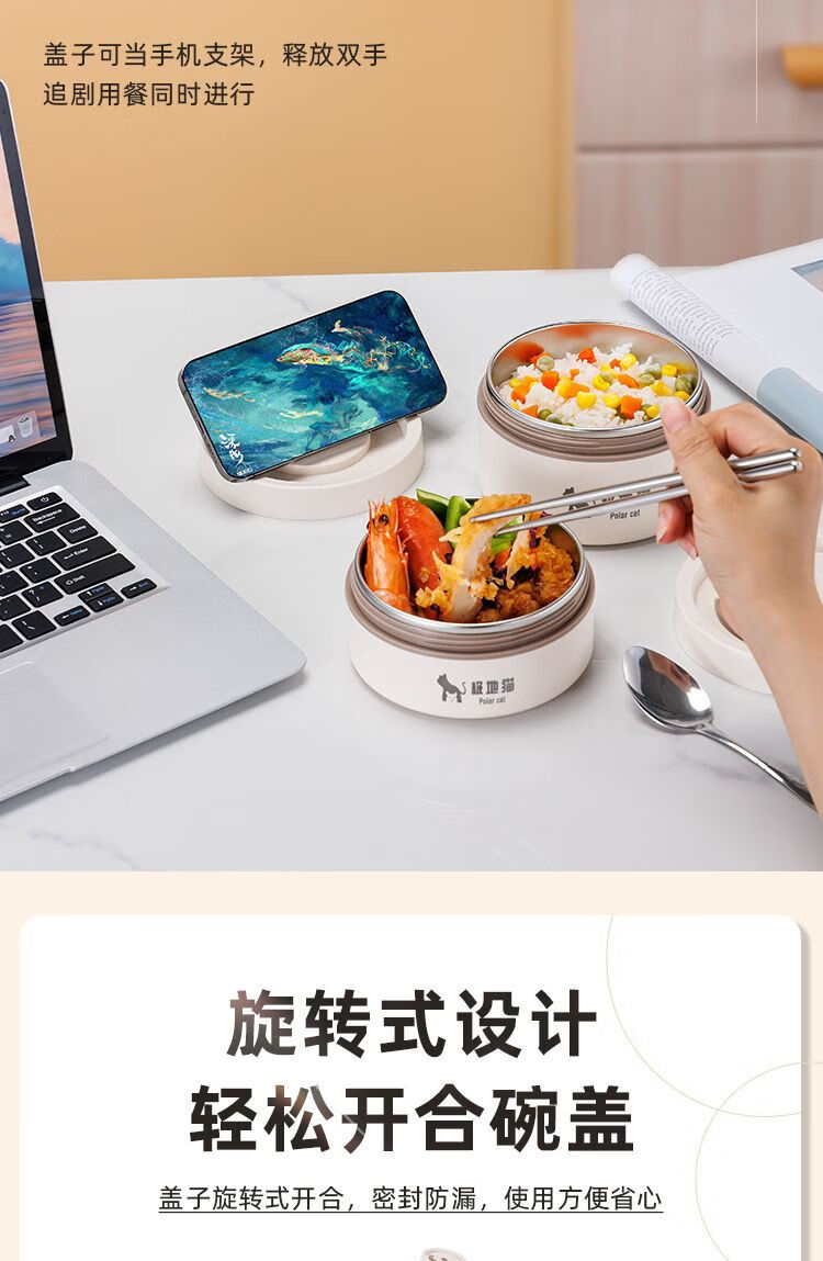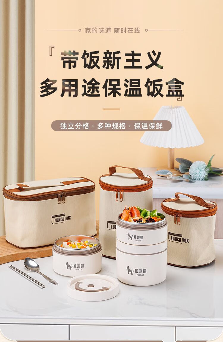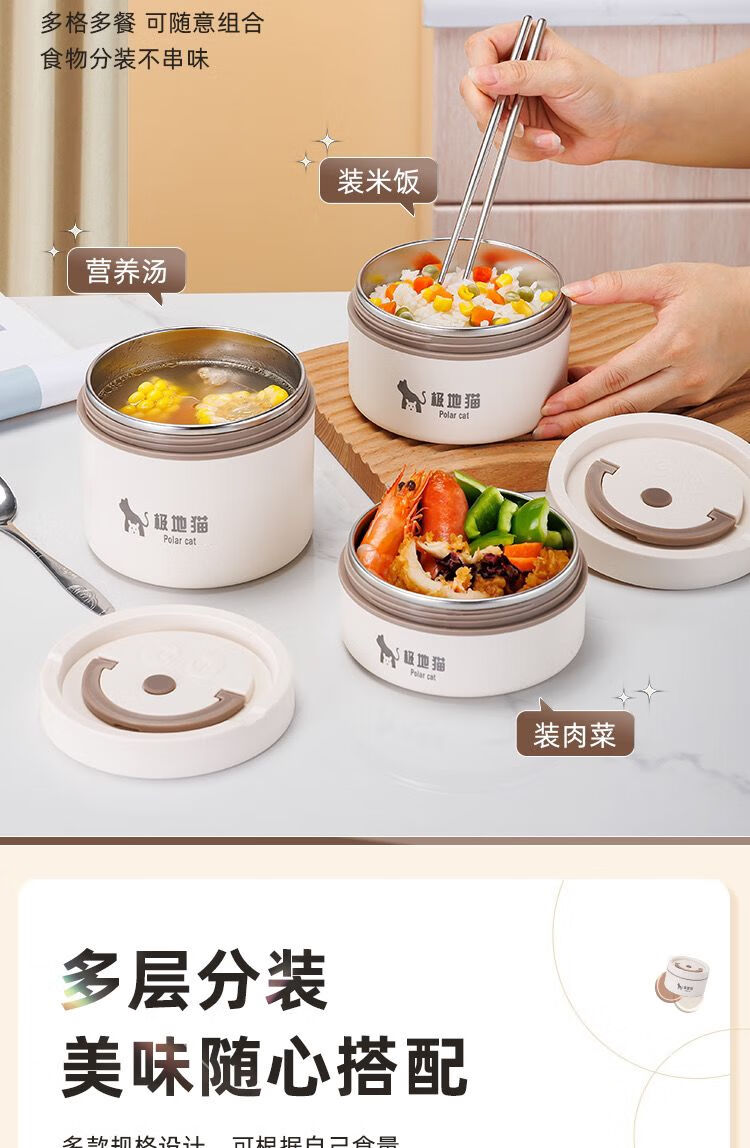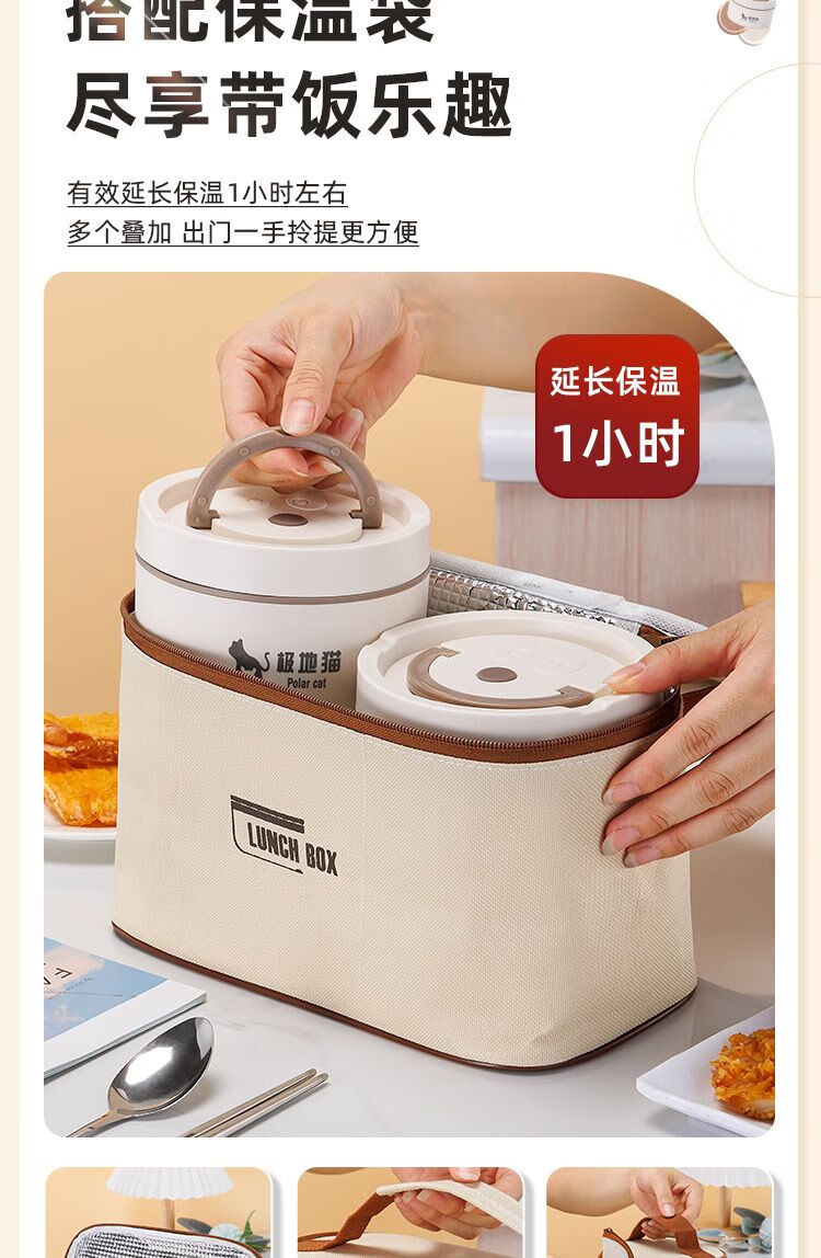 DEATKN不锈钢保温饭盒带盖汤碗上班族便携式餐盒学生分层便当盒 JDM-联名新款【不锈钢内胆-米白色】 【小+大】+餐具+保温袋