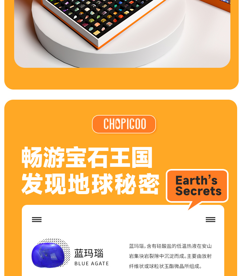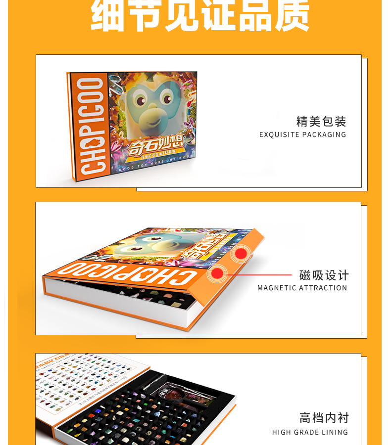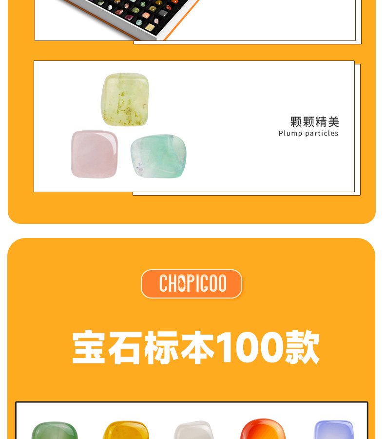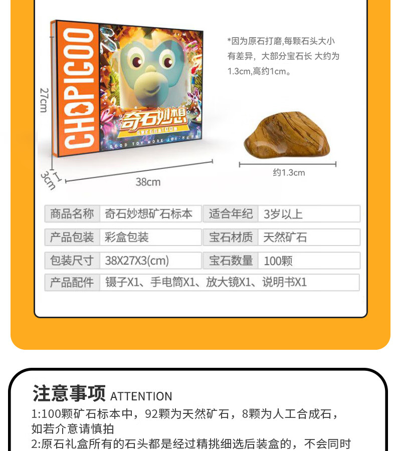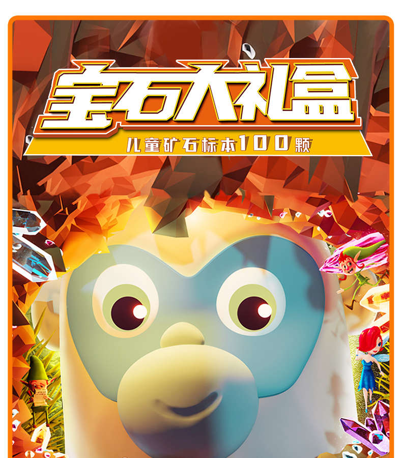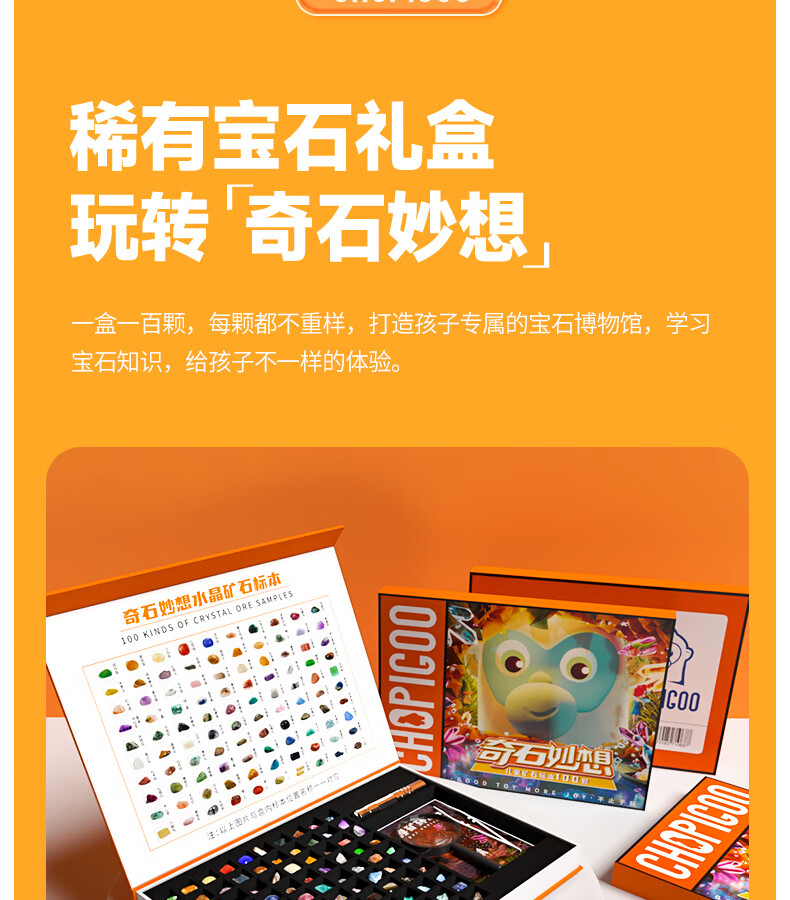 俏皮谷儿童矿石标本100种奇石妙想宝石头科普玩具礼盒男女孩生日礼物