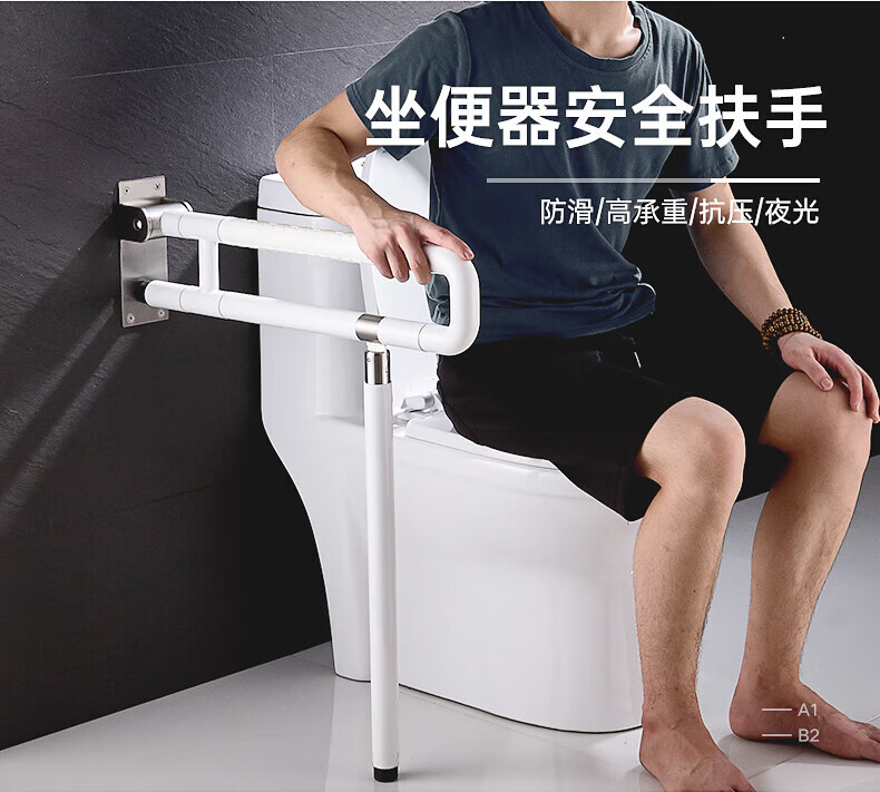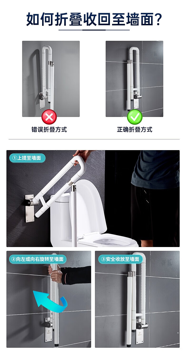 GuGuGo【德国】马桶扶手卫生间扶手老人安全防摔坐便扶手厕所起身器折叠 【可上下折叠】马桶扶手 防滑抗压丨加厚不锈钢