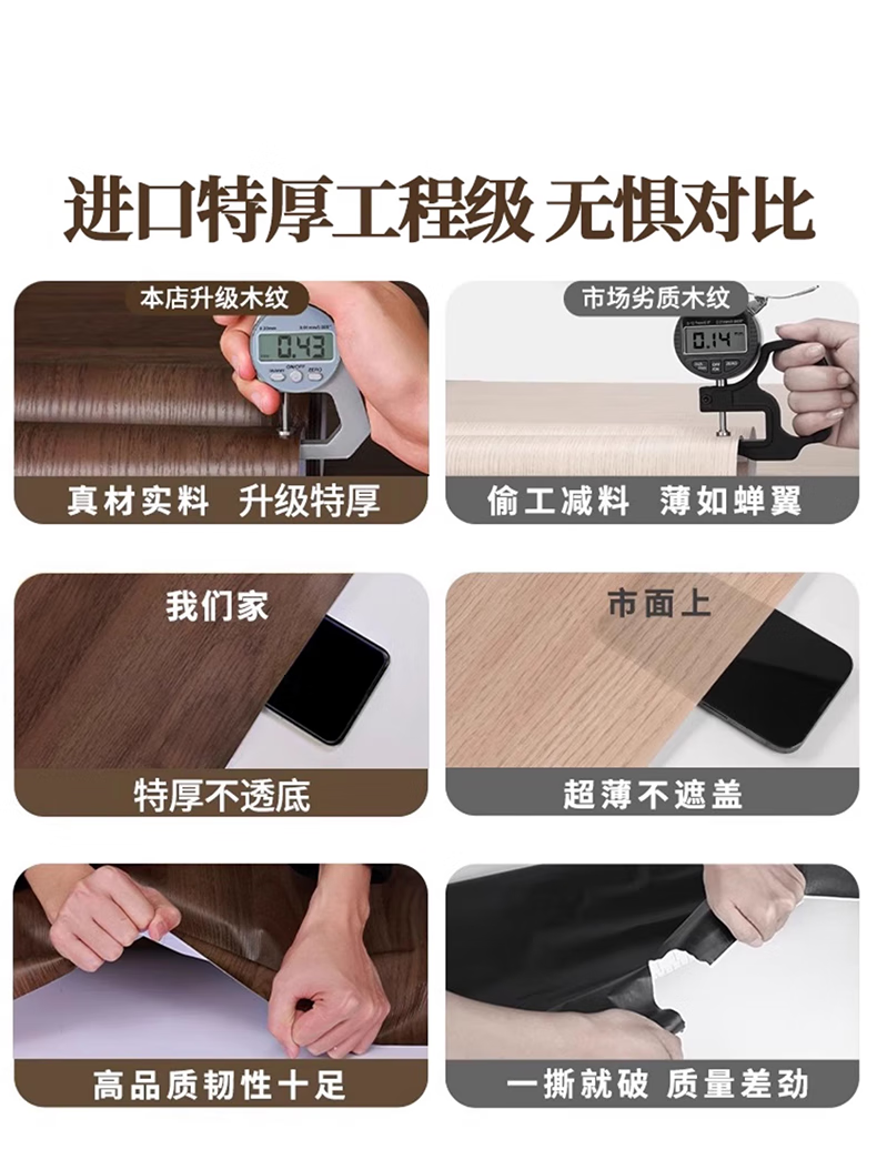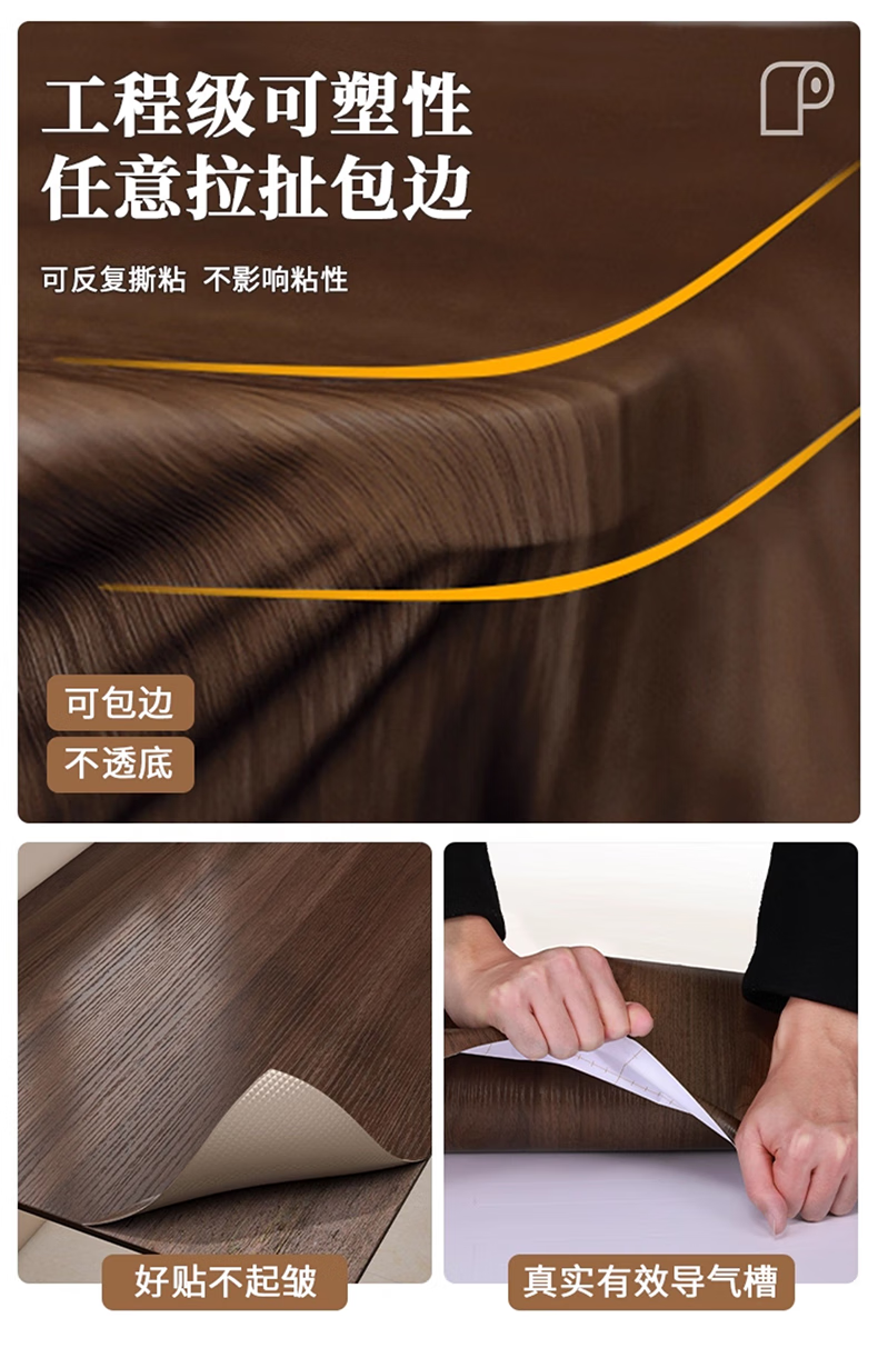 赛瓦凯木纹背景墙纸自粘客厅卧室背景墙防水防潮翻新遮丑装饰墙板墙贴纸 黑胡桃【0.43mm工程级特厚/好贴耐用无异味】 40CM×3米长