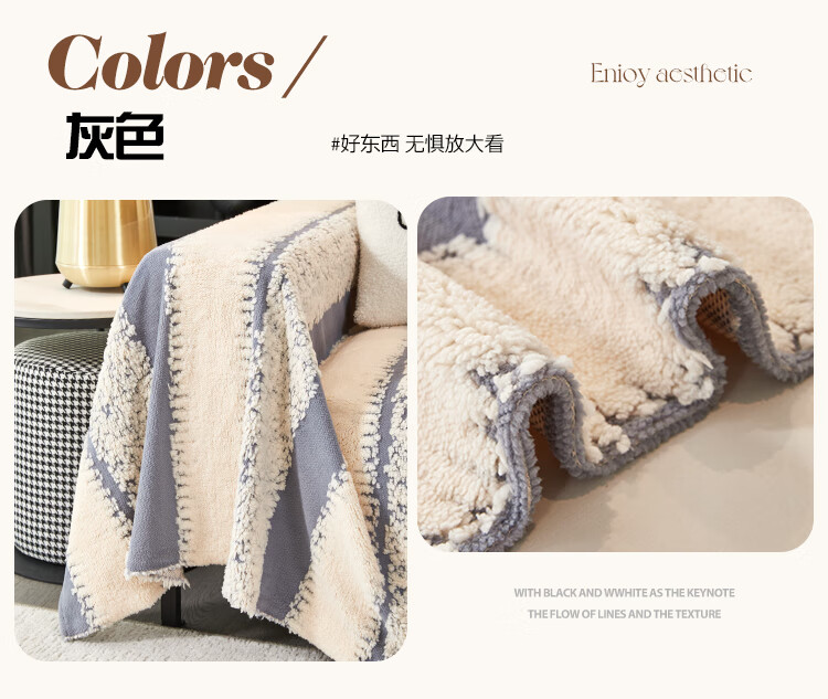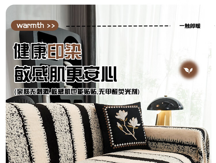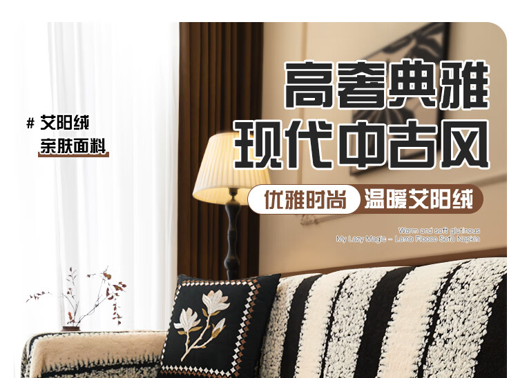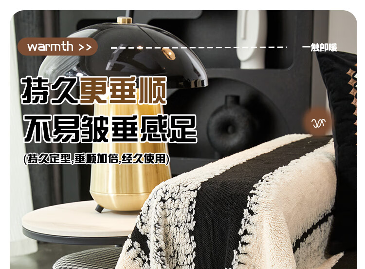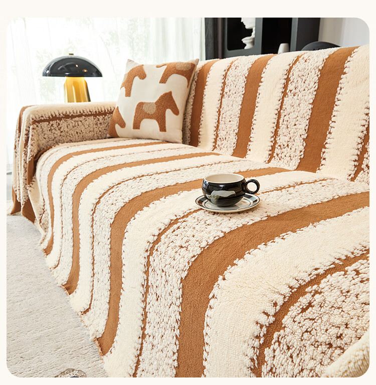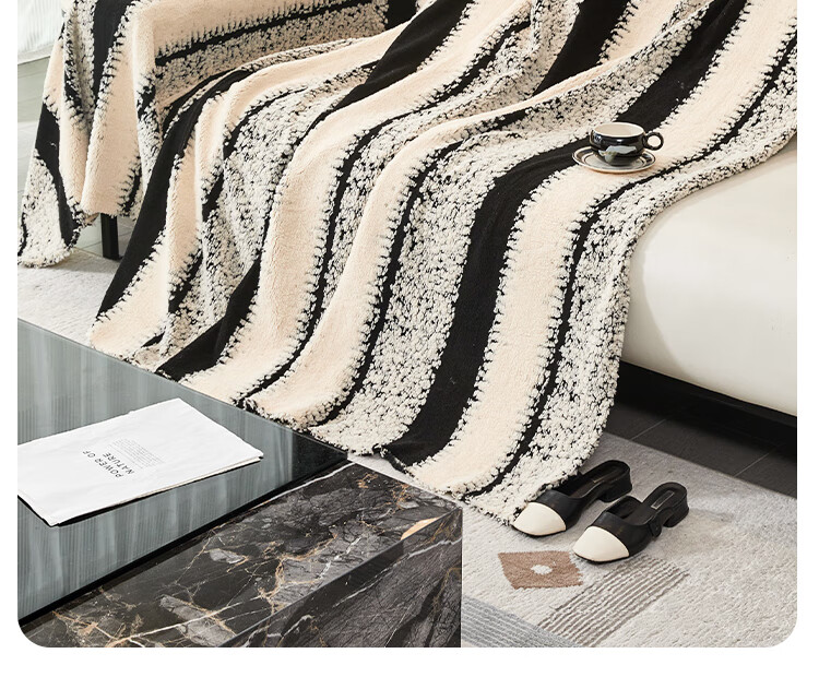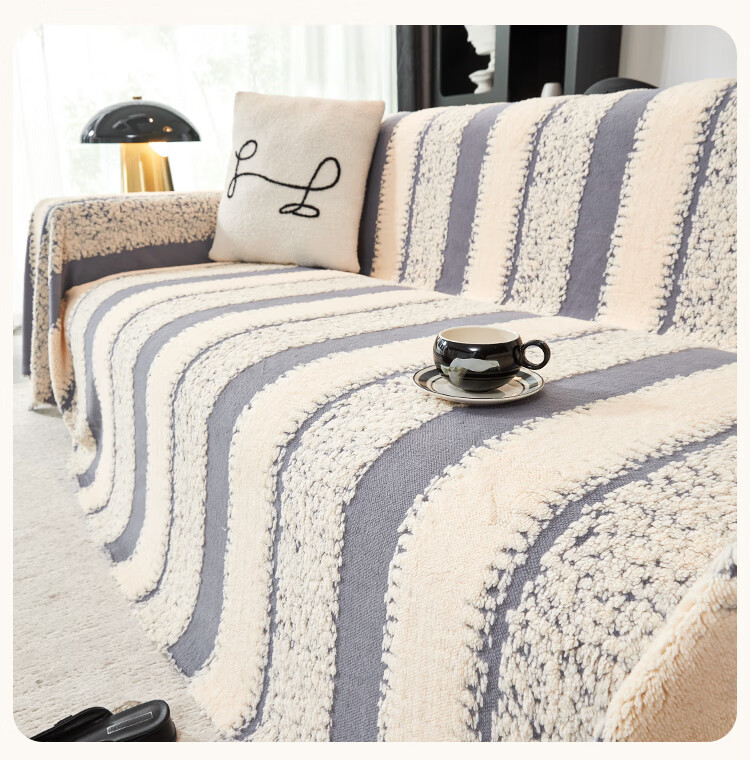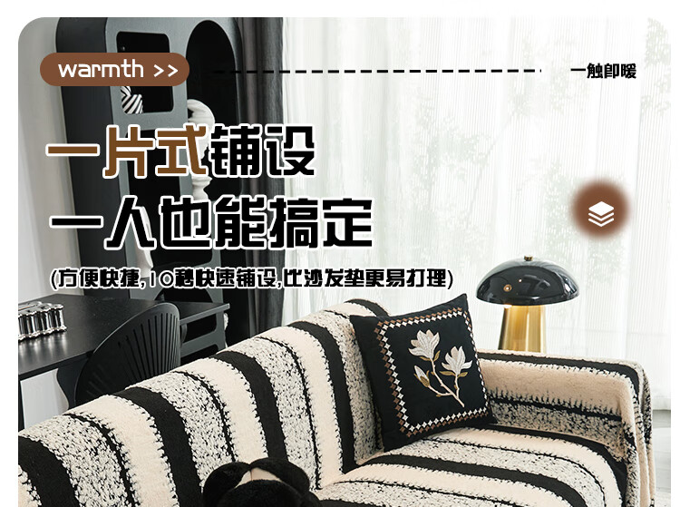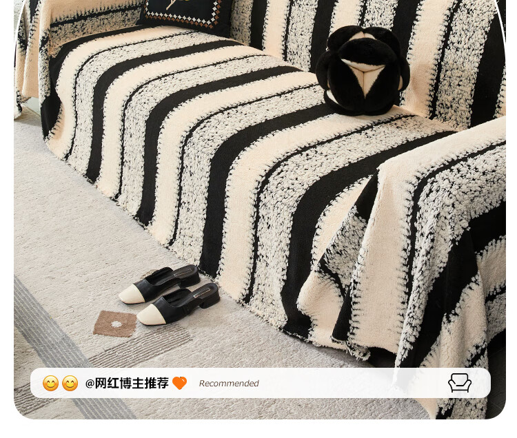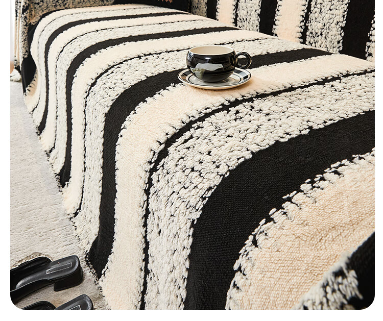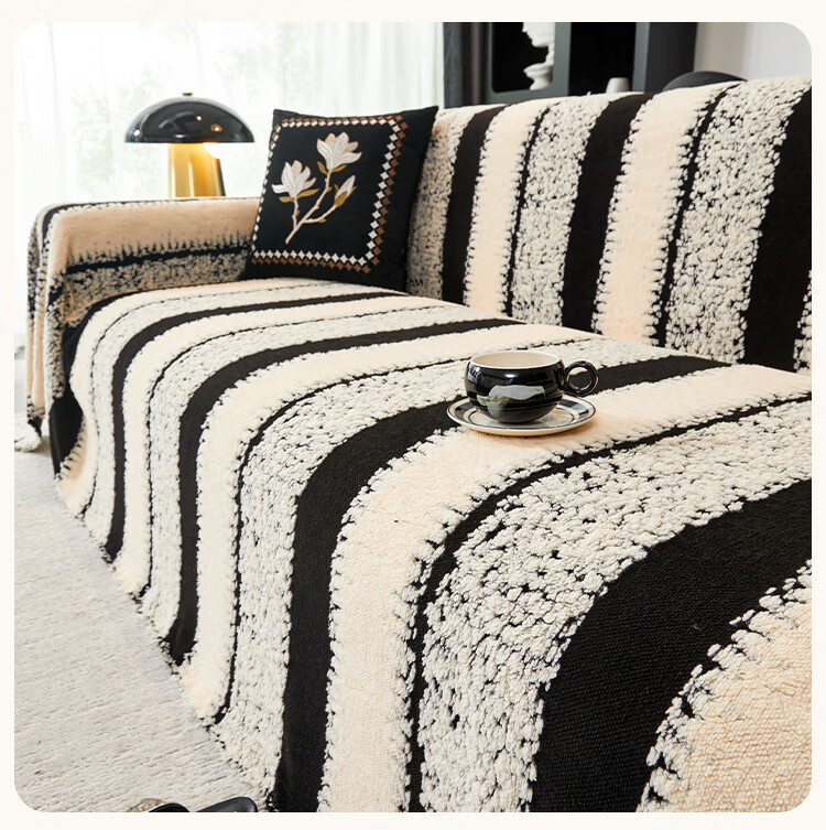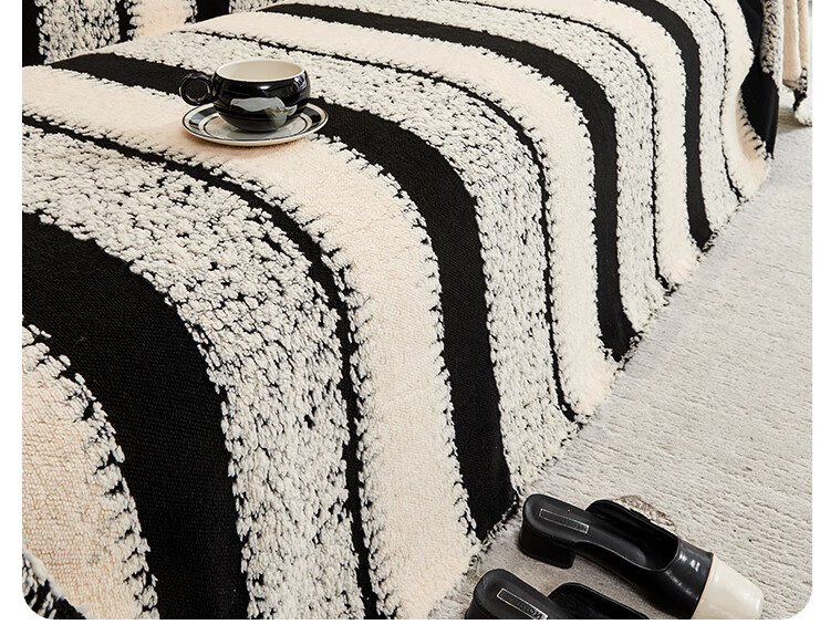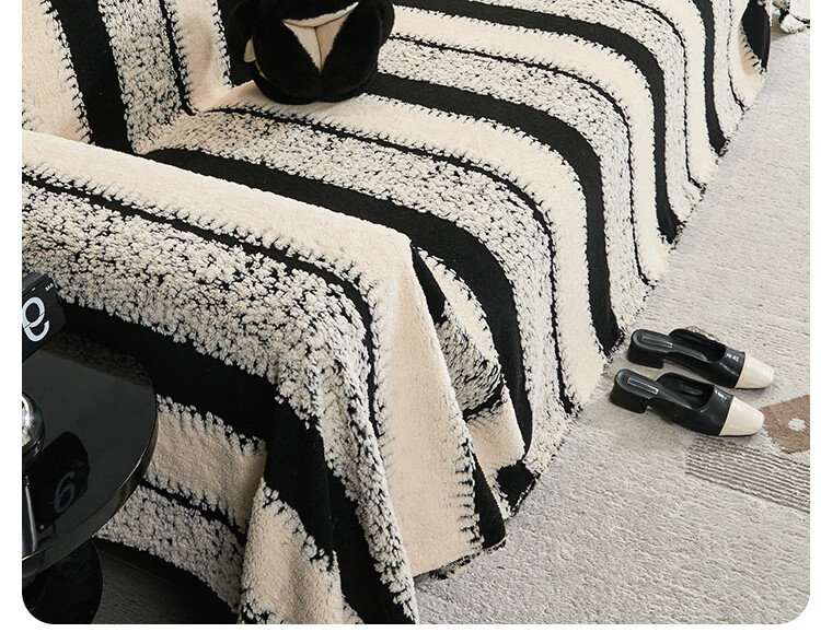 缔卓怡秋冬毛绒沙发盖布巾轻奢高级感一片式防滑坐垫套罩加厚保暖座垫 直绒沙发巾-黑白 188cm*420cm