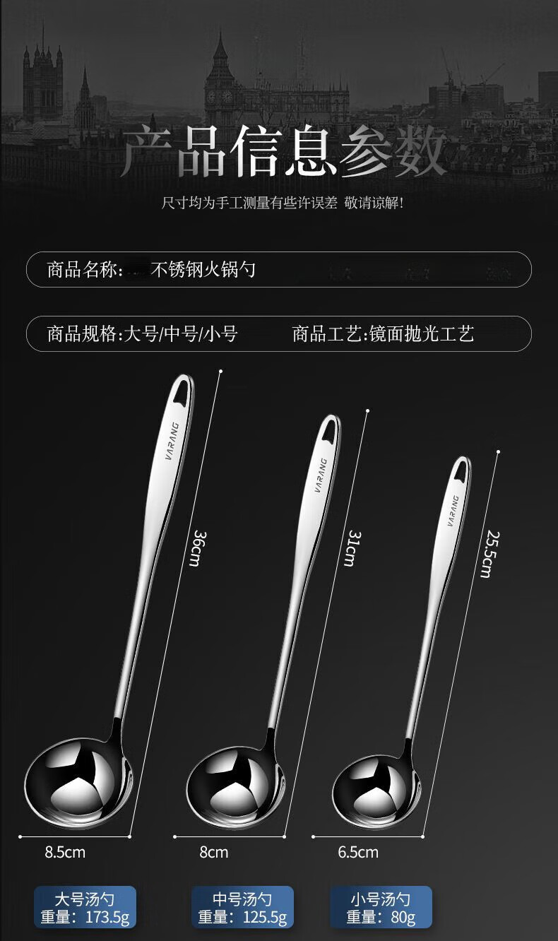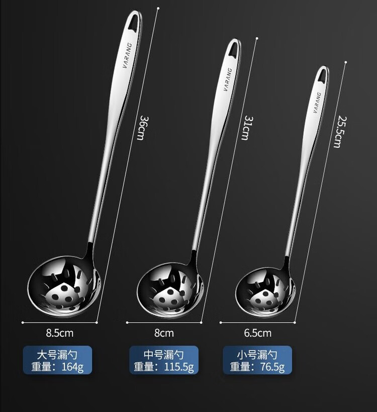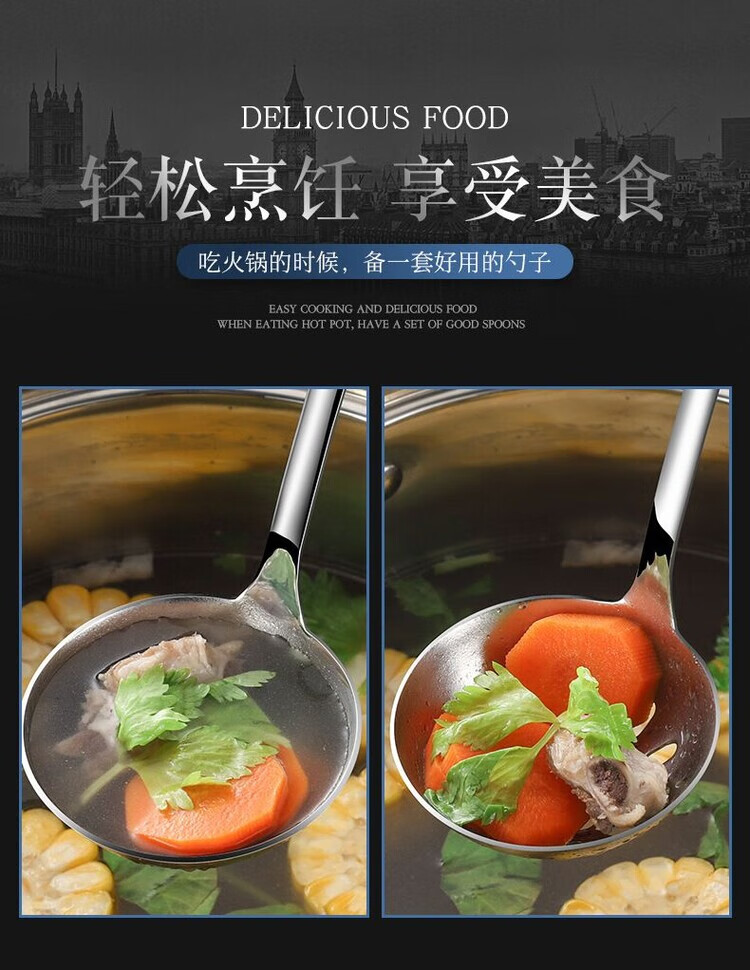 简漾不锈钢汤勺火锅家用漏勺套装韩式加深加宽加厚盛汤长柄勺子 小号漏勺